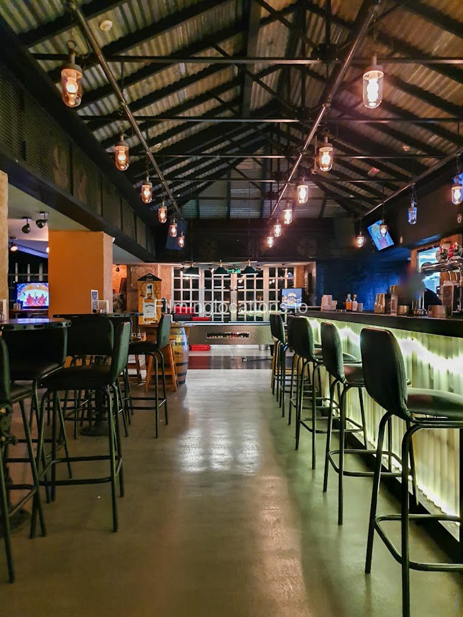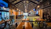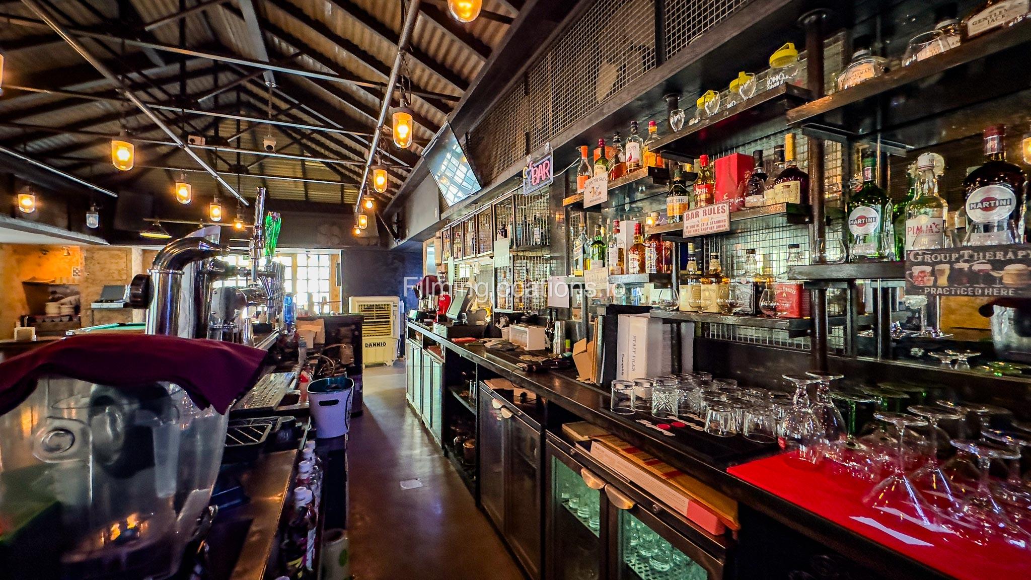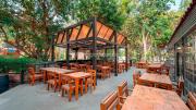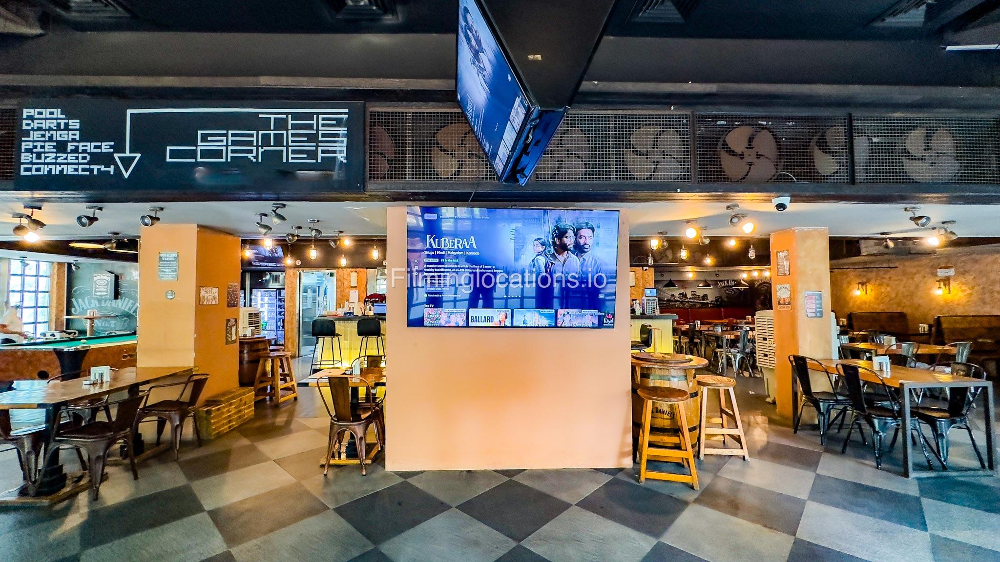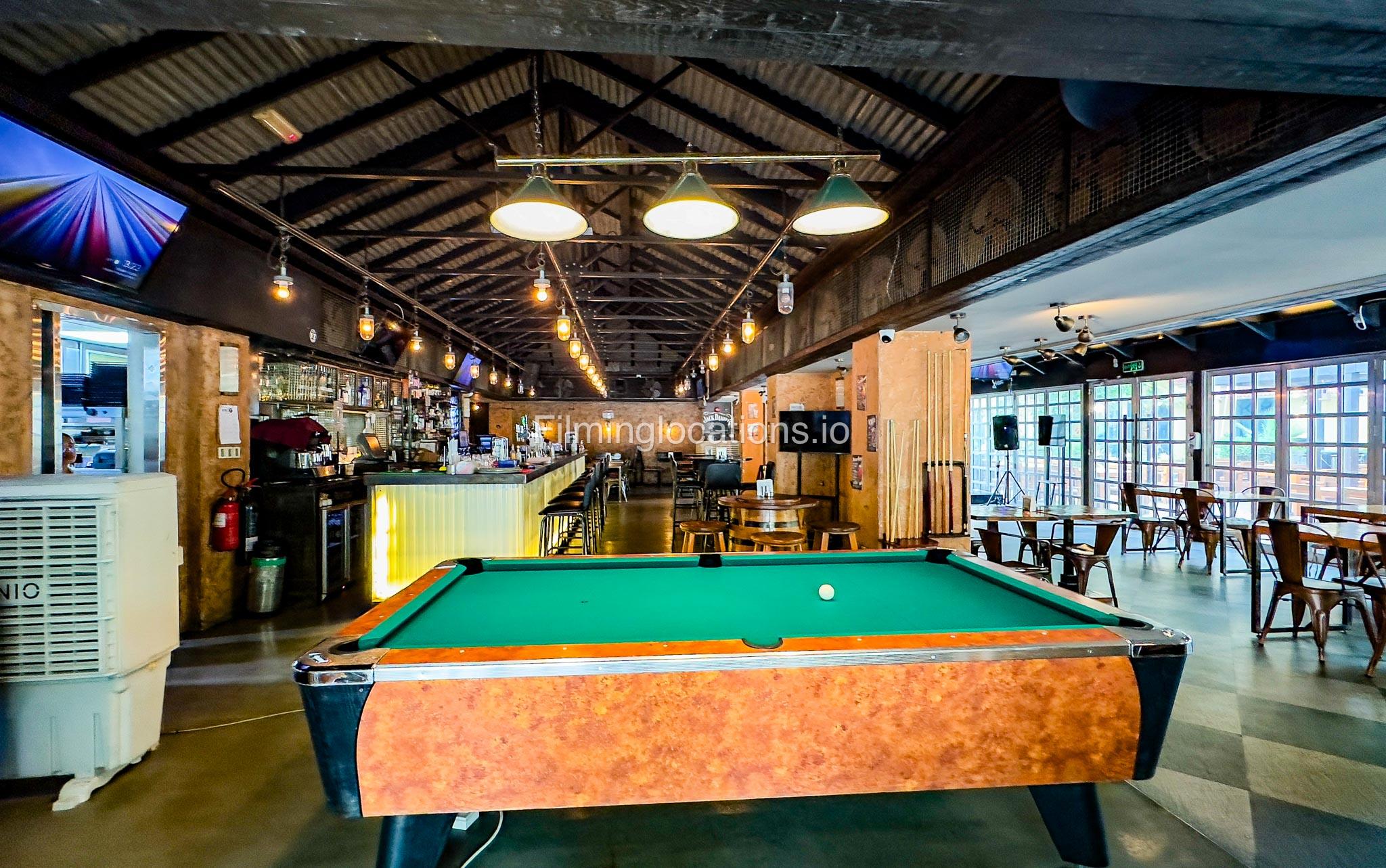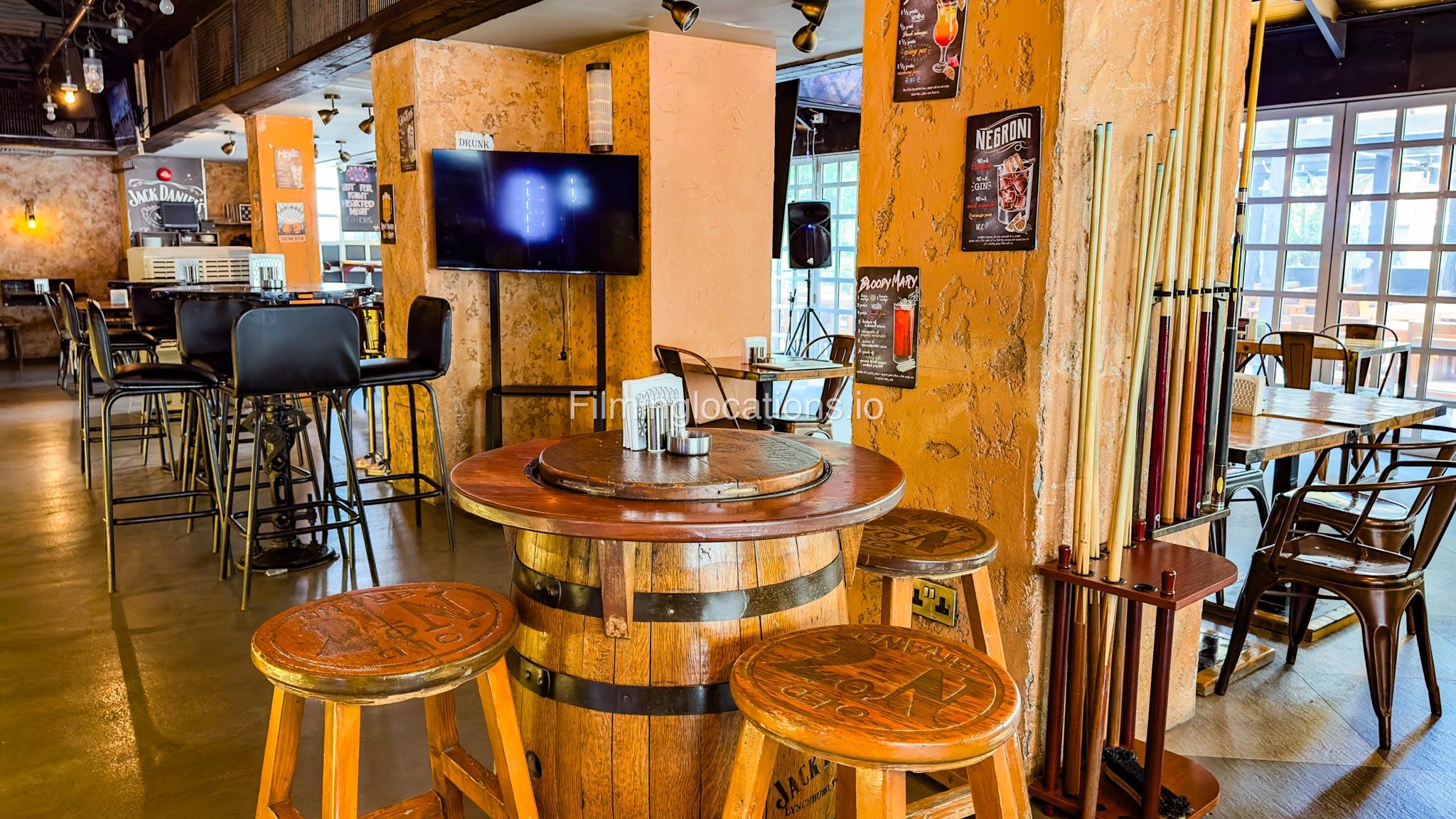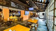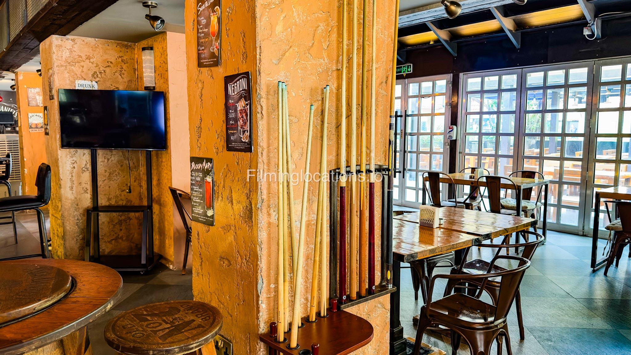 Our venue has wooden tables and seating, both booth-style and open tables, with a large space, high ceilings and an open window wall. Its also complemented by an inviting outdoor area. Perfect for film shoots, commercials, or photo sessions.