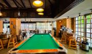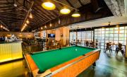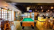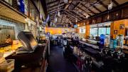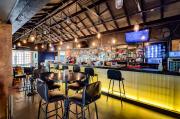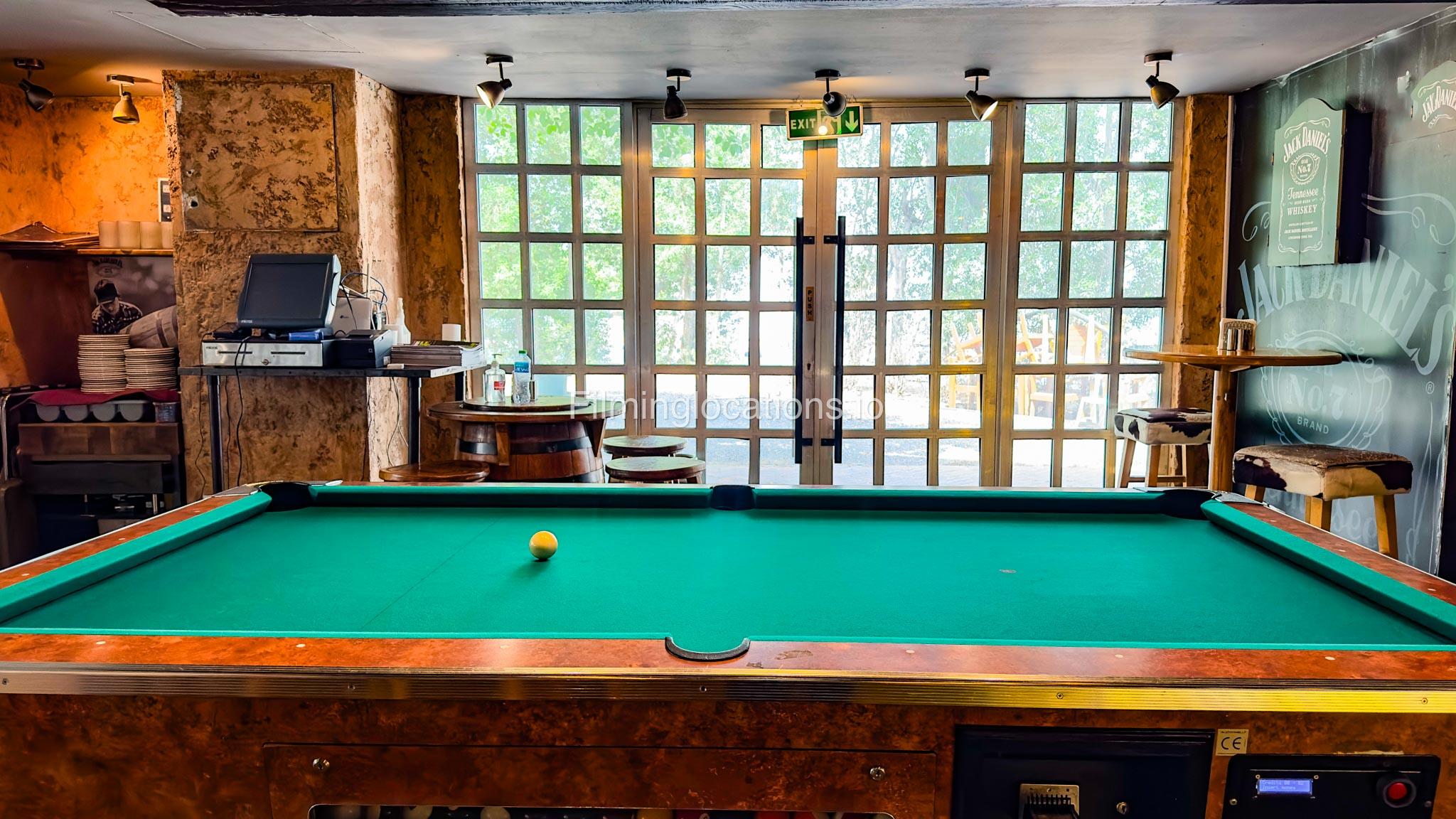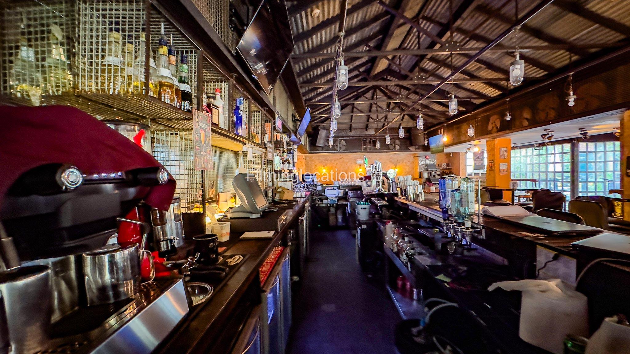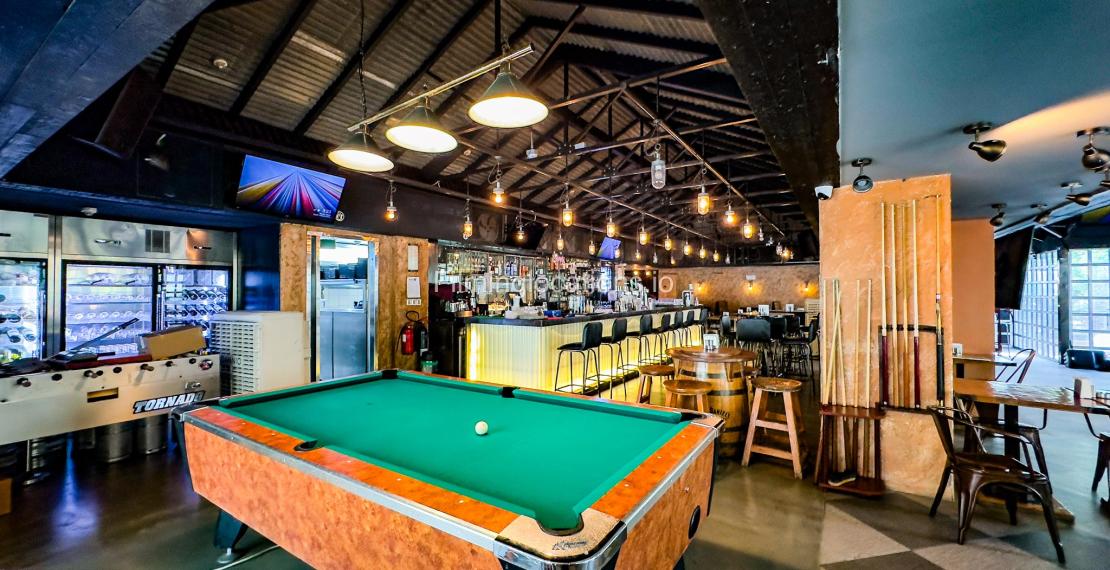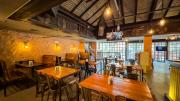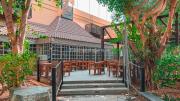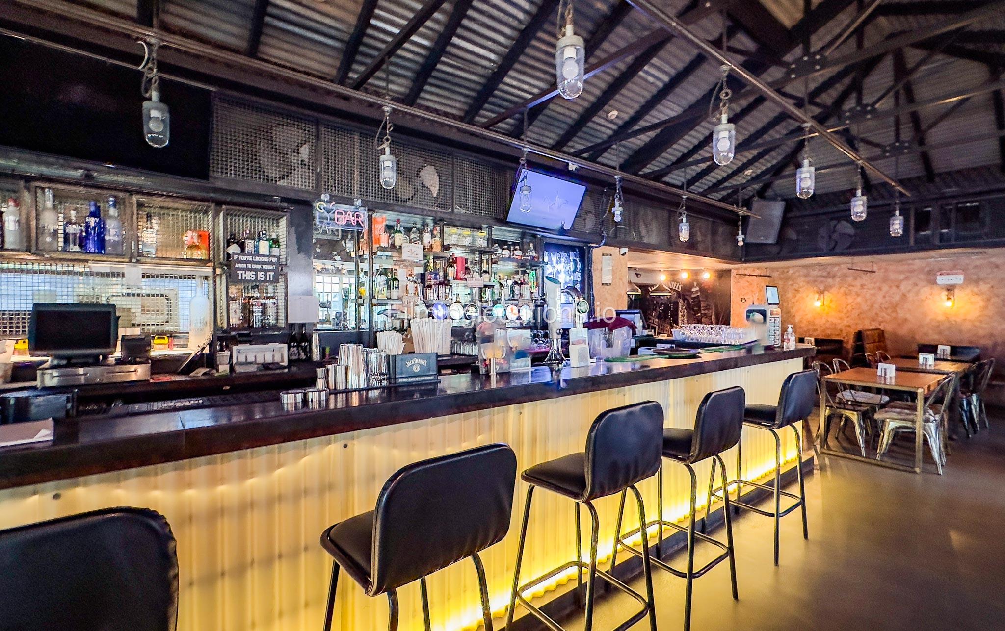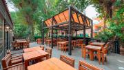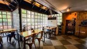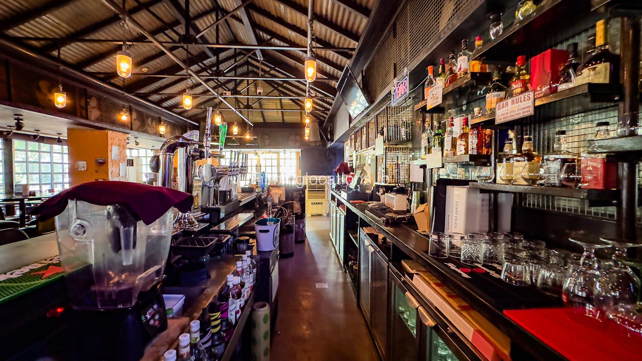 Our venue has wooden tables and seating, both booth-style and open tables, with a large space, high ceilings and an open window wall. Its also complemented by an inviting outdoor area. Perfect for film shoots, commercials, or photo sessions.