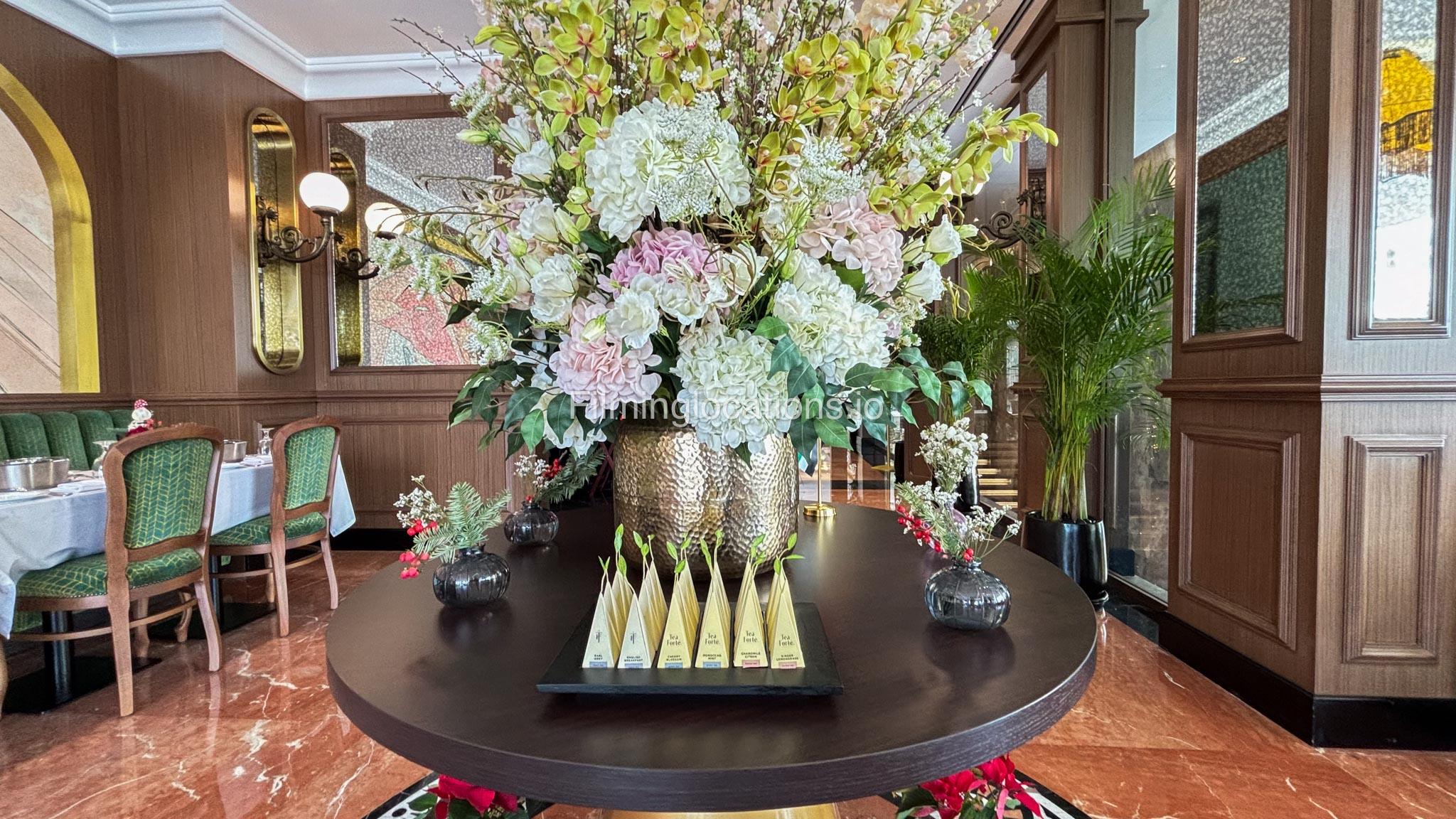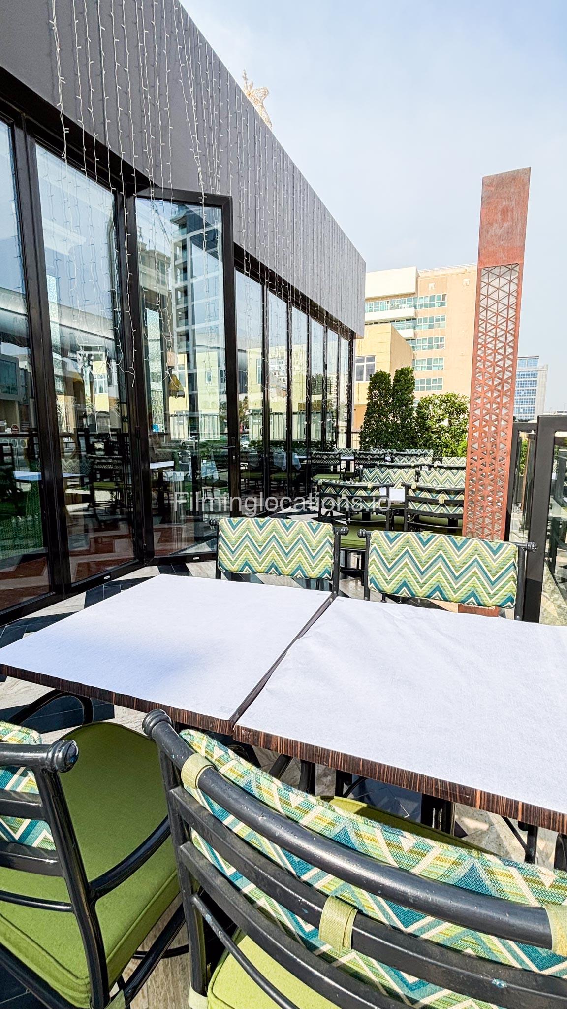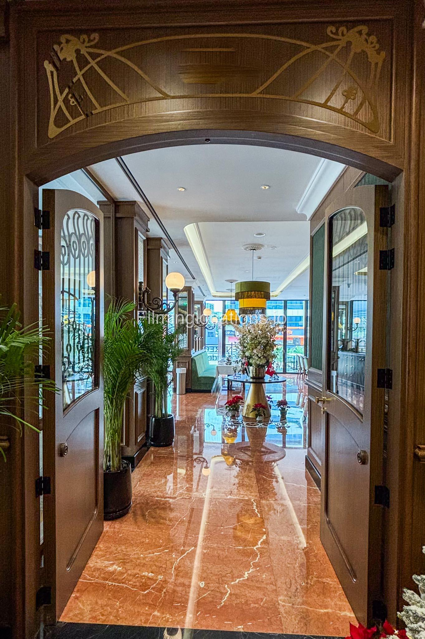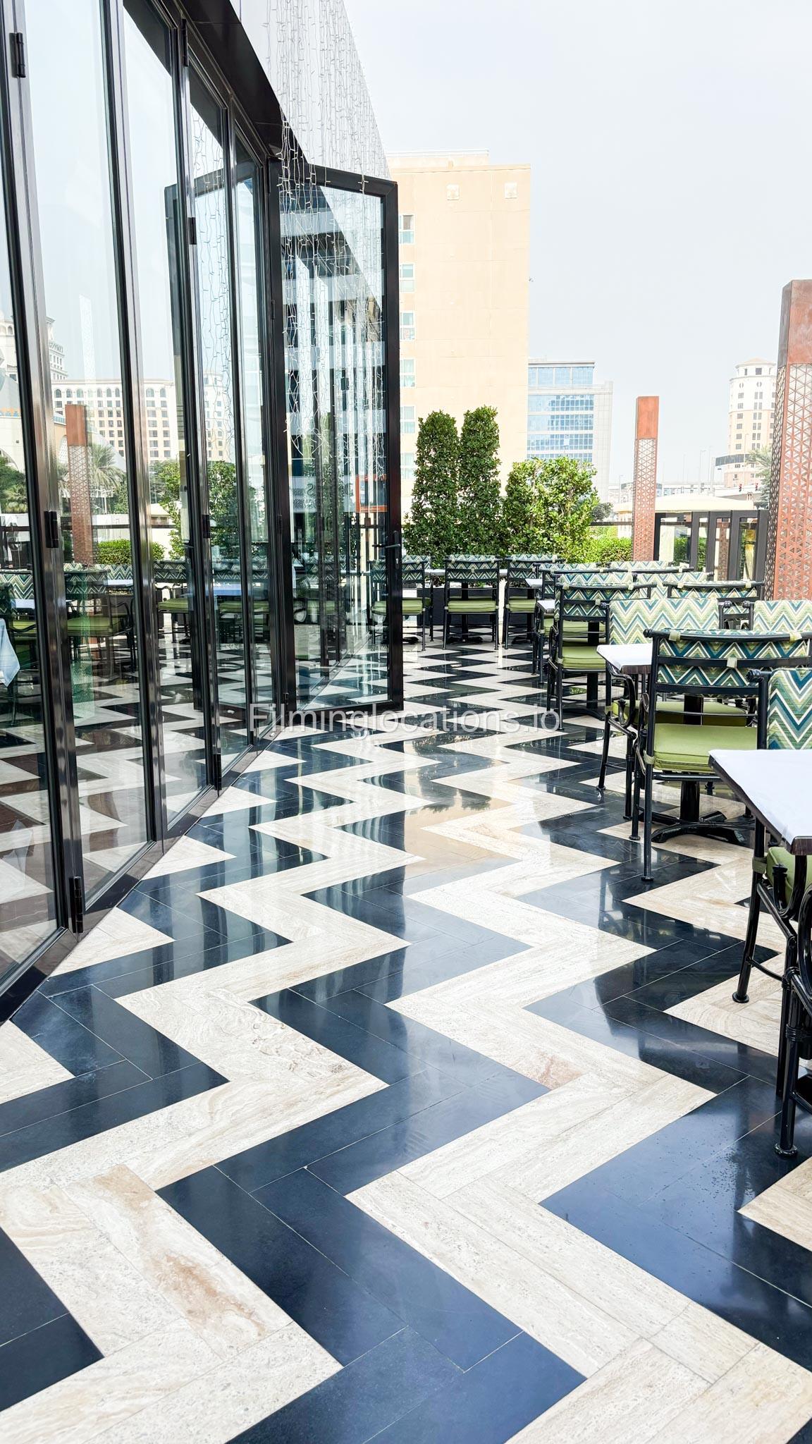 This French restaurant exudes a sophisticated charm with its wooden walls and tasteful furnishings. Inside there are green upholstered chairs and cozy sofa-seating. The restaurant also features an outdoor terrace with expansive window walls and views of the city.