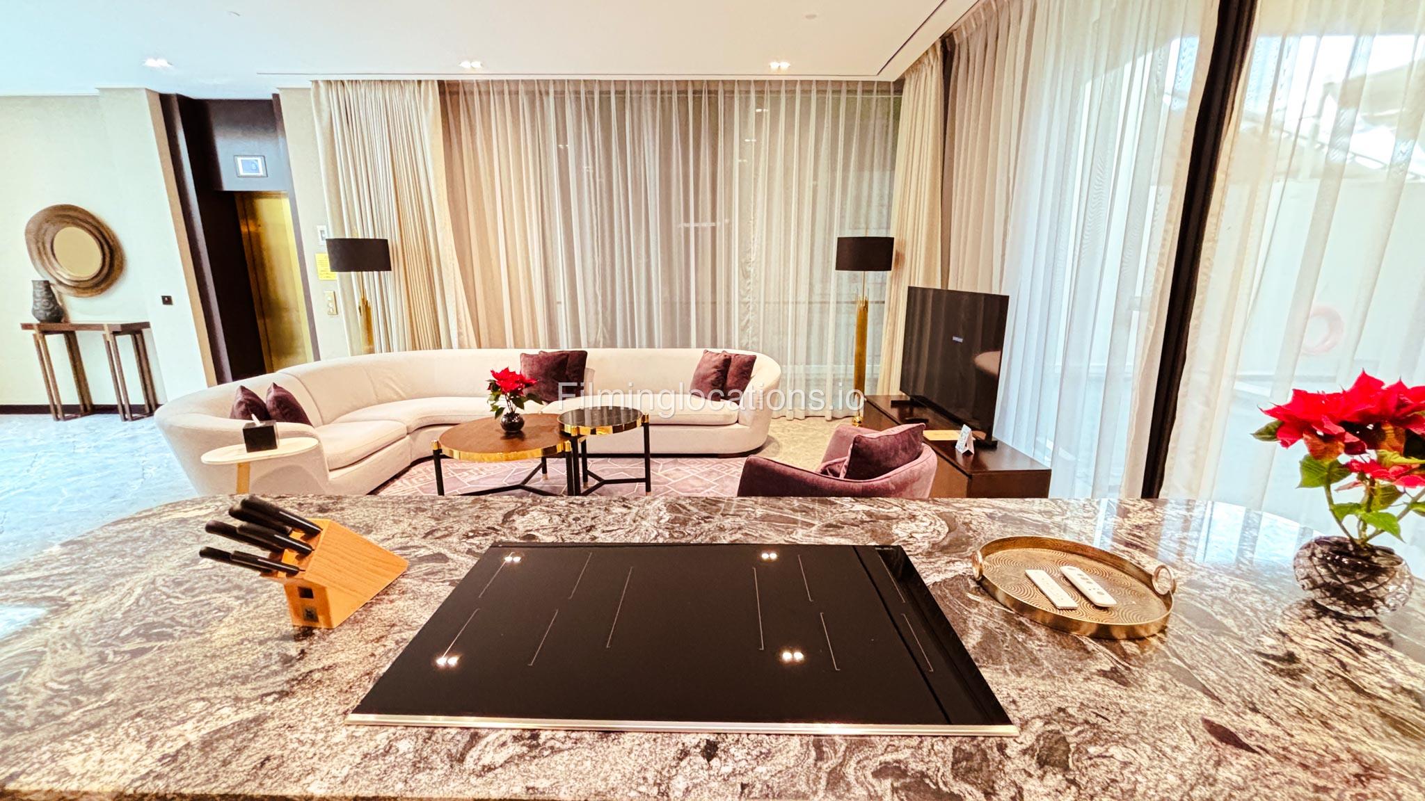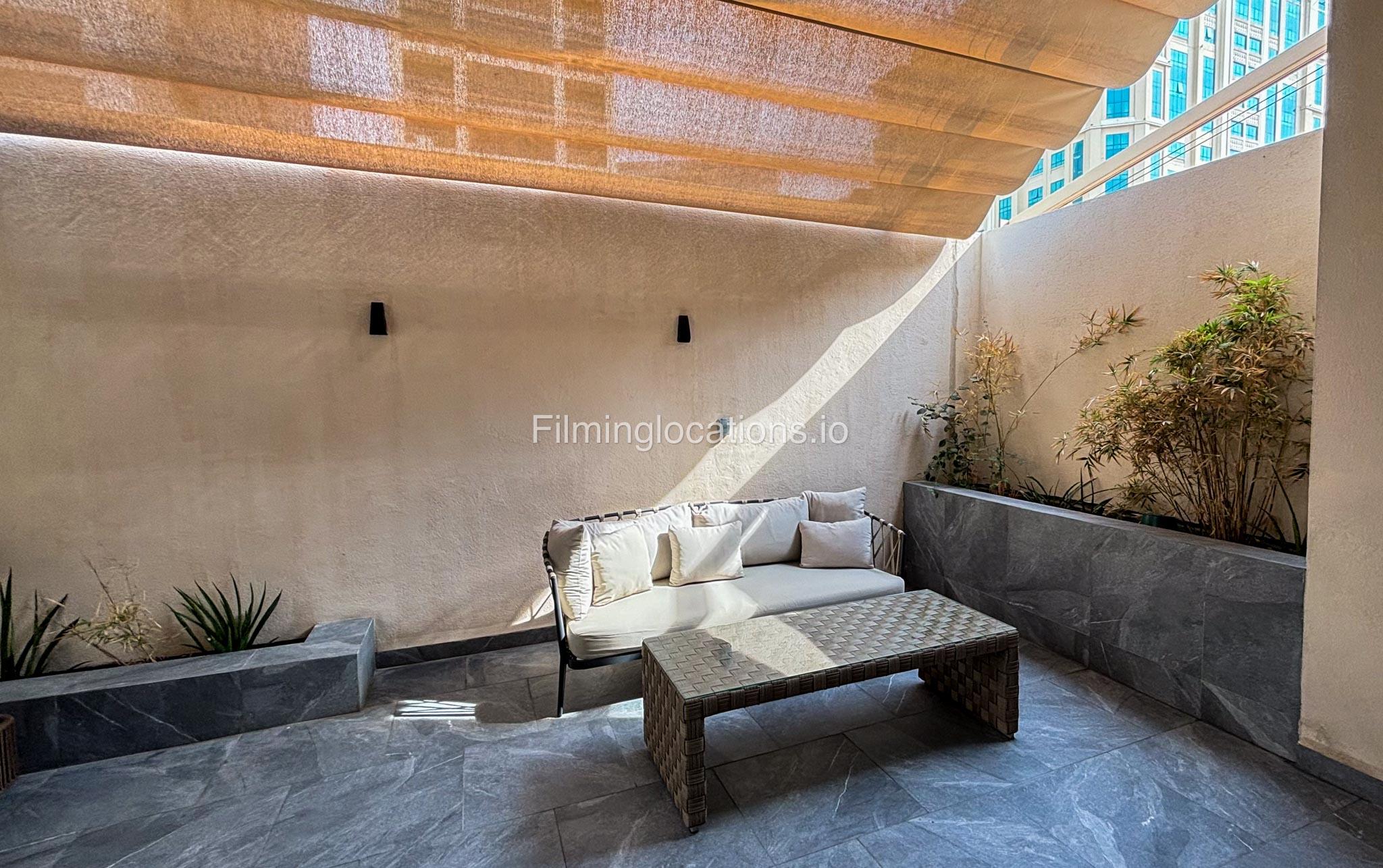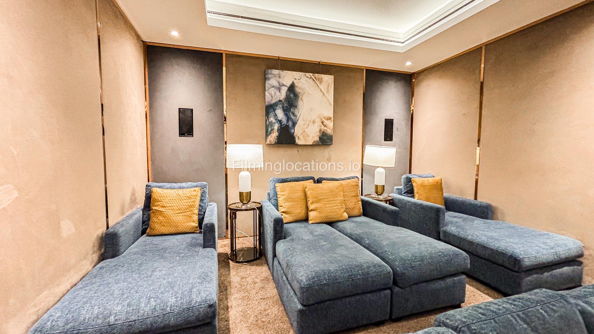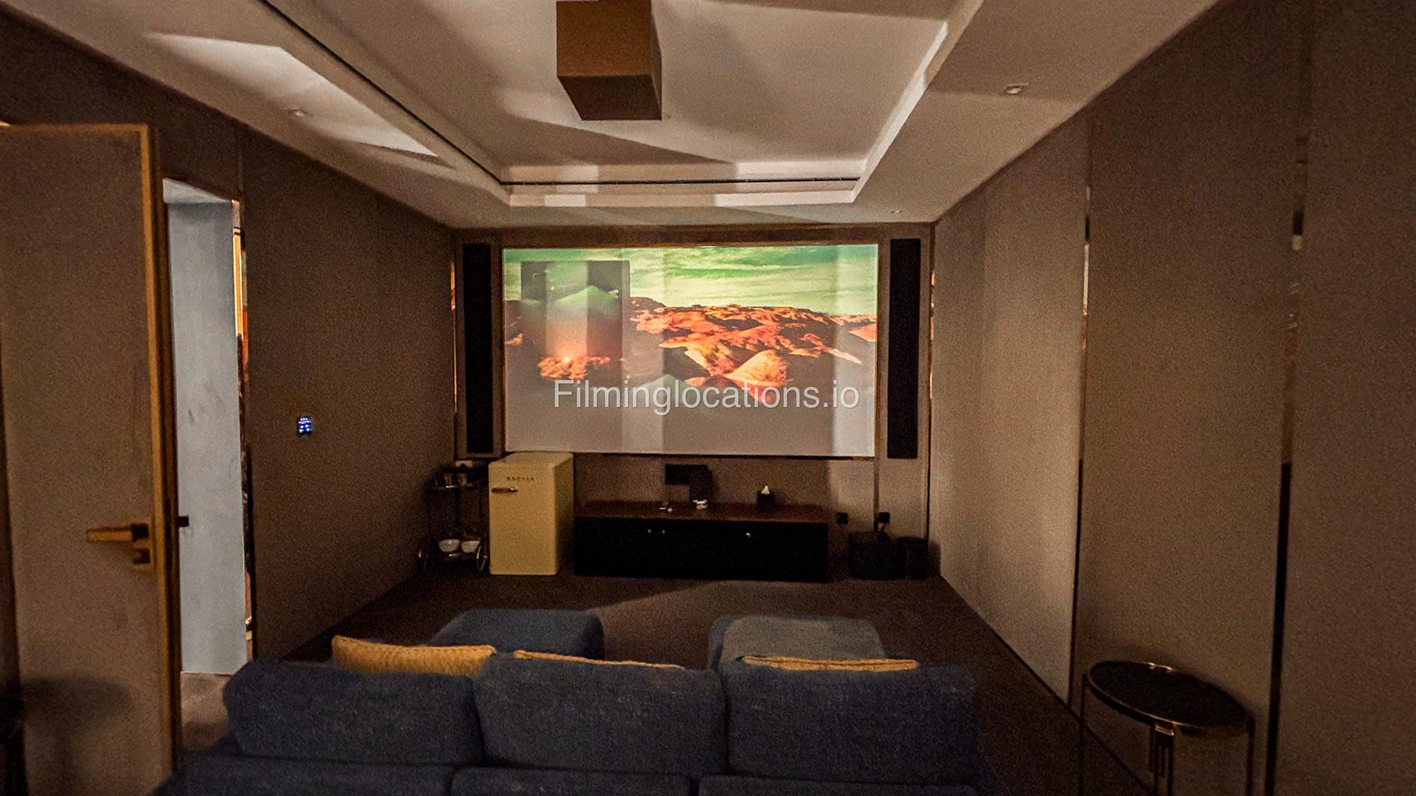 Additional features include a private Cinema, a Private elevator, a cozy seating area on the balcony, a Jacuzzi, and a garage, making it a functional and attractive choice for filming projects.