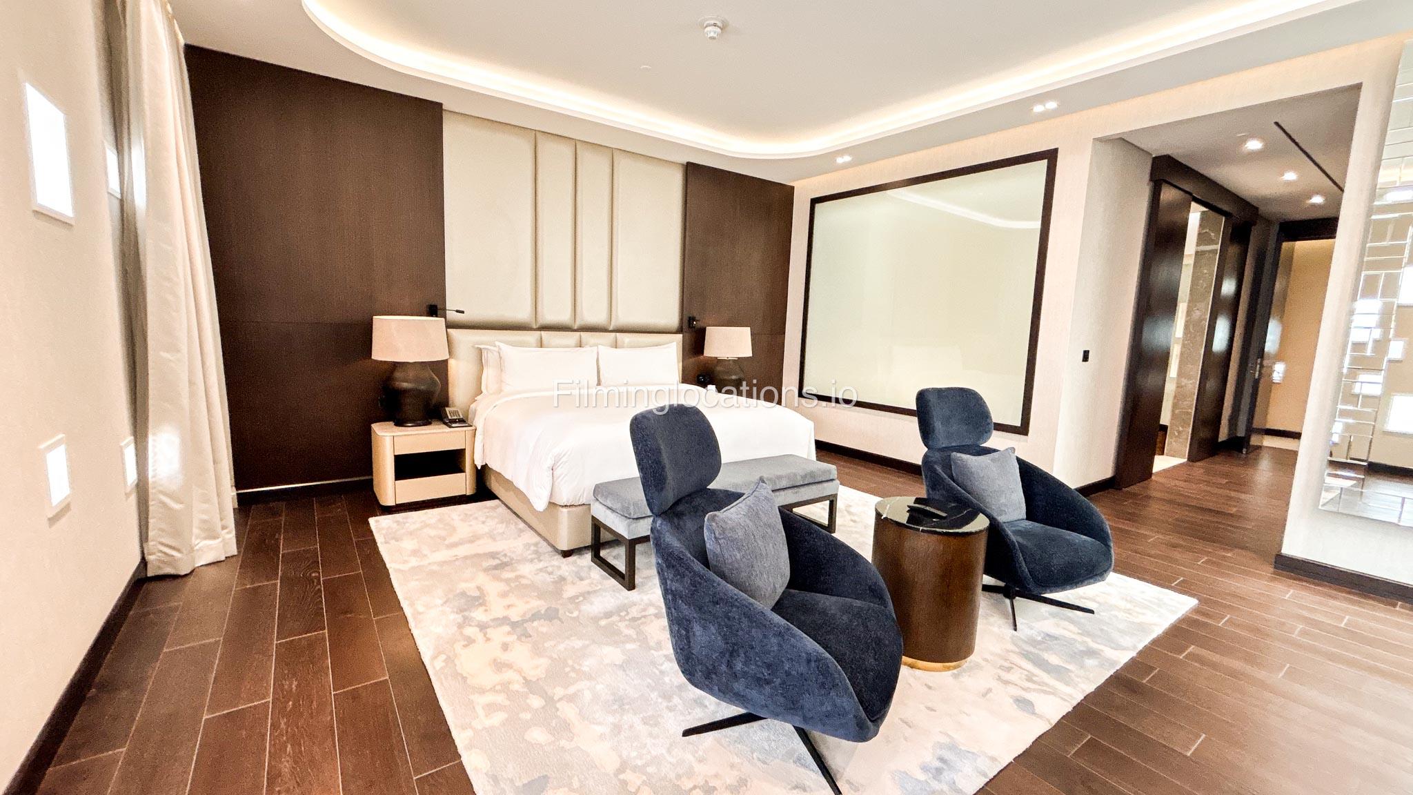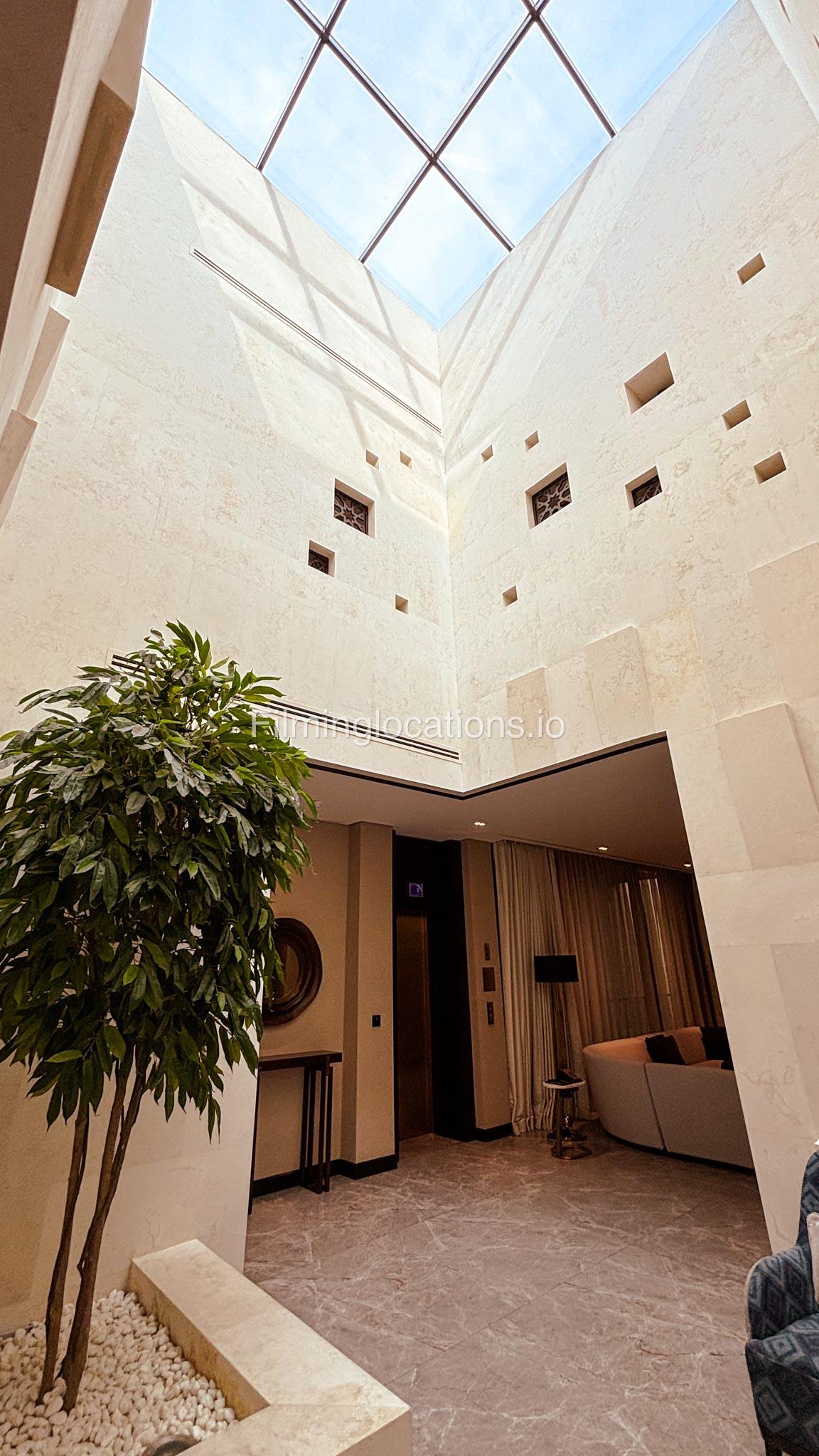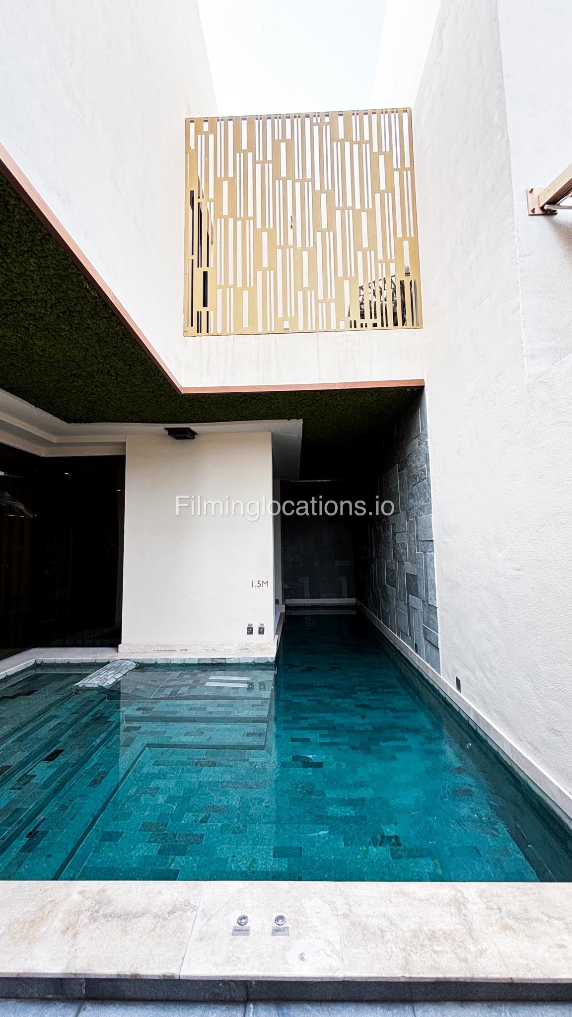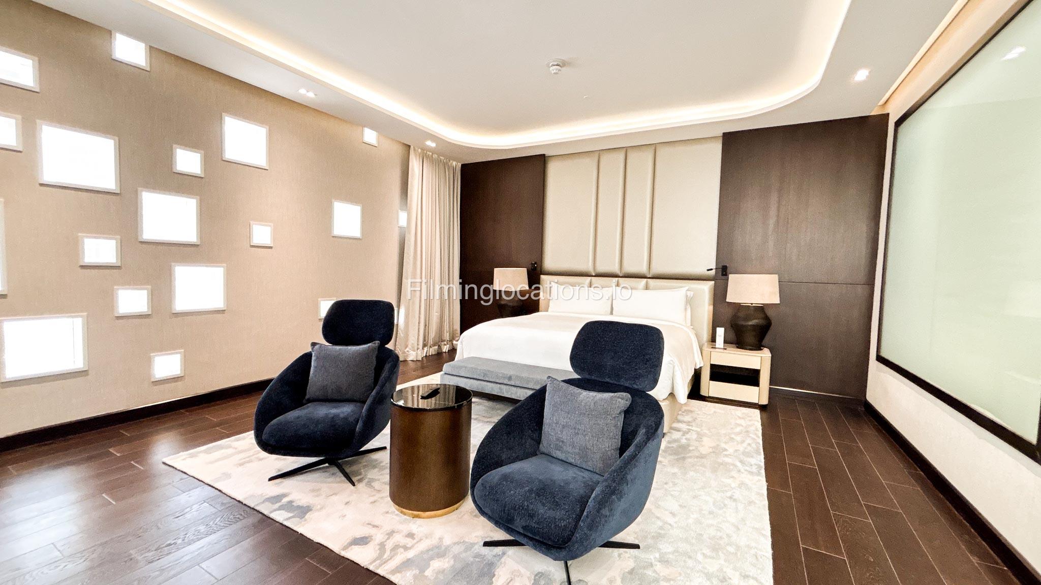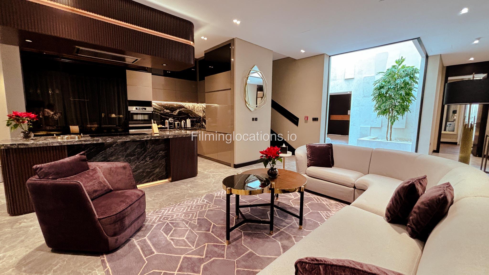 Additional features include a private Cinema, a Private elevator, a cozy seating area on the balcony, a Jacuzzi, and a garage, making it a functional and attractive choice for filming projects.