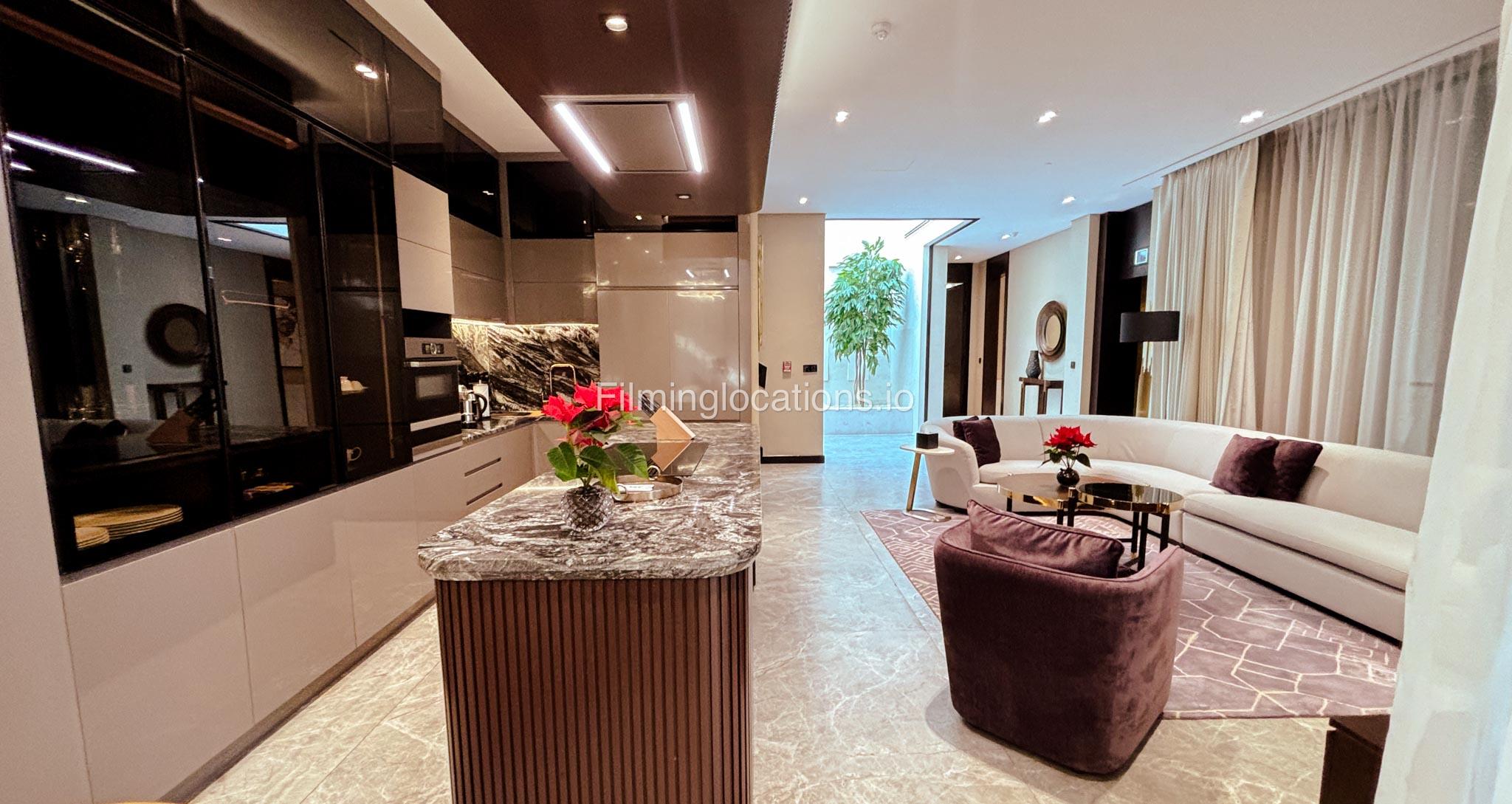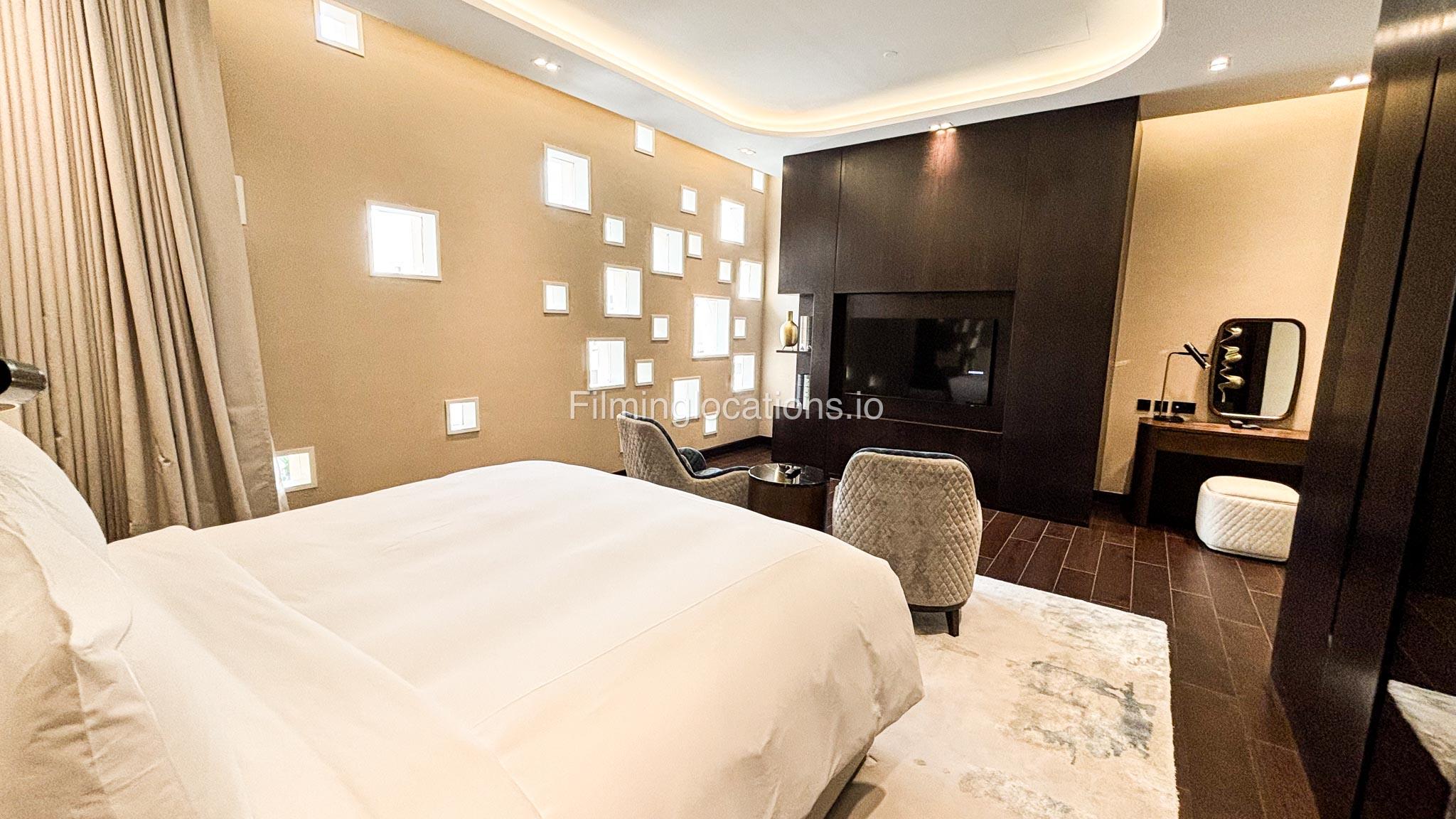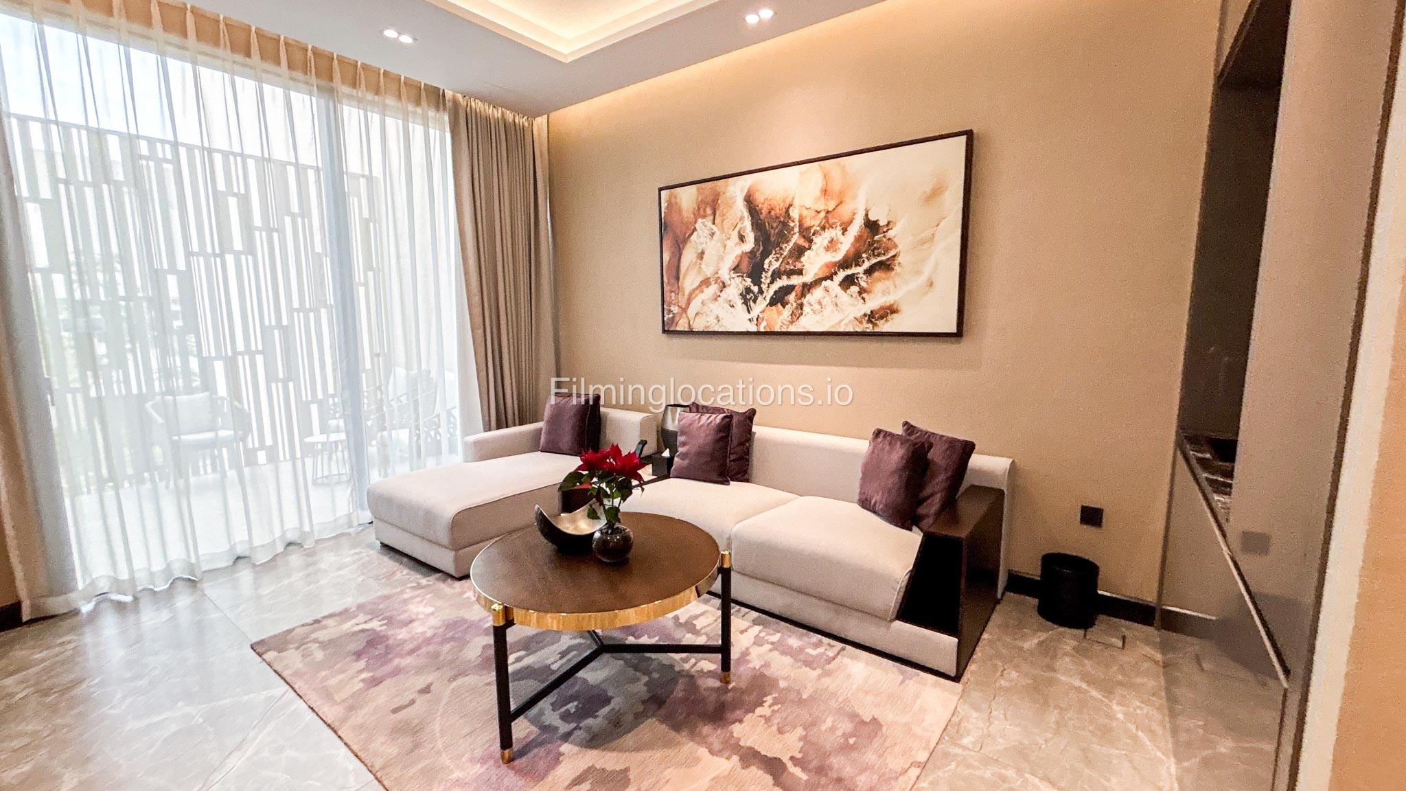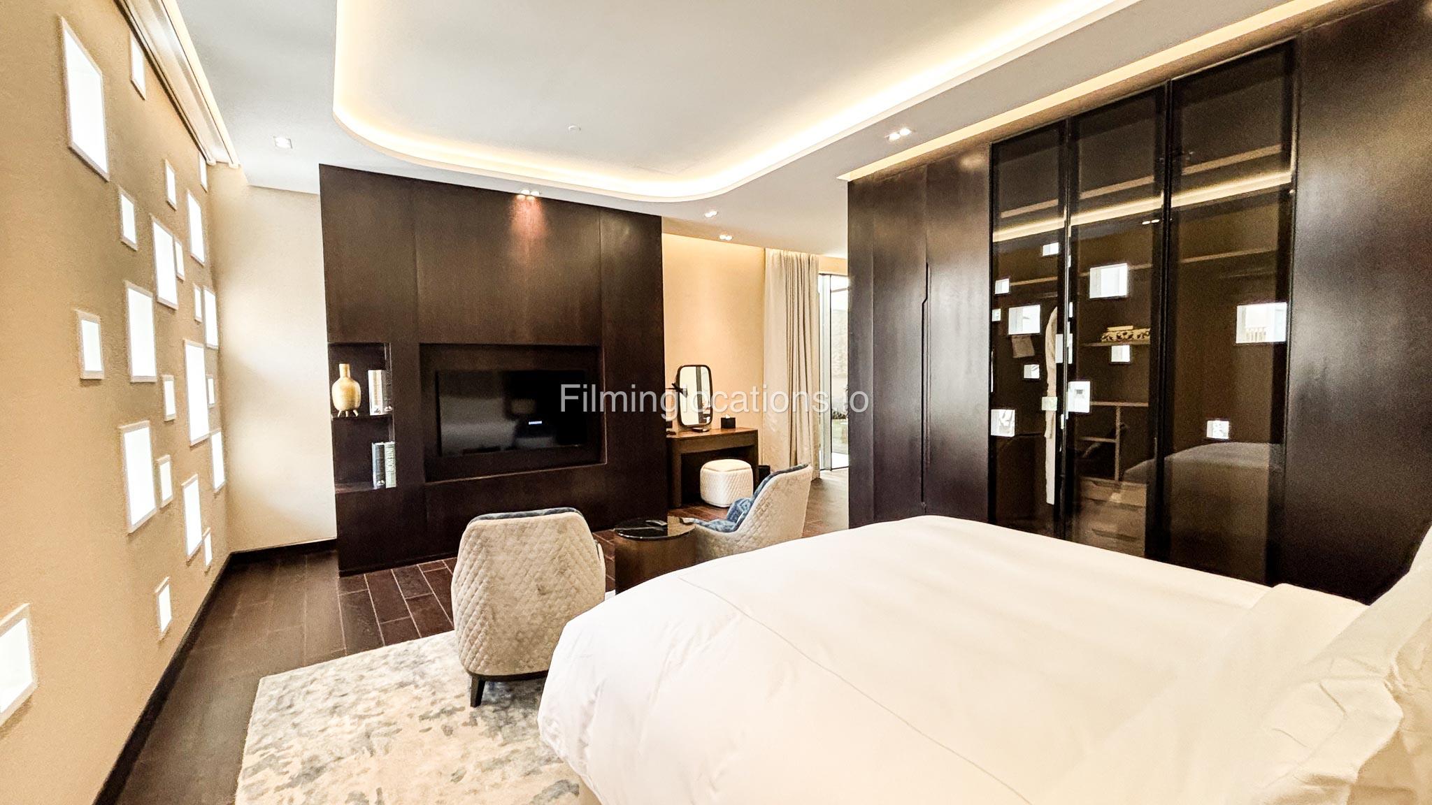 Additional features include a private Cinema, a Private elevator, a cozy seating area on the balcony, a Jacuzzi, and a garage, making it a functional and attractive choice for filming projects.