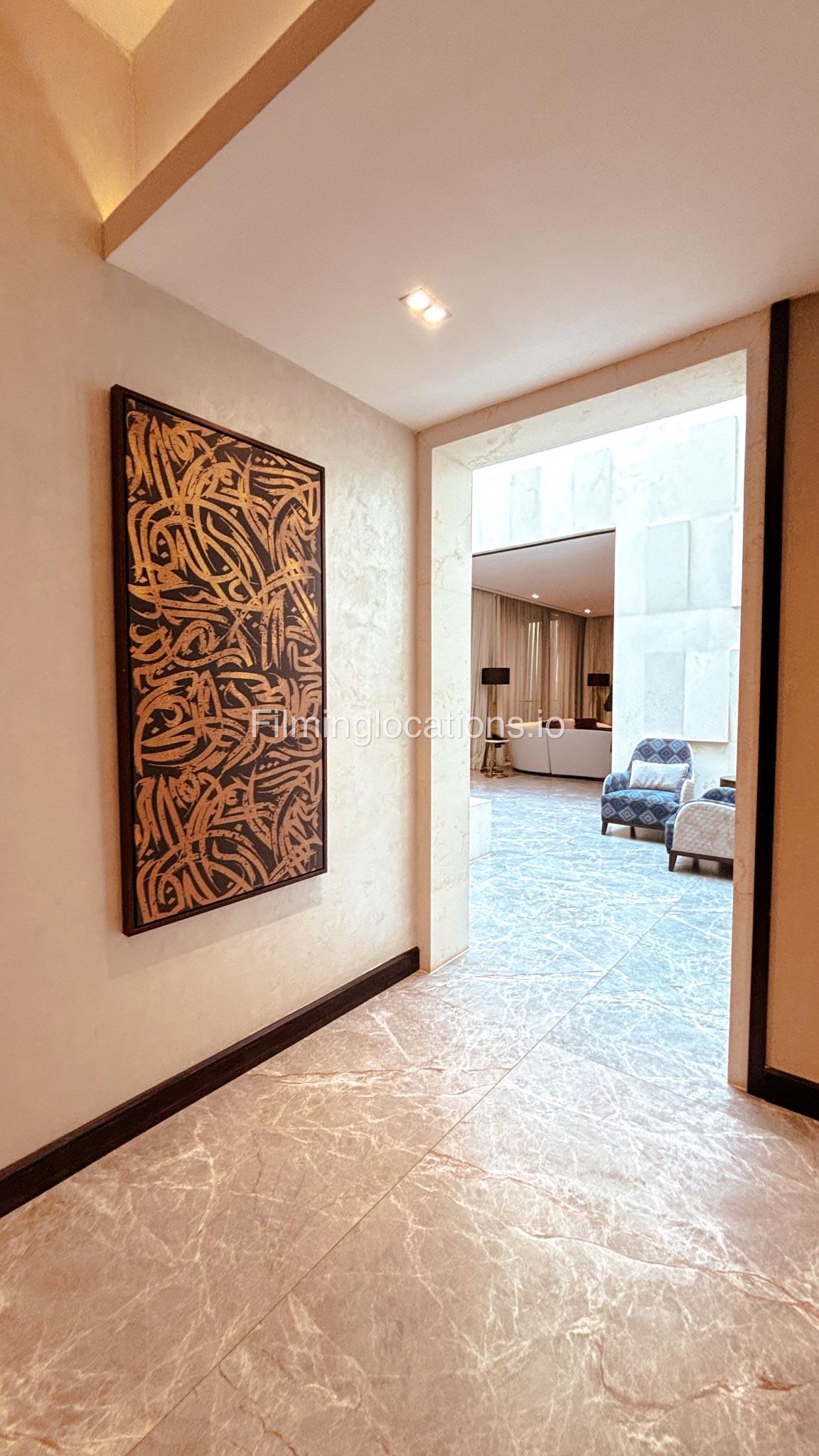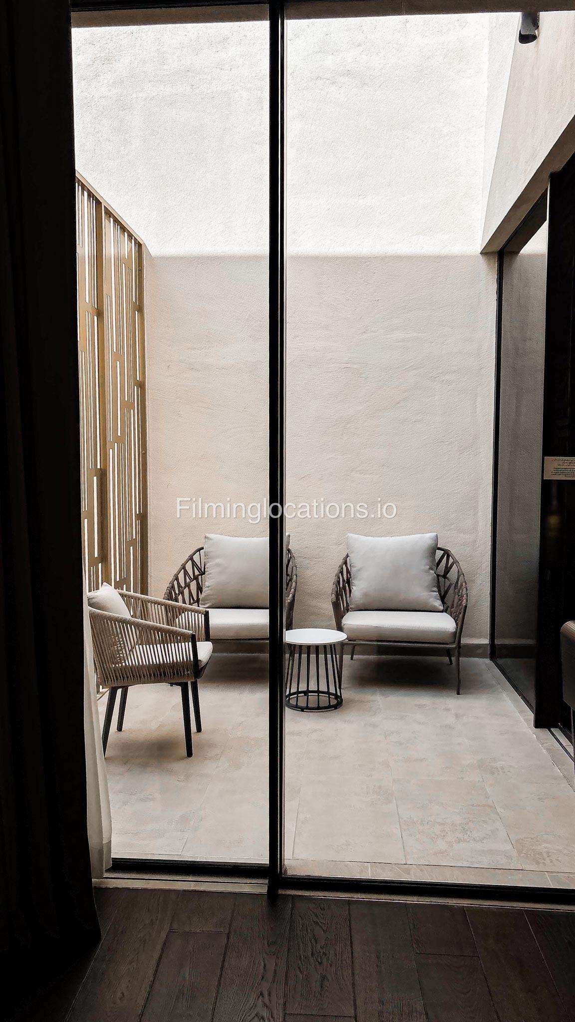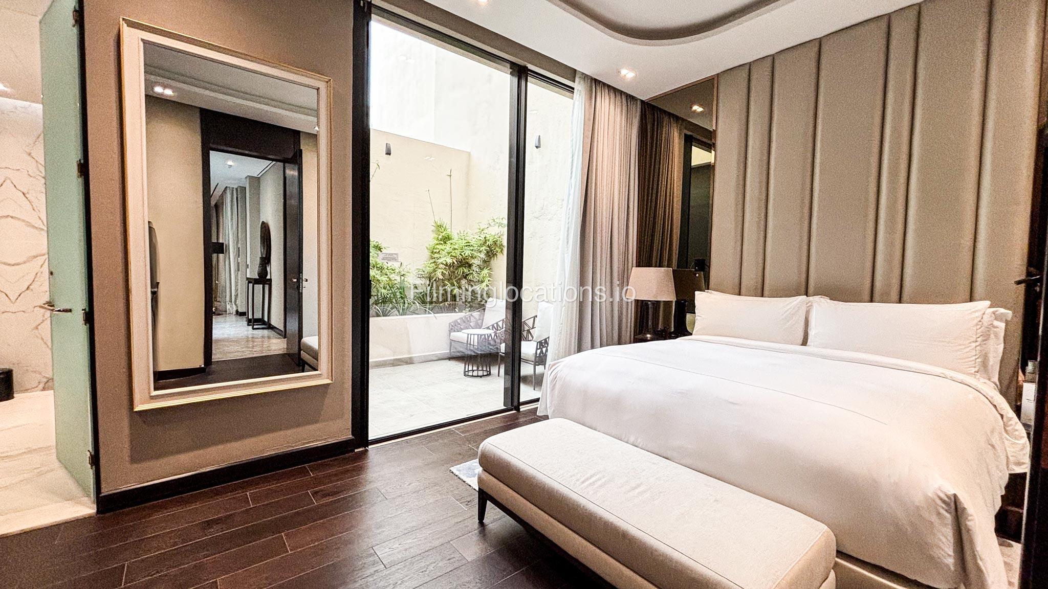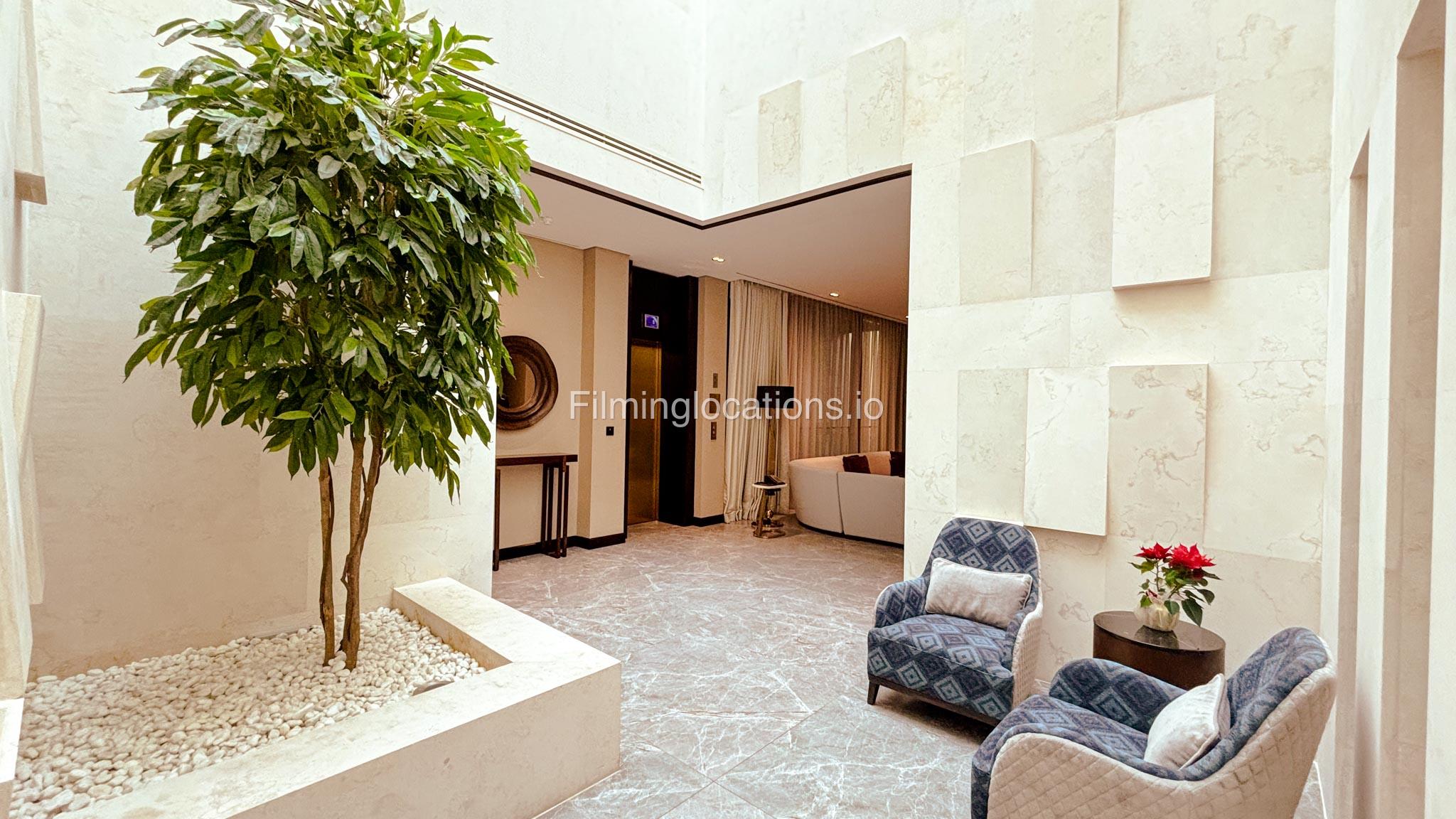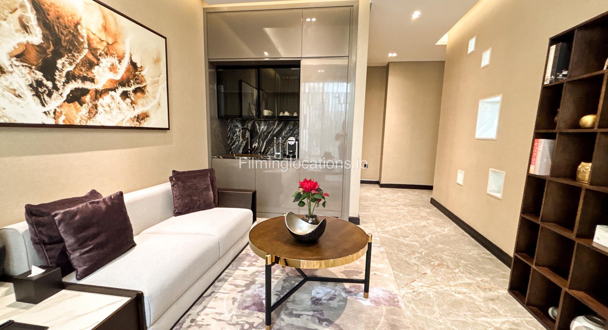 Additional features include a private Cinema, a Private elevator, a cozy seating area on the balcony, a Jacuzzi, and a garage, making it a functional and attractive choice for filming projects.