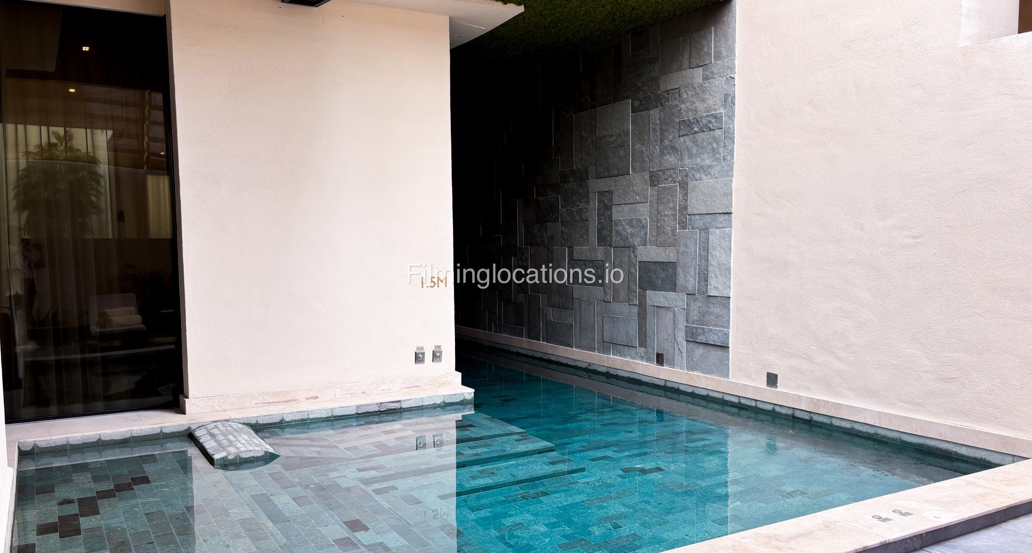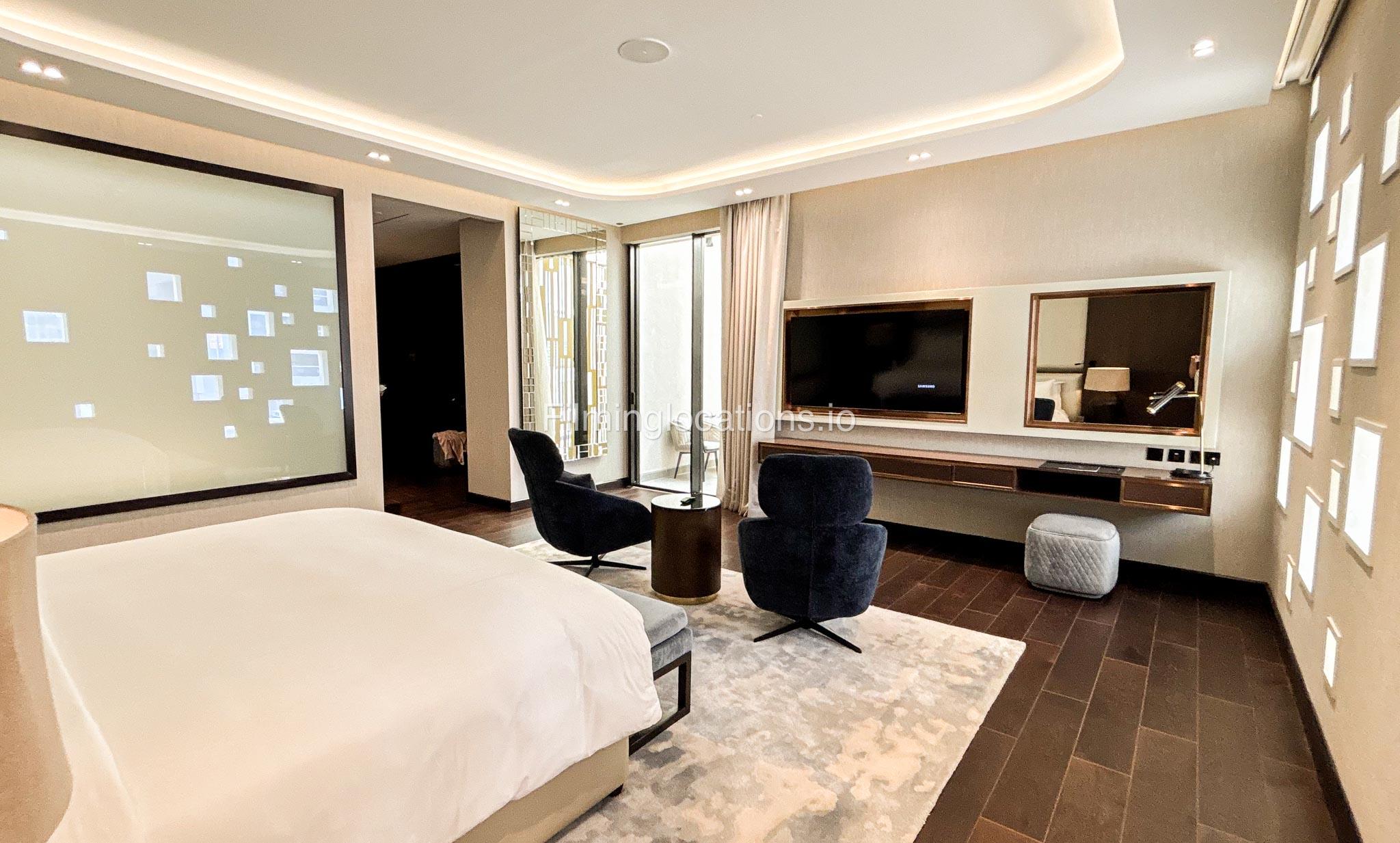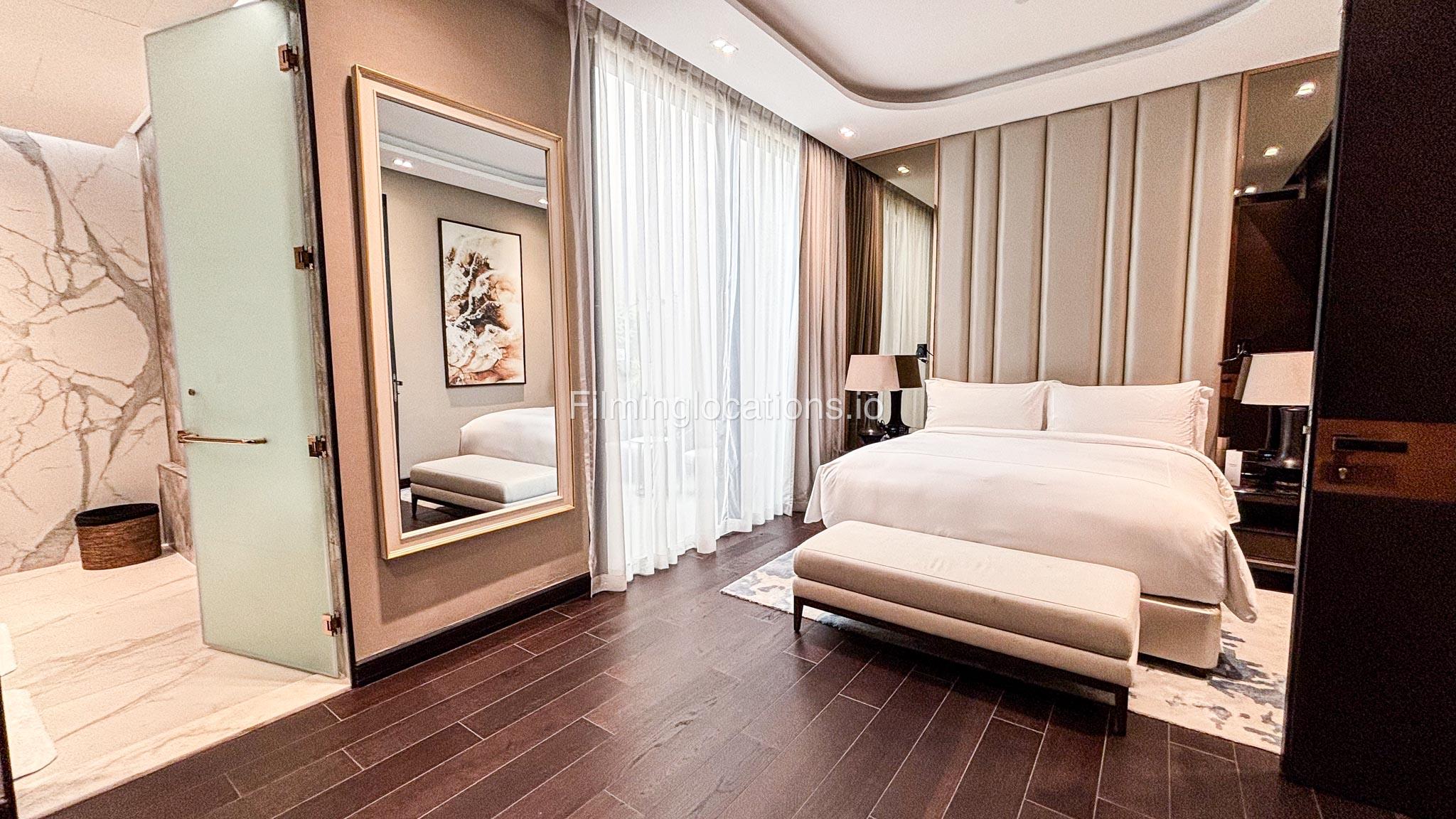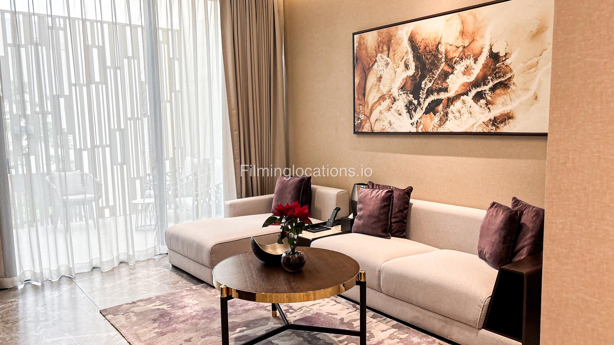 Additional features include a private Cinema, a Private elevator, a cozy seating area on the balcony, a Jacuzzi, and a garage, making it a functional and attractive choice for filming projects.