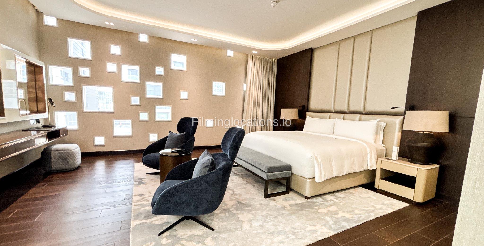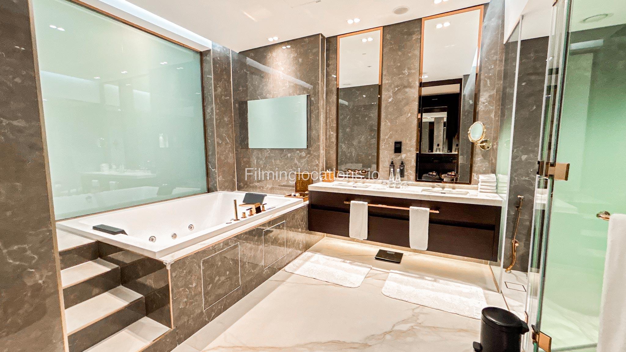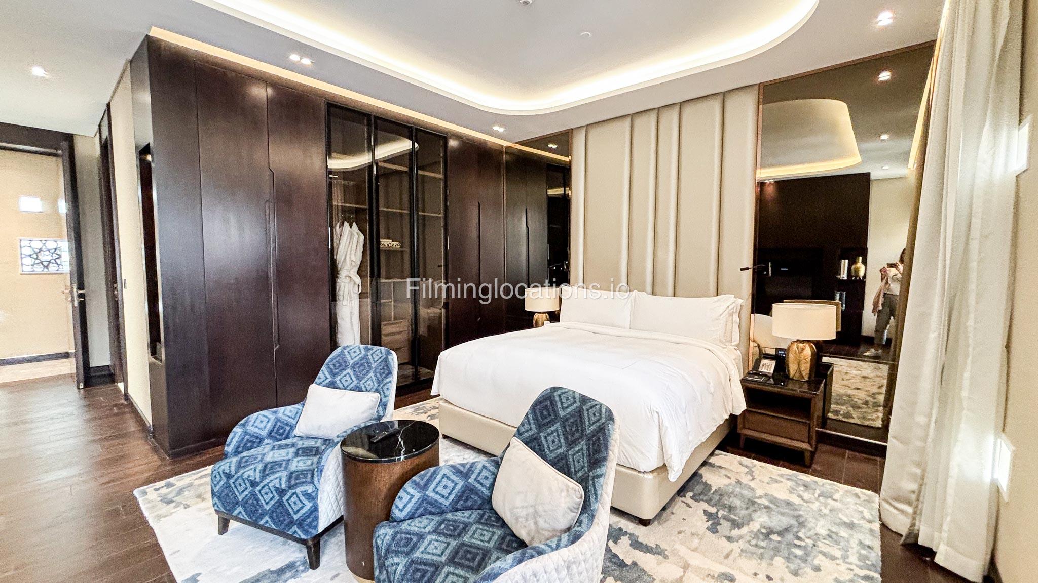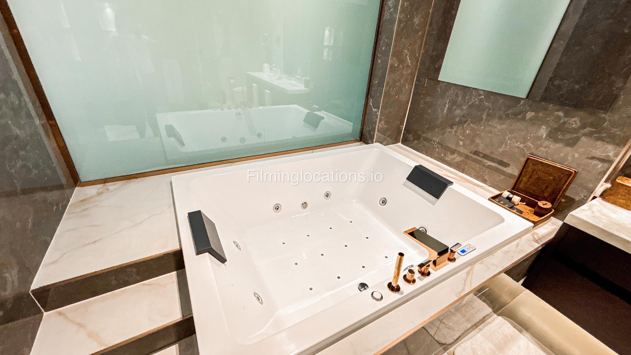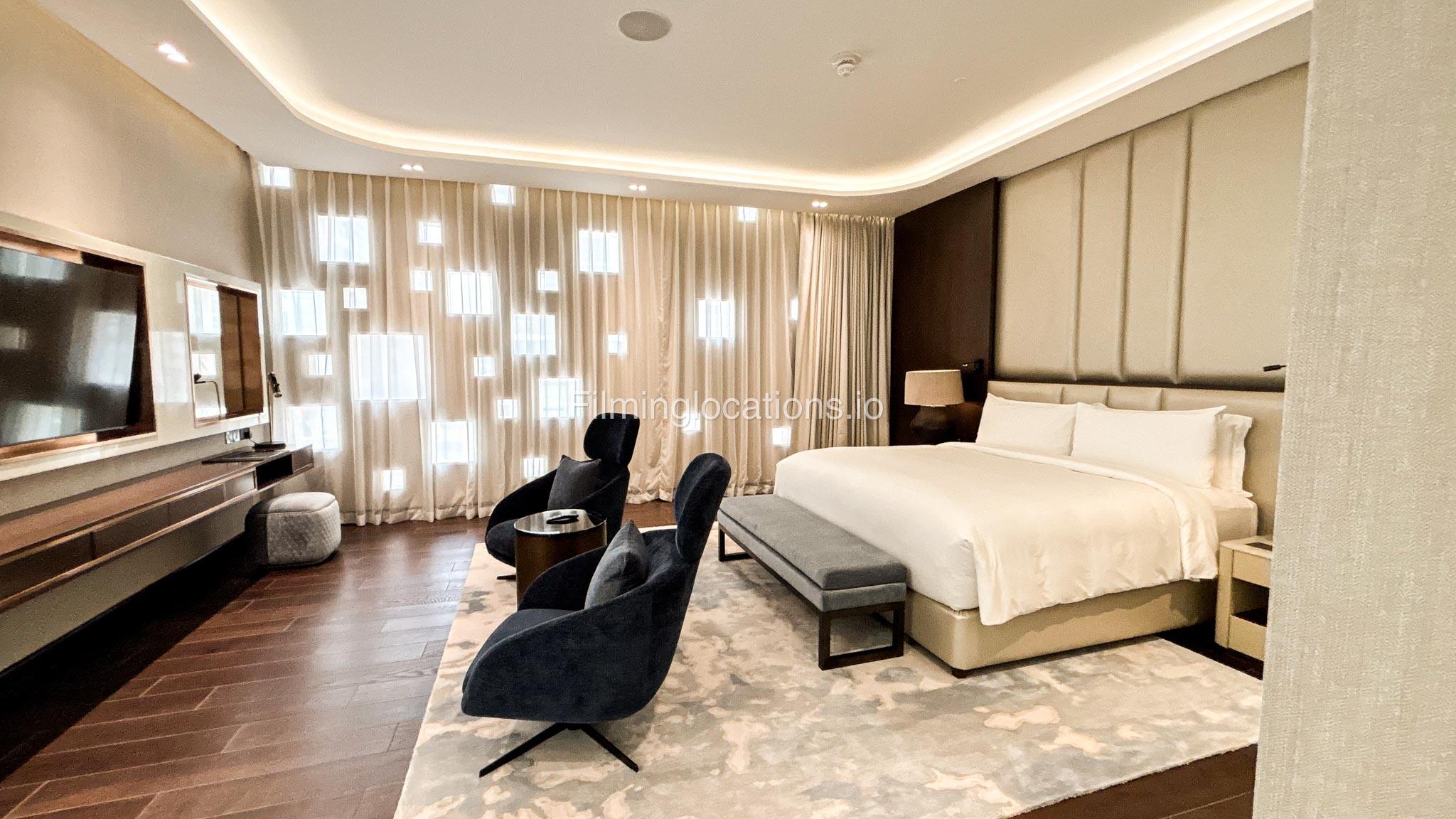 Additional features include a private Cinema, a Private elevator, a cozy seating area on the balcony, a Jacuzzi, and a garage, making it a functional and attractive choice for filming projects.