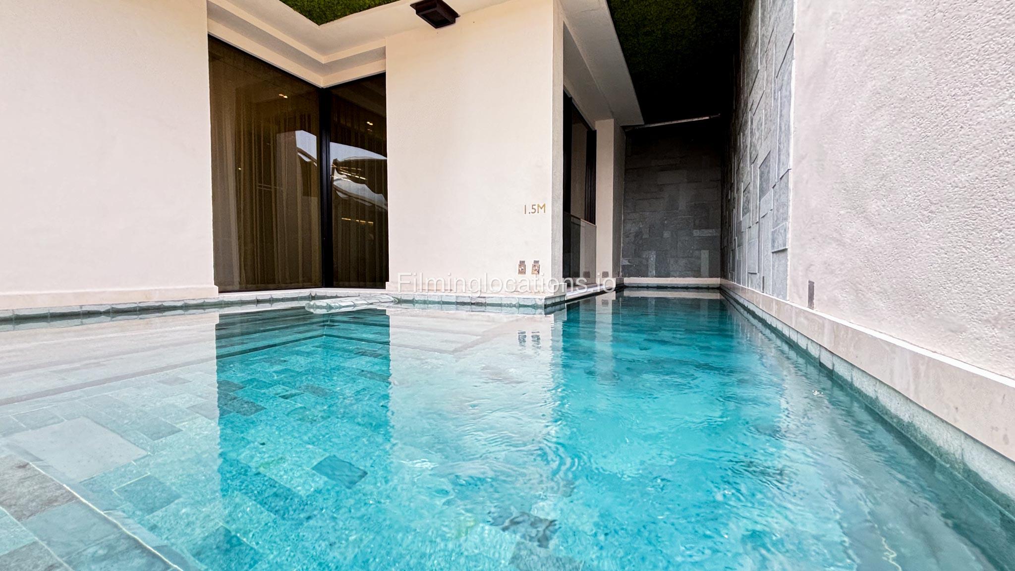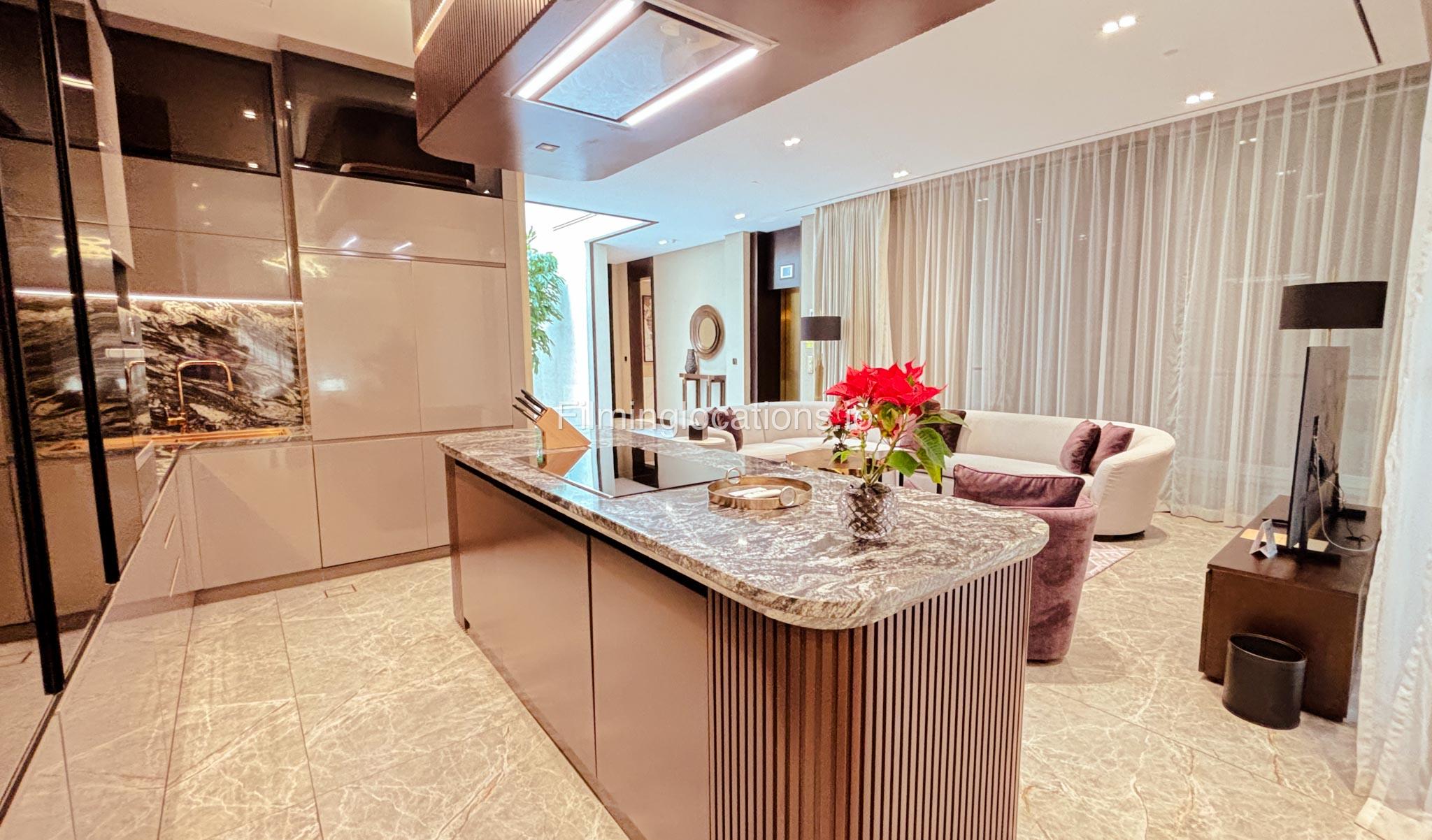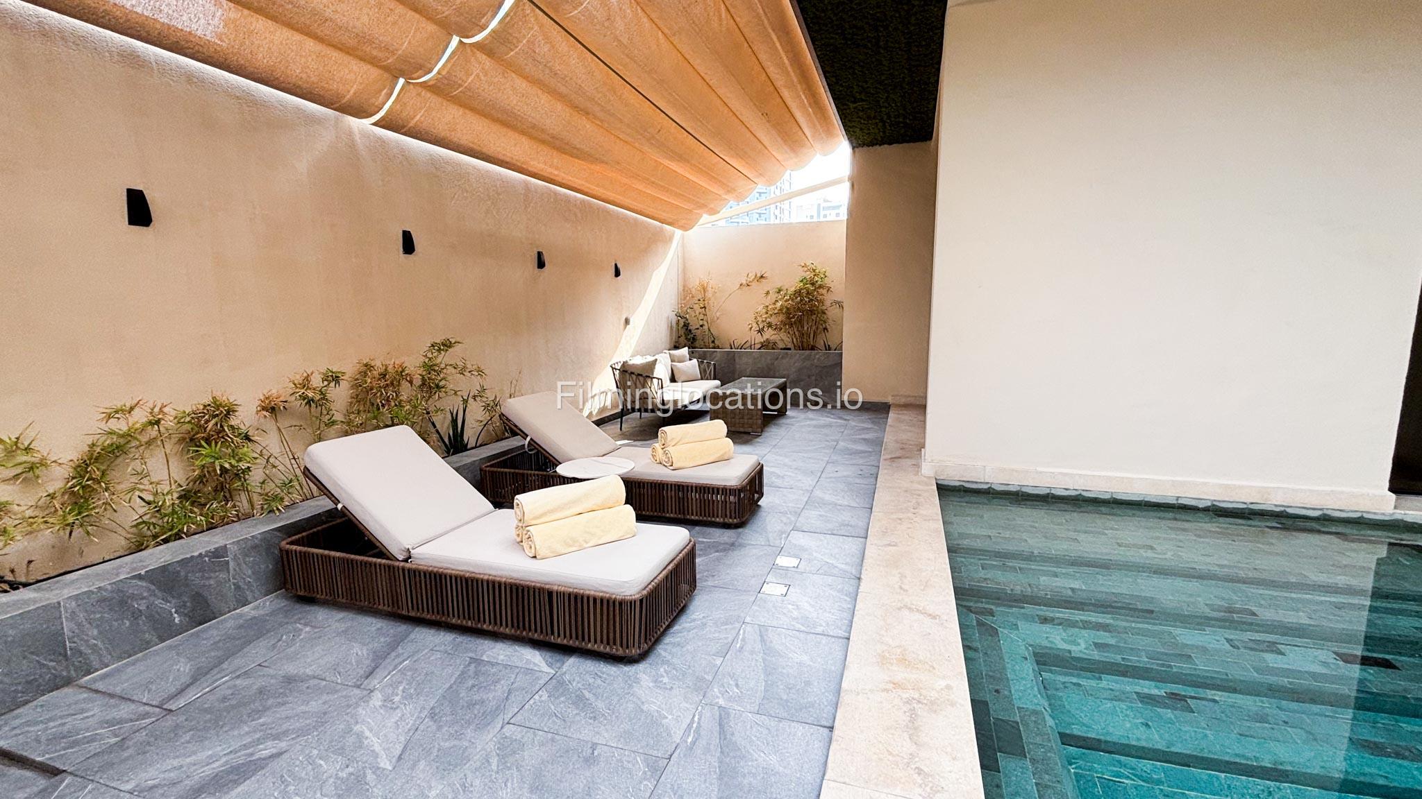 This 3-bedroom villa, featuring a private entrance and a pool with a waterfall fountain. The villa includes 2 spacious living rooms filled with natural light from its skylight ceiling.