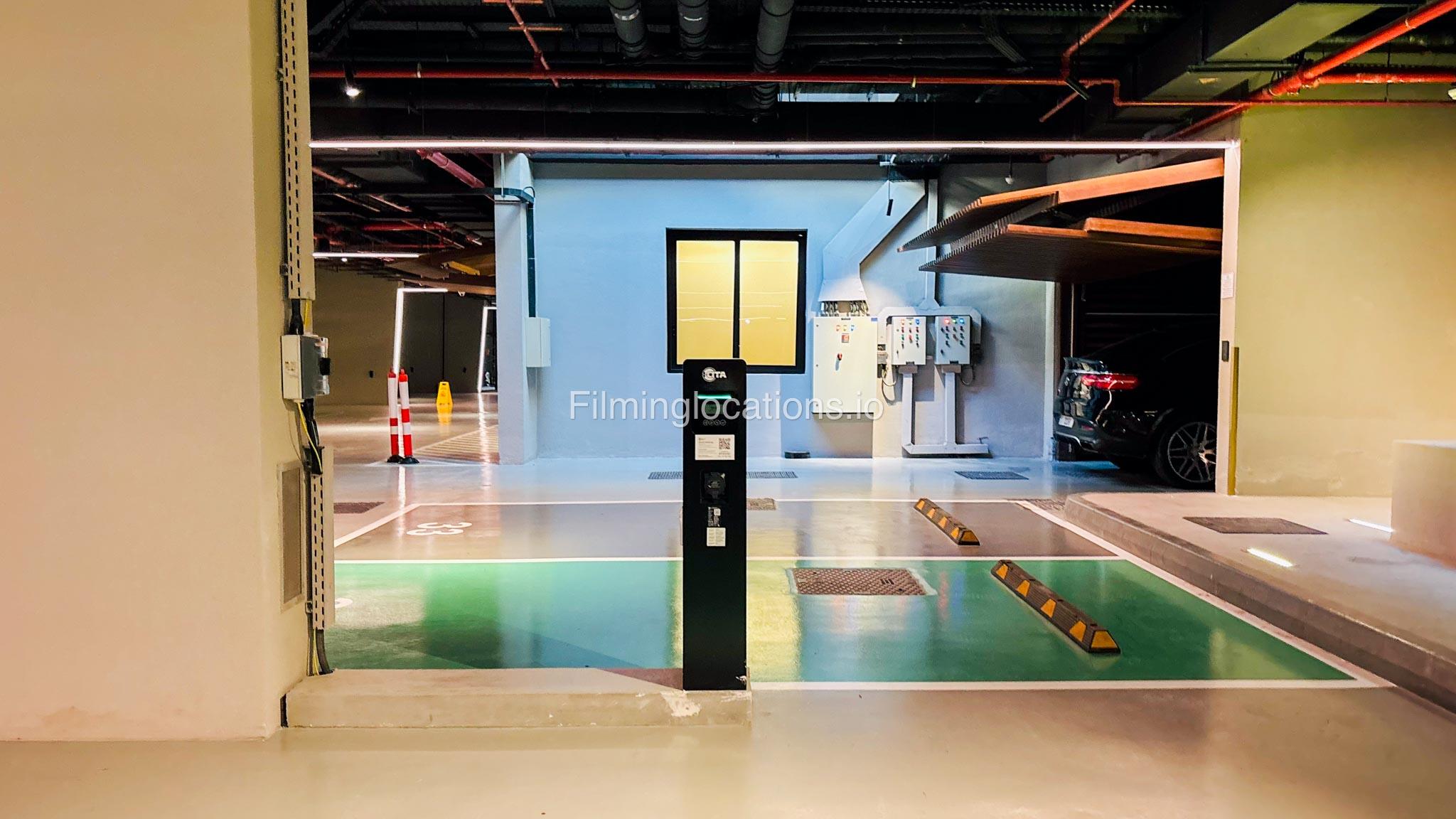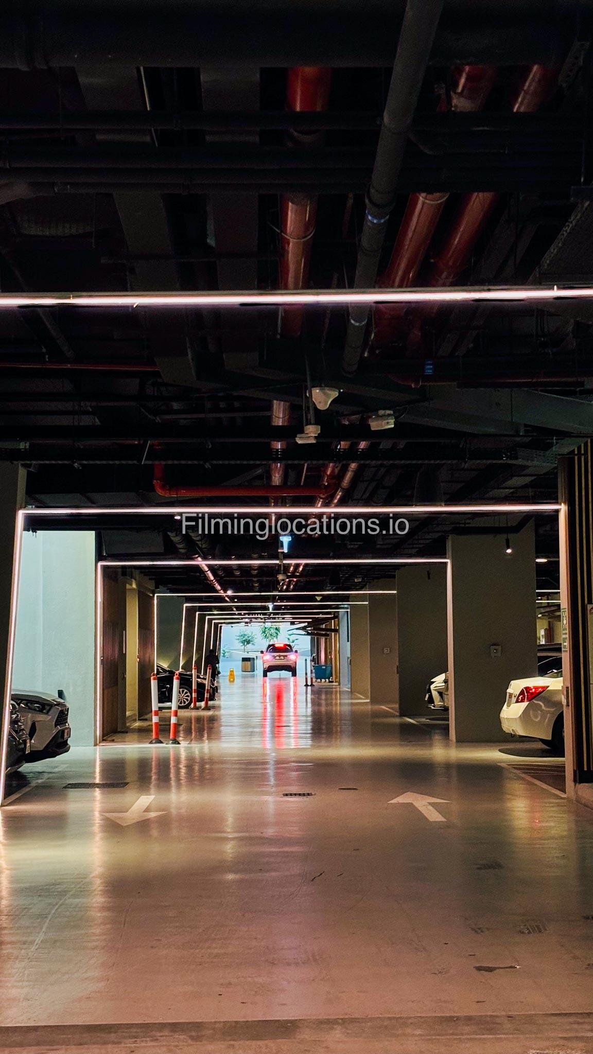 Spacious urban parking lot, perfect for film shoots, car commercials, or photoshoots. Features clean lines and an industrial vibe that suits a variety of projects. Easily accessible with ample room for equipment and crew. Ideal for capturing modern, gritty, or urban scenes.