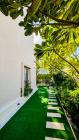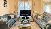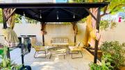 Our villa offers 5 bedrooms with a practical layout, a kitchen with a dining area, a warmly furnished living room, and a colorful garden with a sitting lounge.