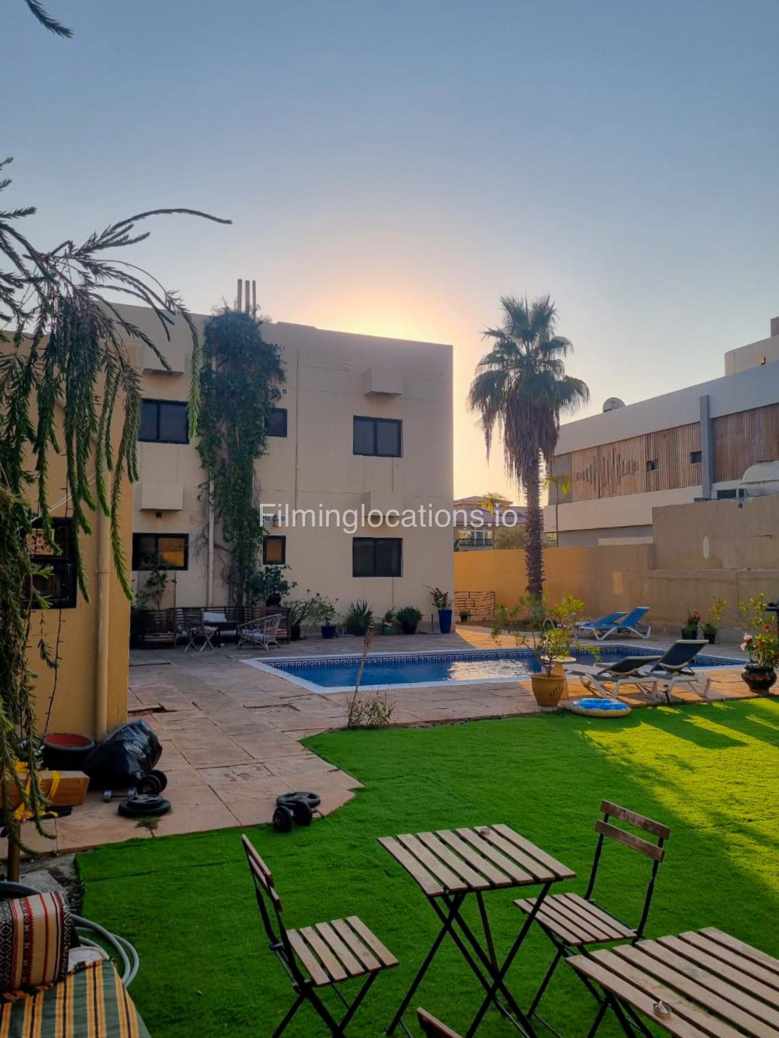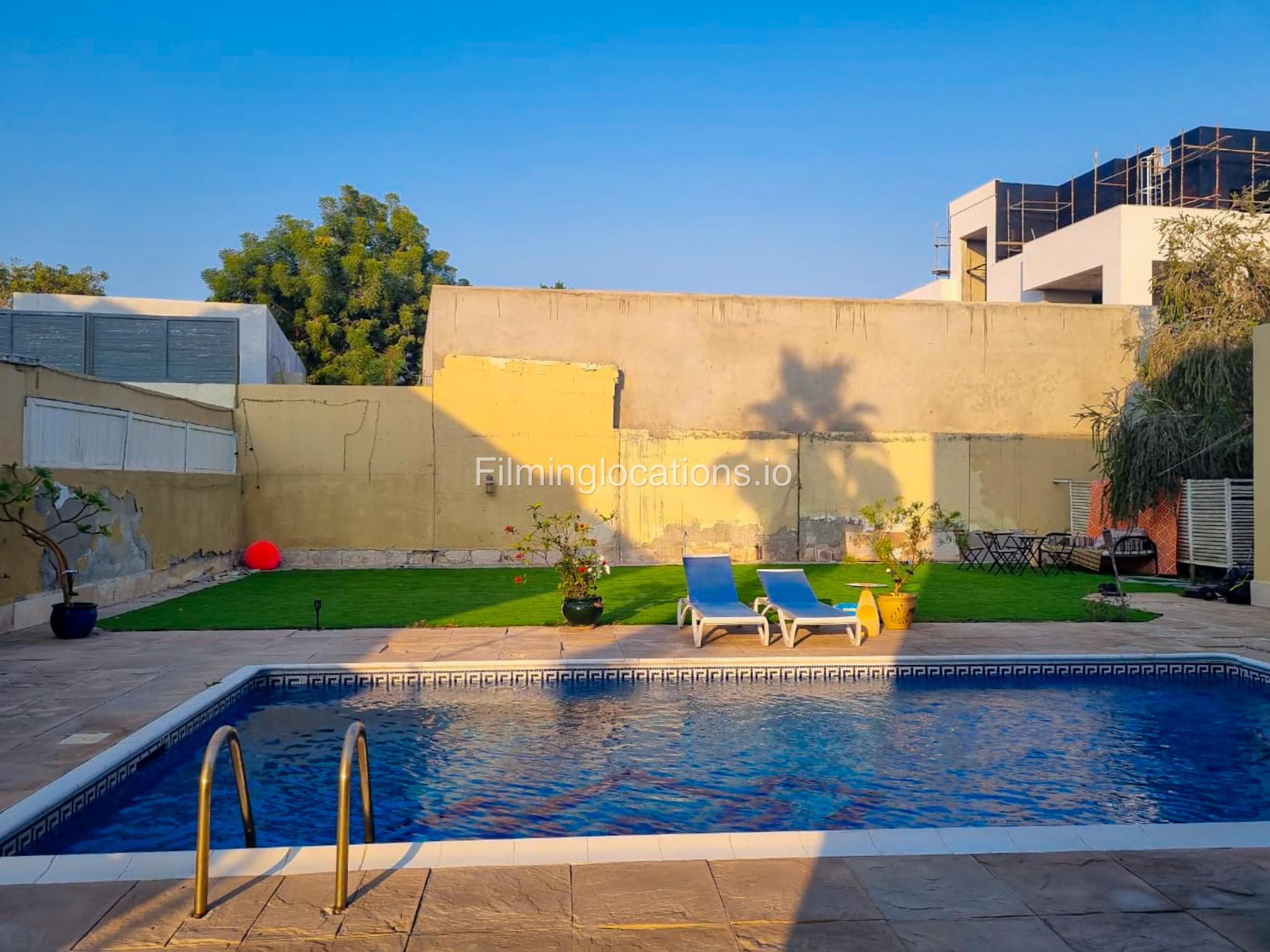 Beautiful home in Jumeirah 2 with large private pool and garden. Large space for production including also the living room as well as rooftop spaces with 360 views. It provides a unique and private setting for any production.