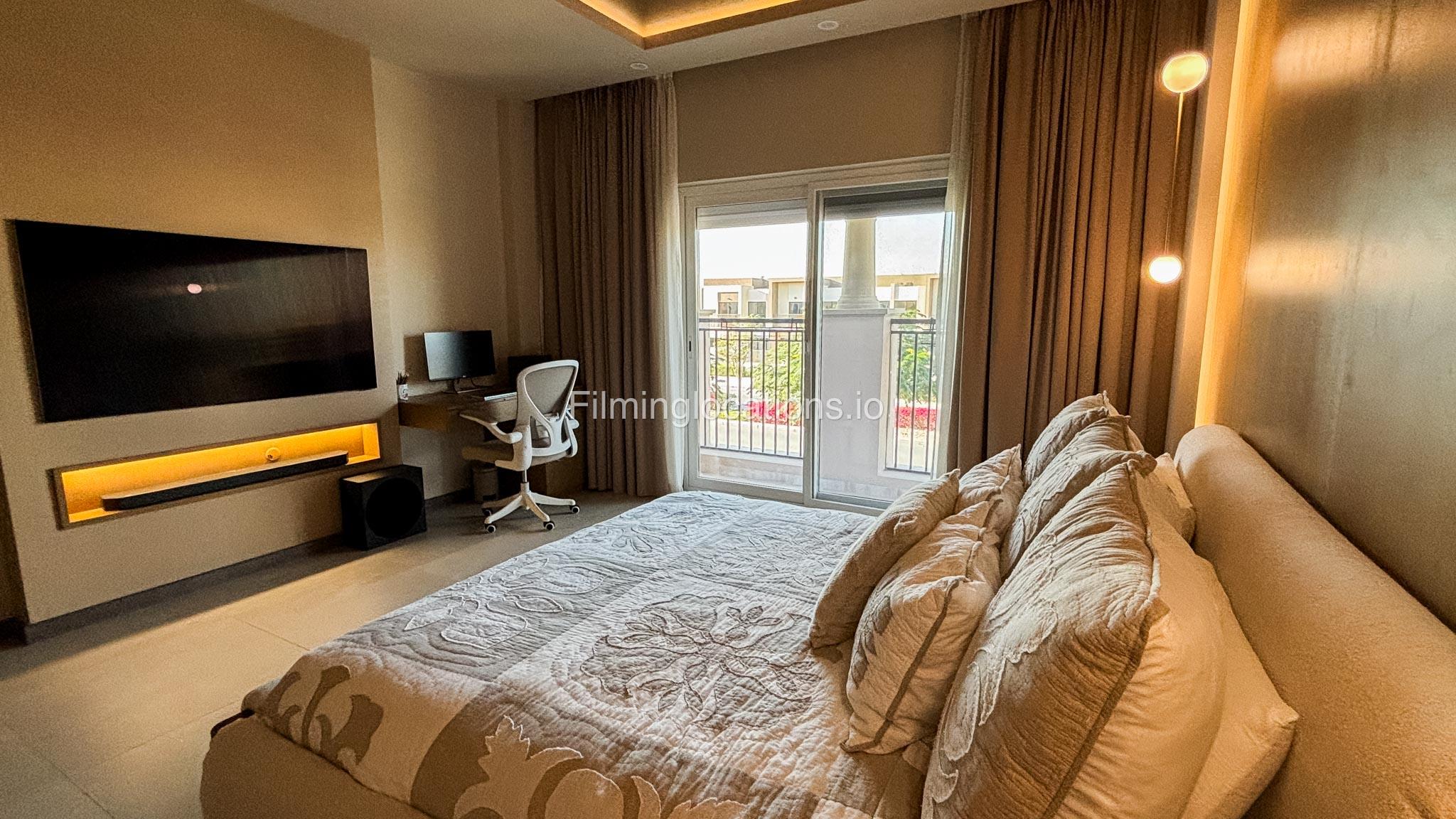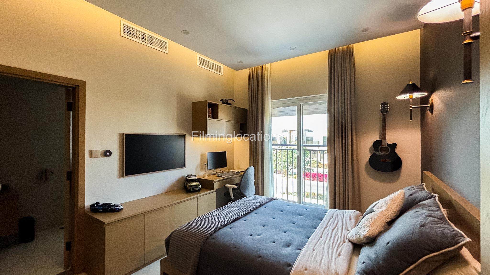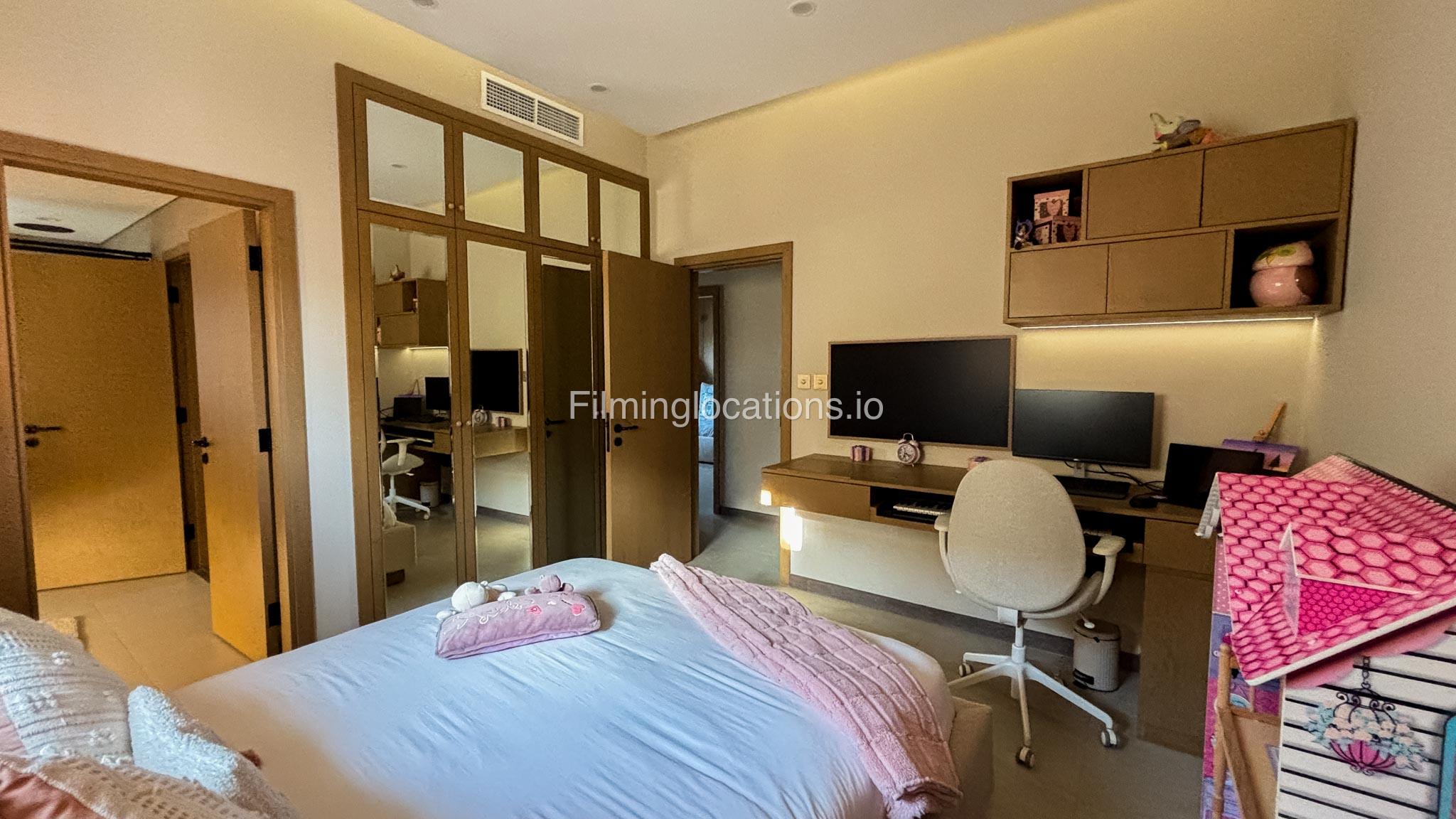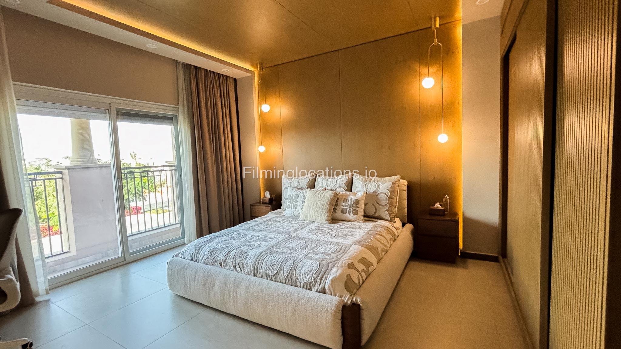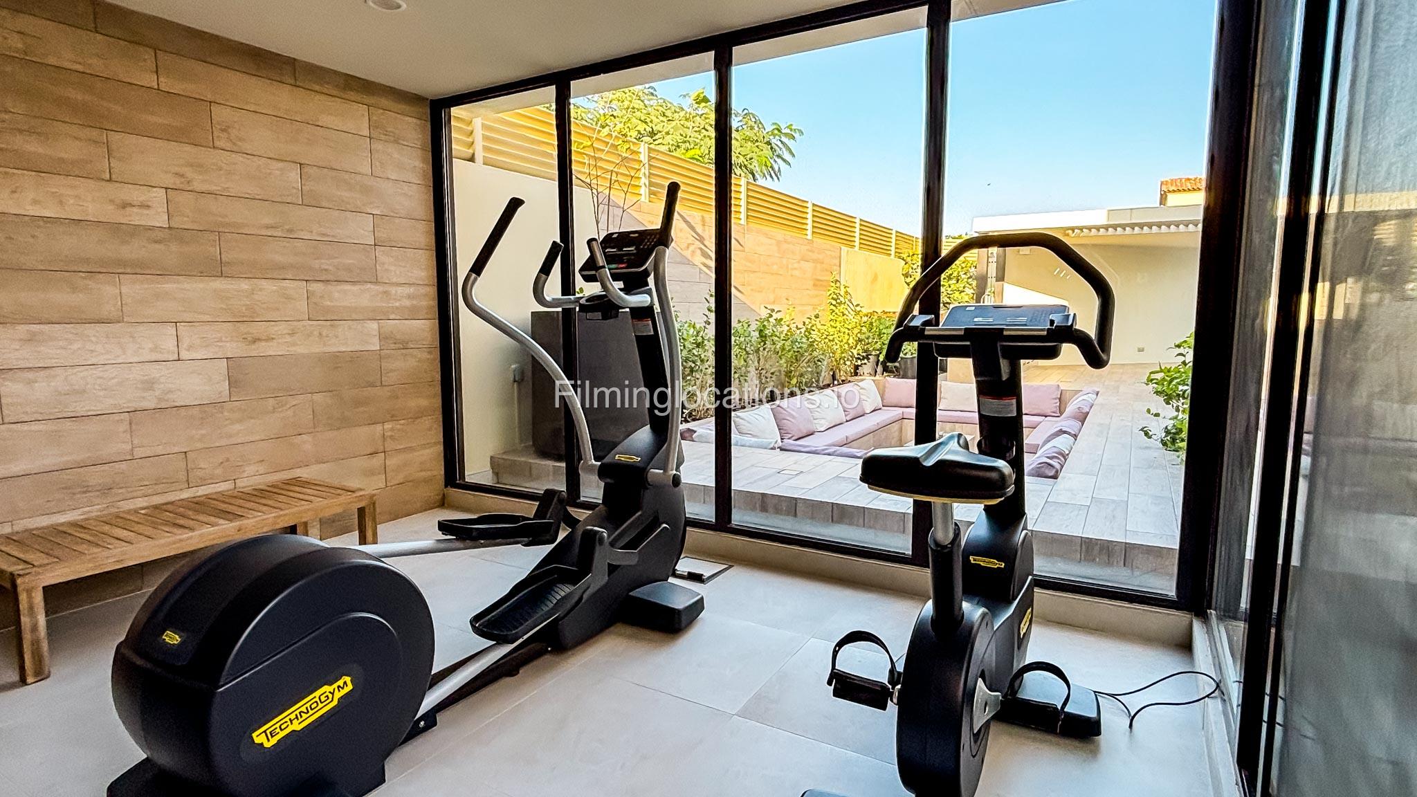 The upper floor houses 4 bedrooms, each enhanced with dimmable light features and elegant ceiling designs. Outdoor, the villa boasts a swimming pool, a sunken seating area with fire pits, and a gym surrounded by glass walls. This versatile space is perfect for filming and creative projects.