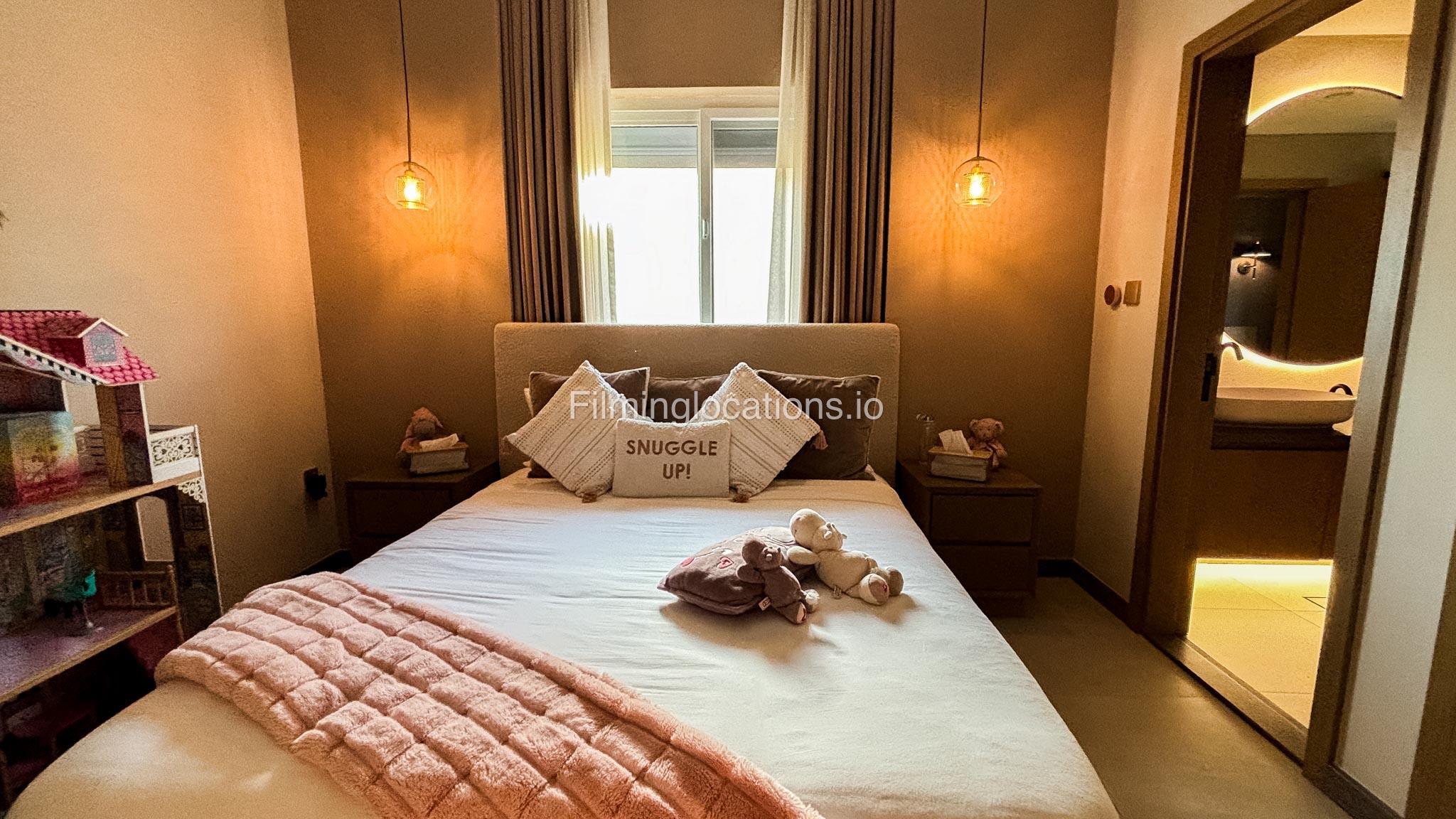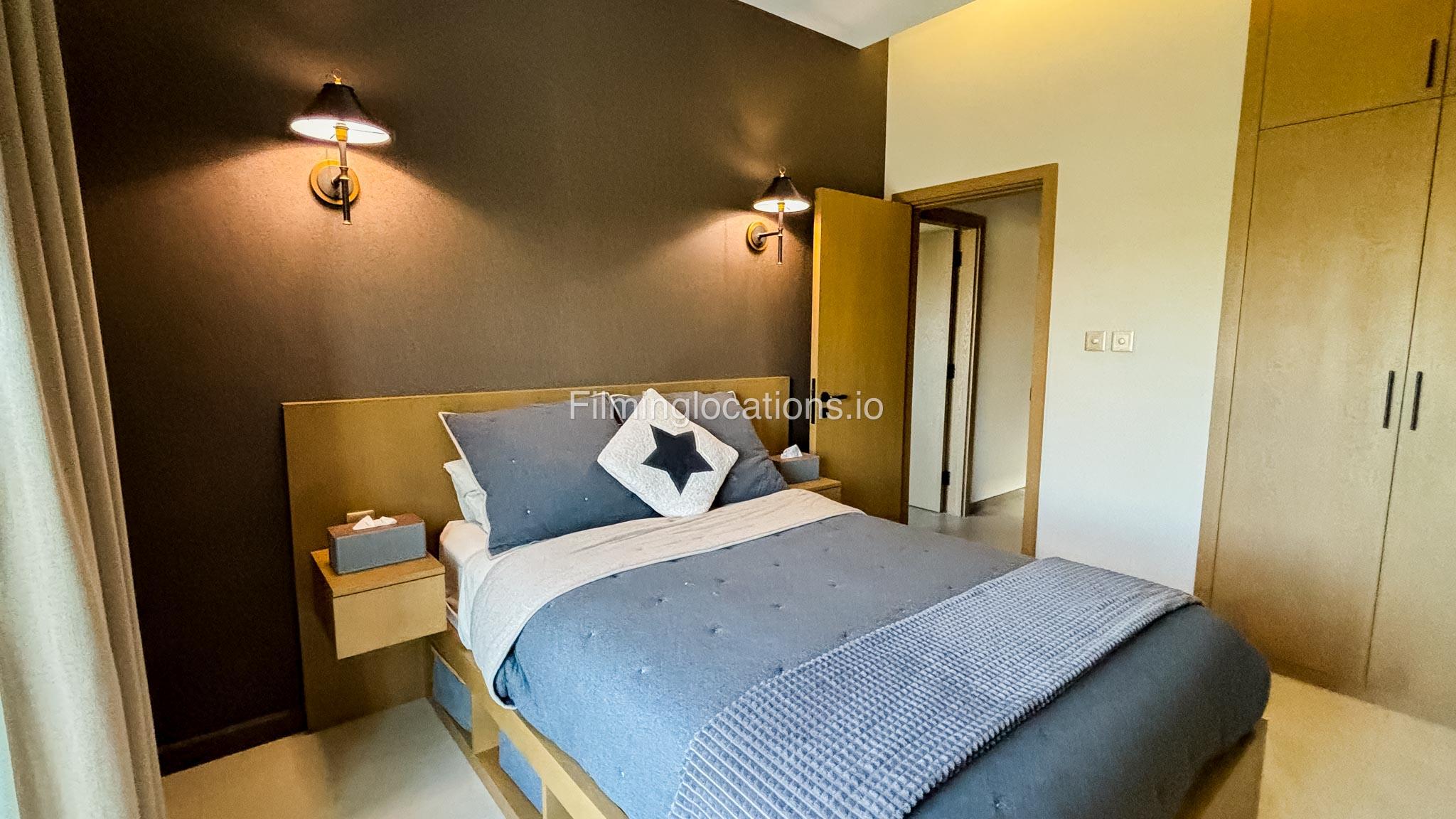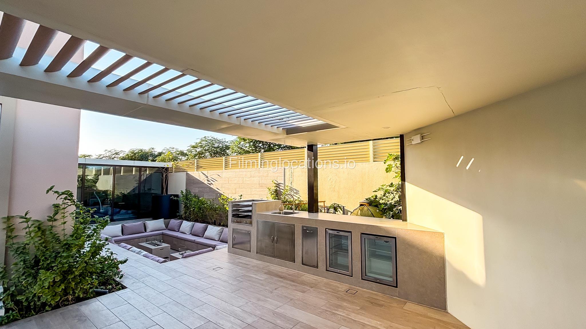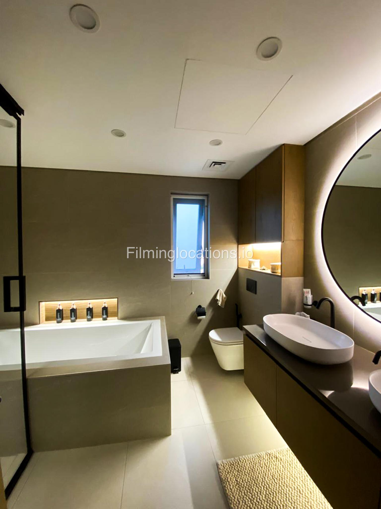 The upper floor houses 4 bedrooms, each enhanced with dimmable light features and elegant ceiling designs. Outdoor, the villa boasts a swimming pool, a sunken seating area with fire pits, and a gym surrounded by glass walls. This versatile space is perfect for filming and creative projects.