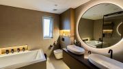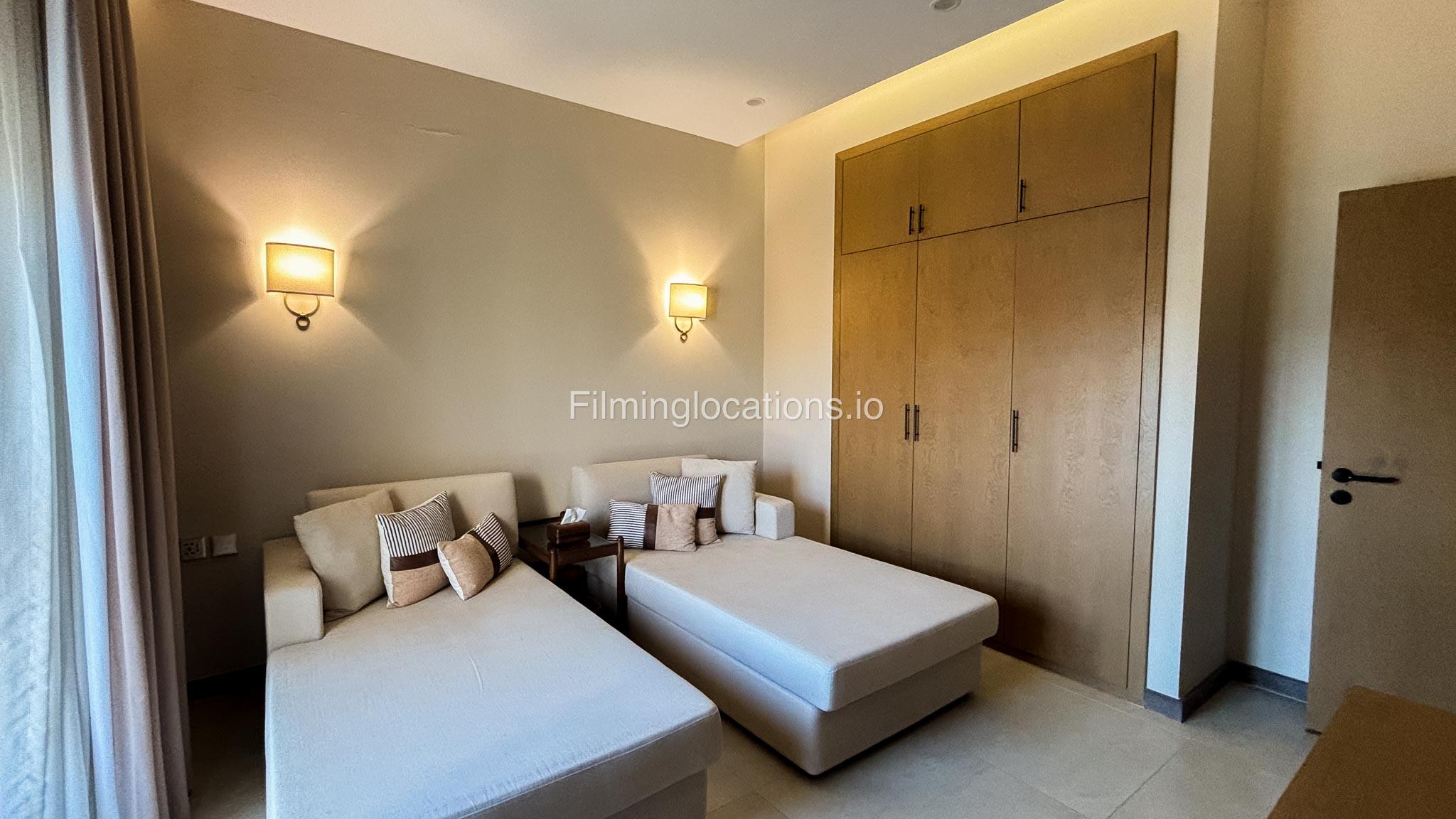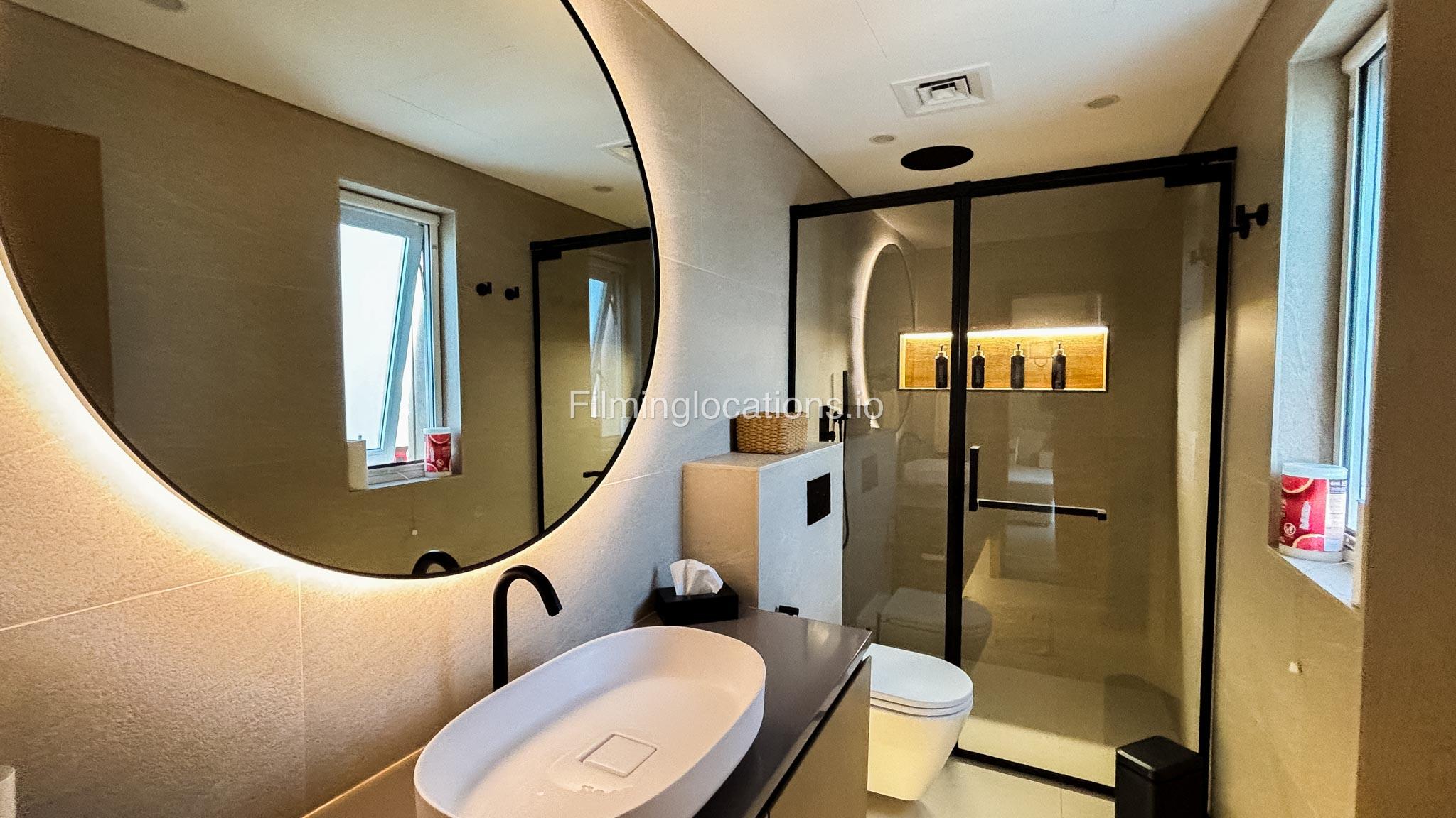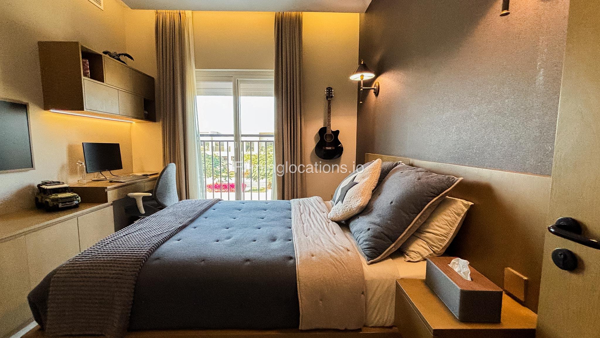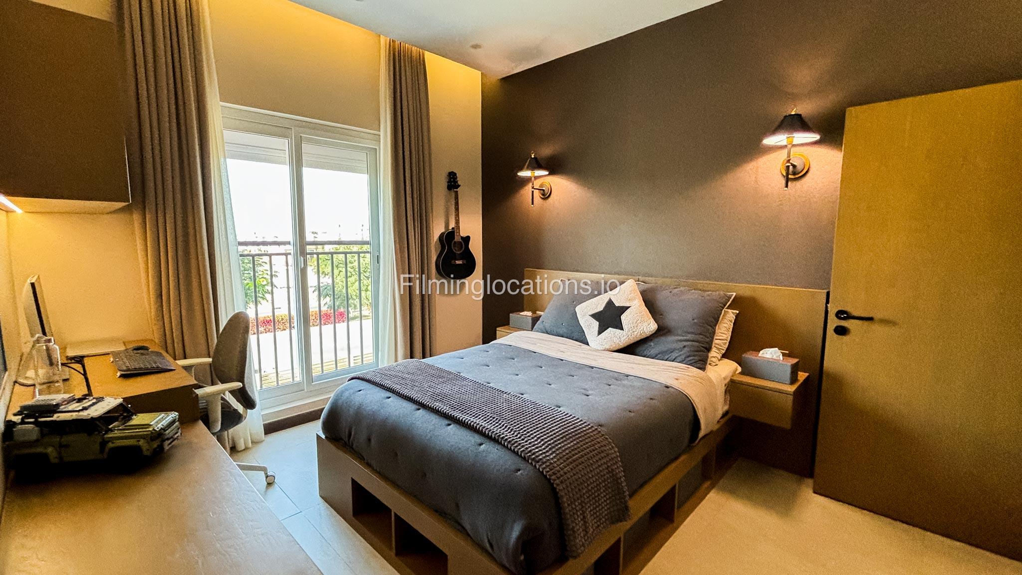The upper floor houses 4 bedrooms, each enhanced with dimmable light features and elegant ceiling designs. Outdoor, the villa boasts a swimming pool, a sunken seating area with fire pits, and a gym surrounded by glass walls. This versatile space is perfect for filming and creative projects.