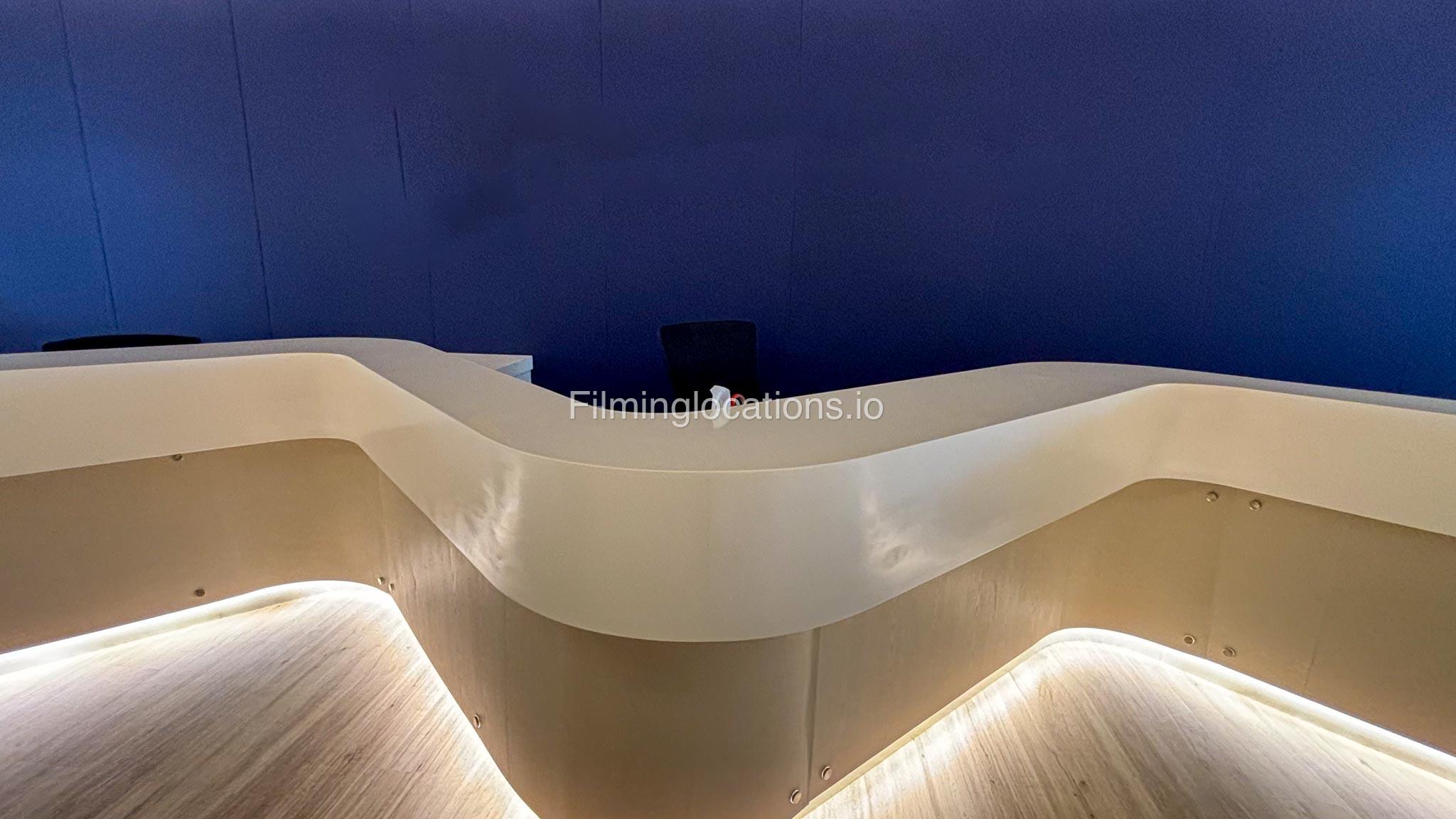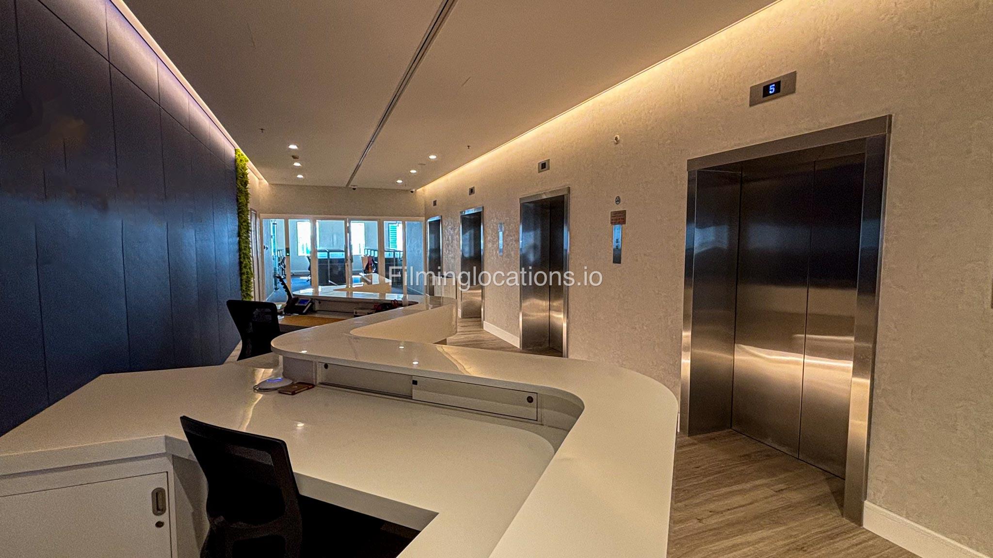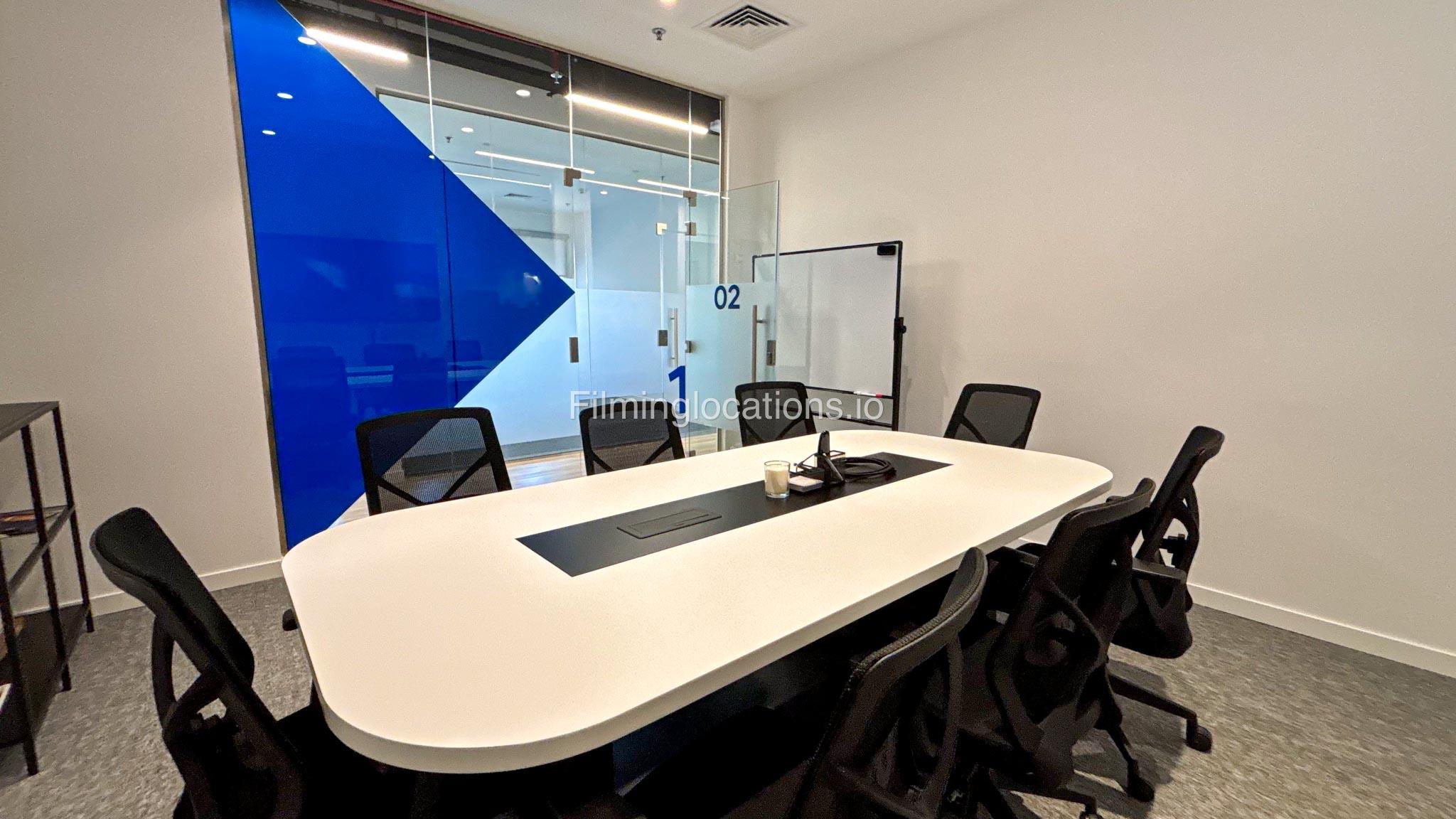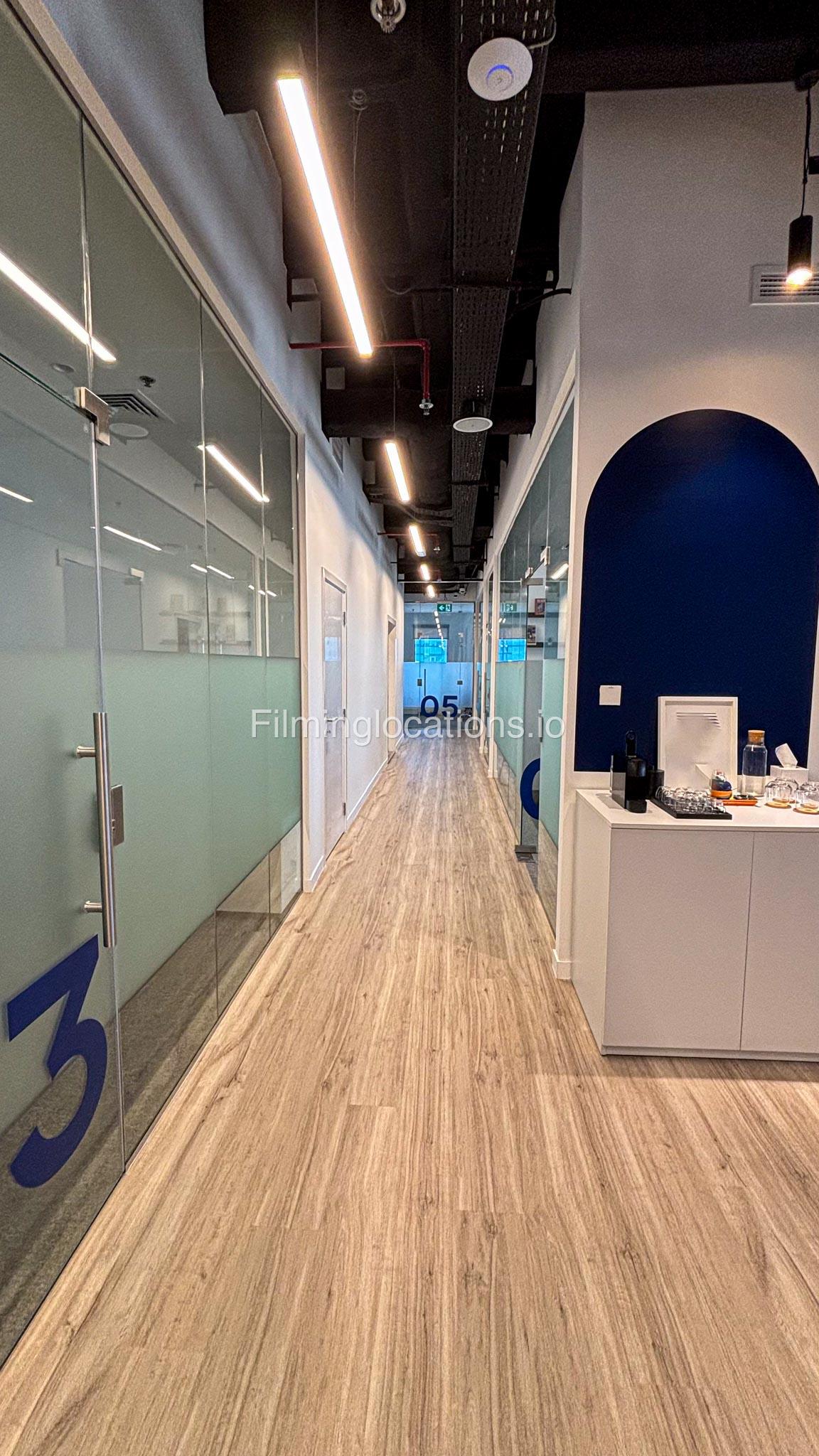 Our stylish co-working space offers a modern backdrop with a unique curved entrance and lush plant wall. Inside, the blue, grey, and white-themed workspace features plant-decorated tables, functional meeting rooms, an open-layout area, and a well-designed pantry. Additional highlights include an internal golf space, a skyline-view meeting room, and a flexible empty room. Perfect for commercials, interviews, and creative productions, this versatile location blends style and functionality for any shoot.