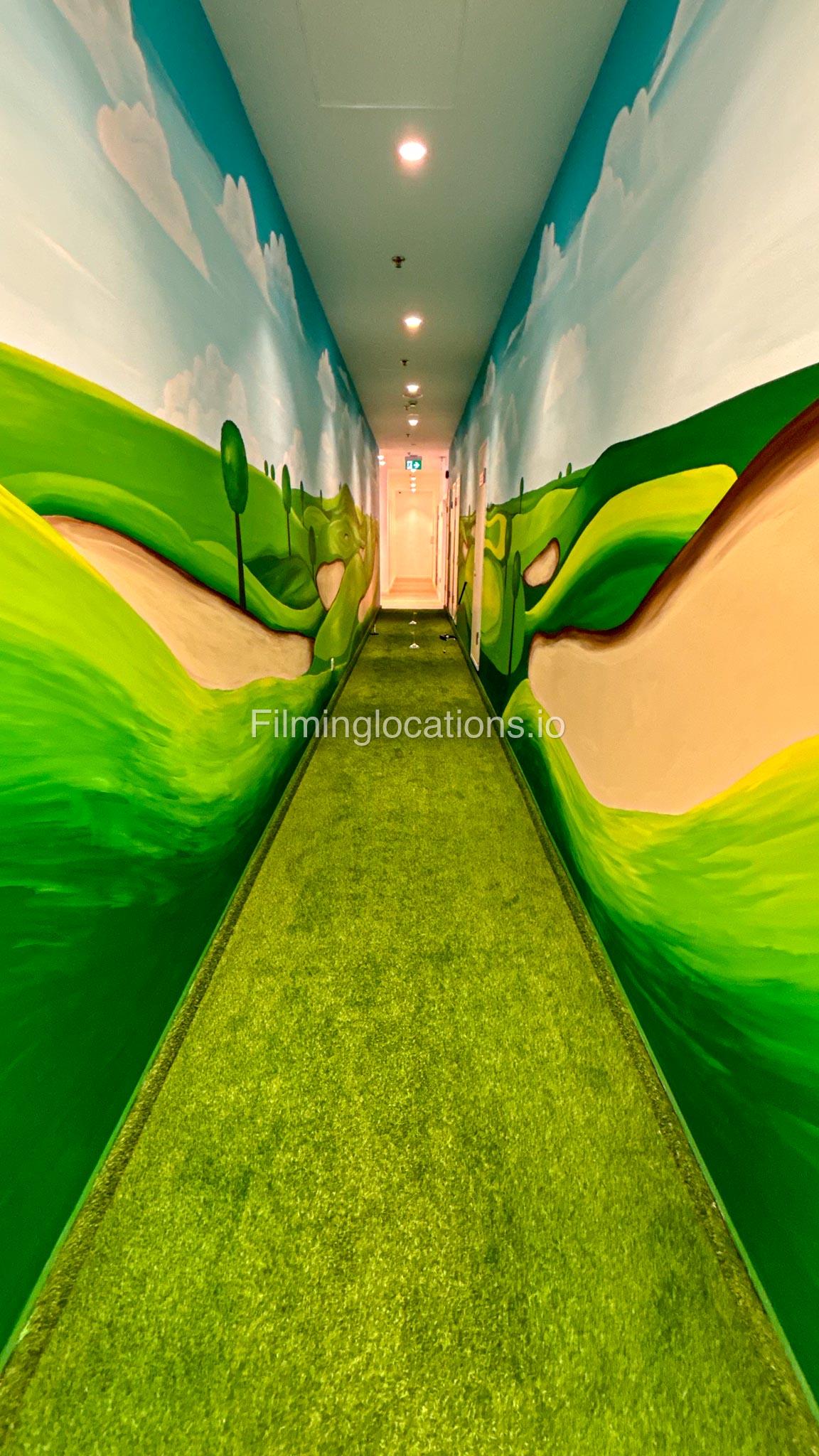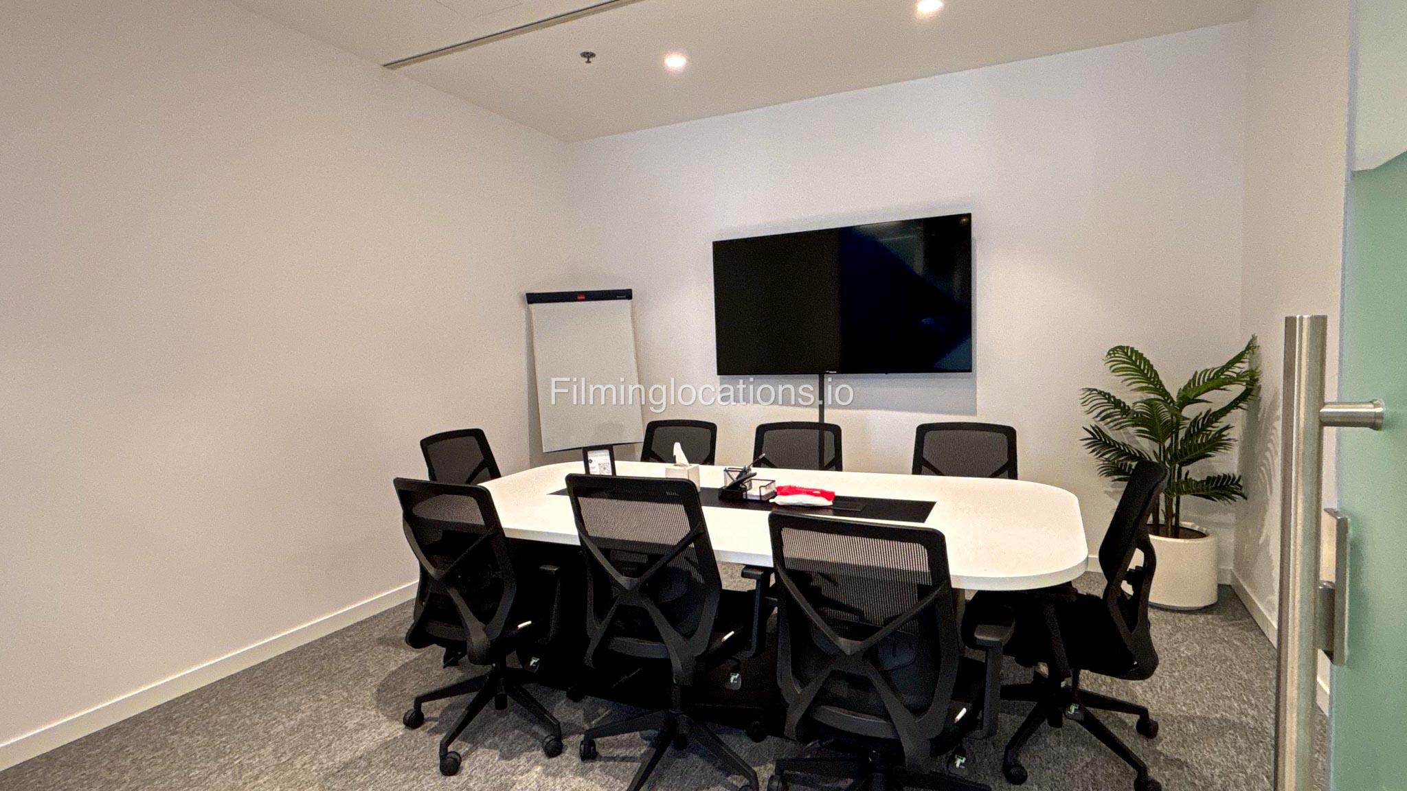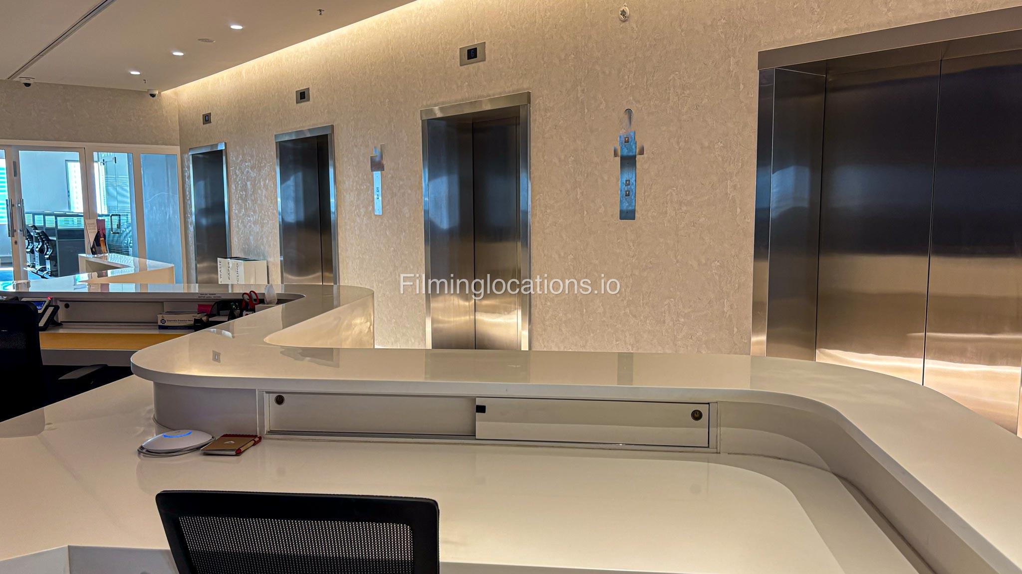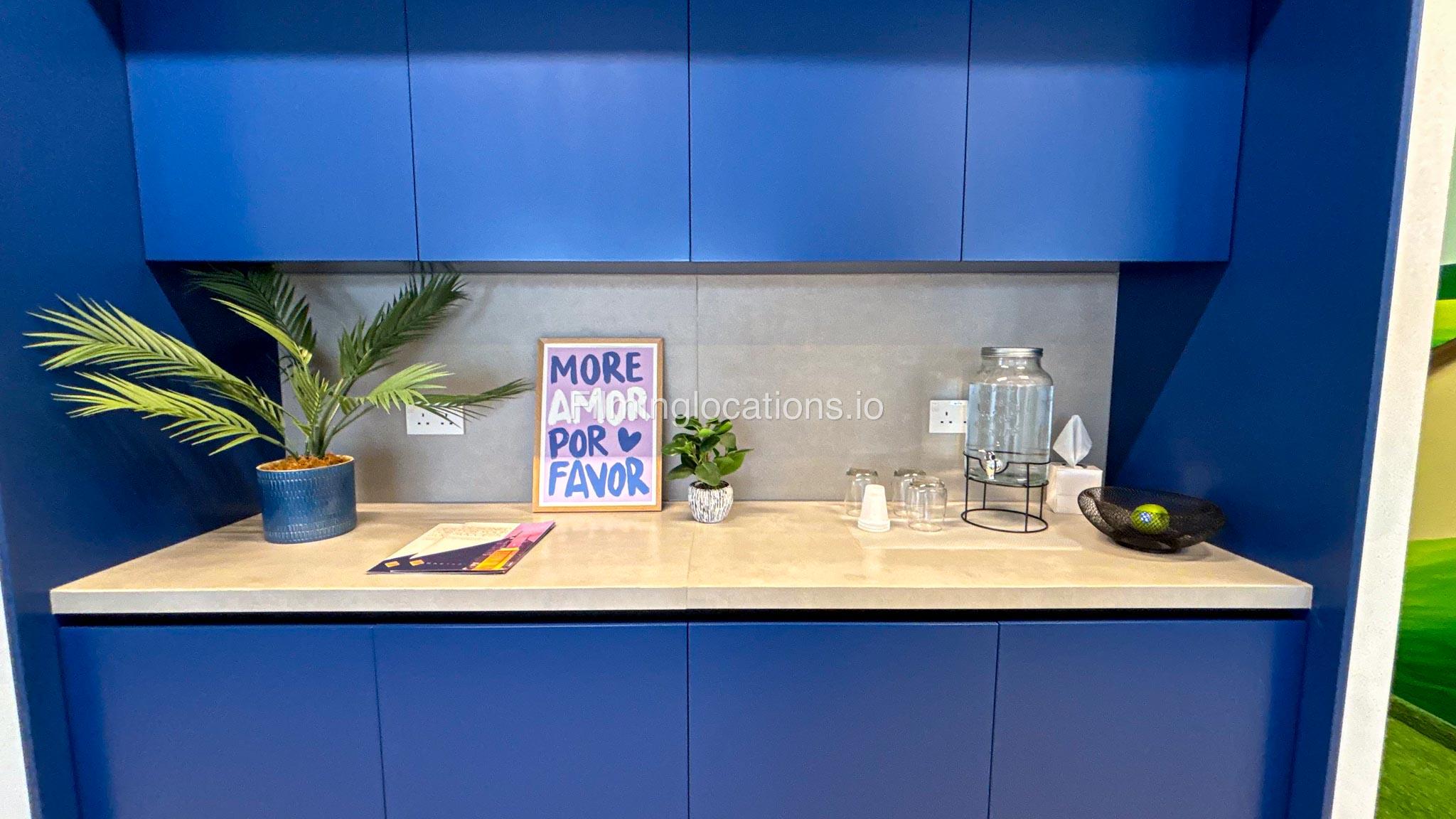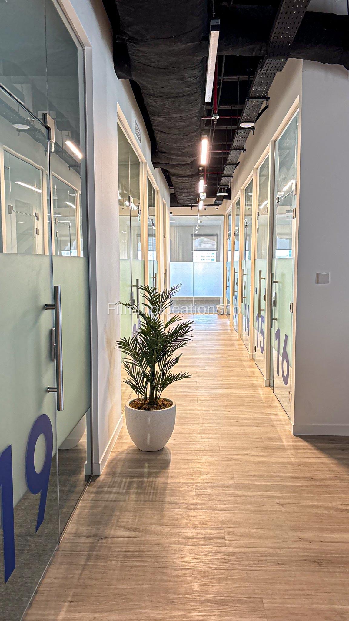 Our stylish co-working space offers a modern backdrop with a unique curved entrance and lush plant wall. Inside, the blue, grey, and white-themed workspace features plant-decorated tables, functional meeting rooms, an open-layout area, and a well-designed pantry. Additional highlights include an internal golf space, a skyline-view meeting room, and a flexible empty room. Perfect for commercials, interviews, and creative productions, this versatile location blends style and functionality for any shoot.