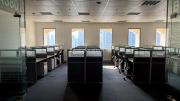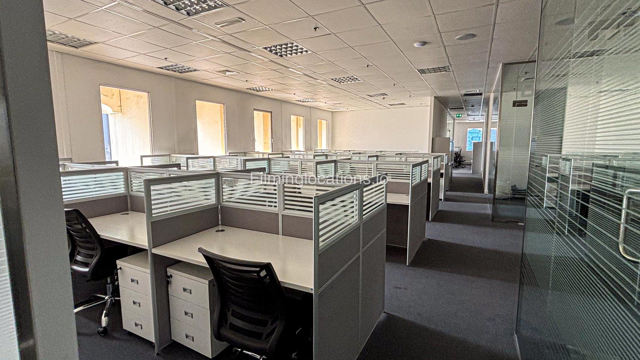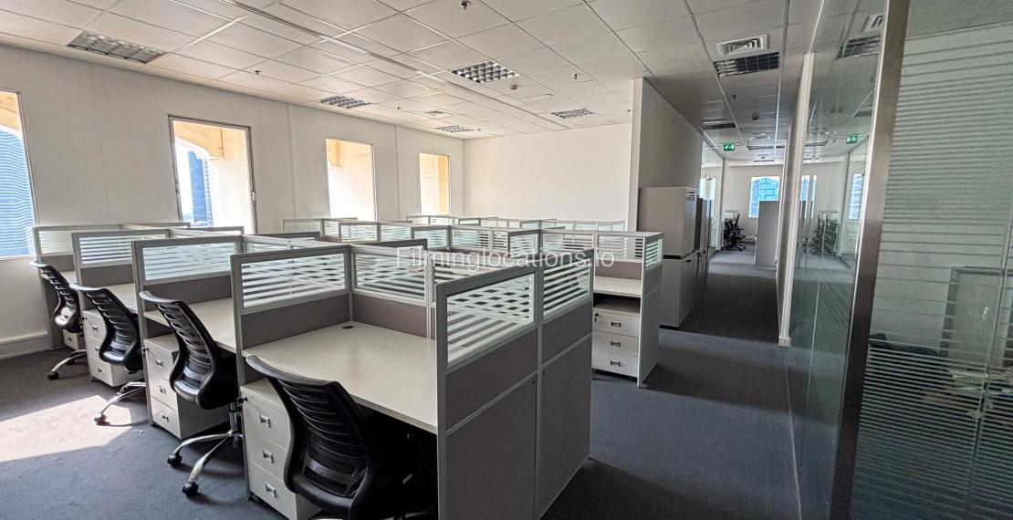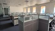 Our office features a sophisticated open-plan design with a skyline view, incorporating a variety of layouts such as cellular spaces, low partitions, and cubicles.