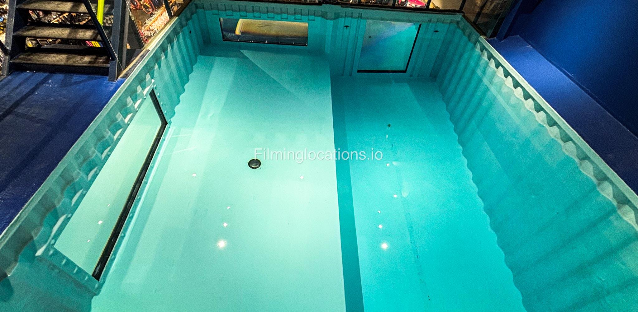Our underwater tank in Al Quoz is designed for professional underwater filming, with a depth of up to 3 meters. This controlled environment ensures clear visibility and a dedicated space for capturing high-quality underwater shots, making it ideal for films, photography, and creative productions.