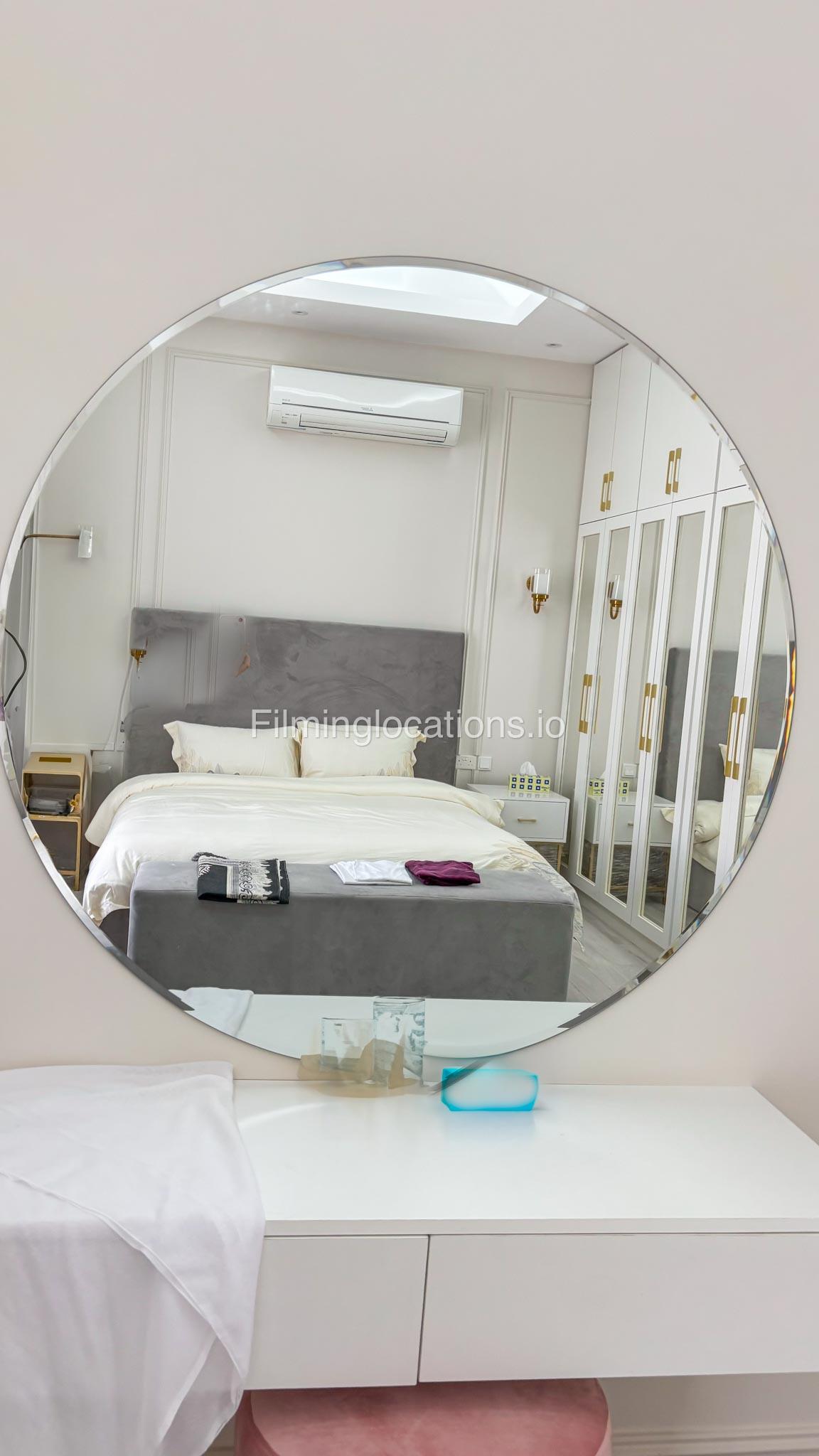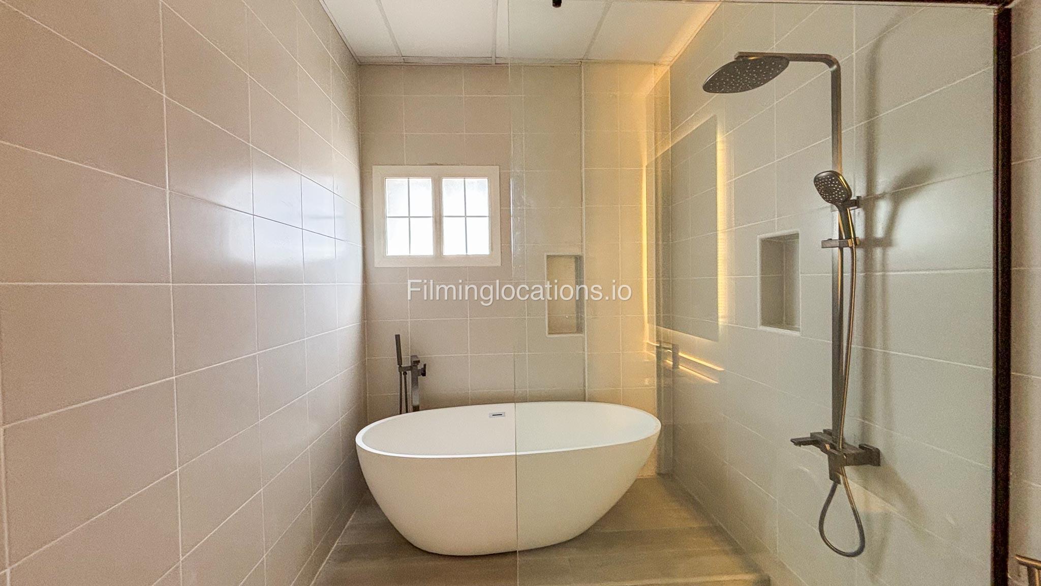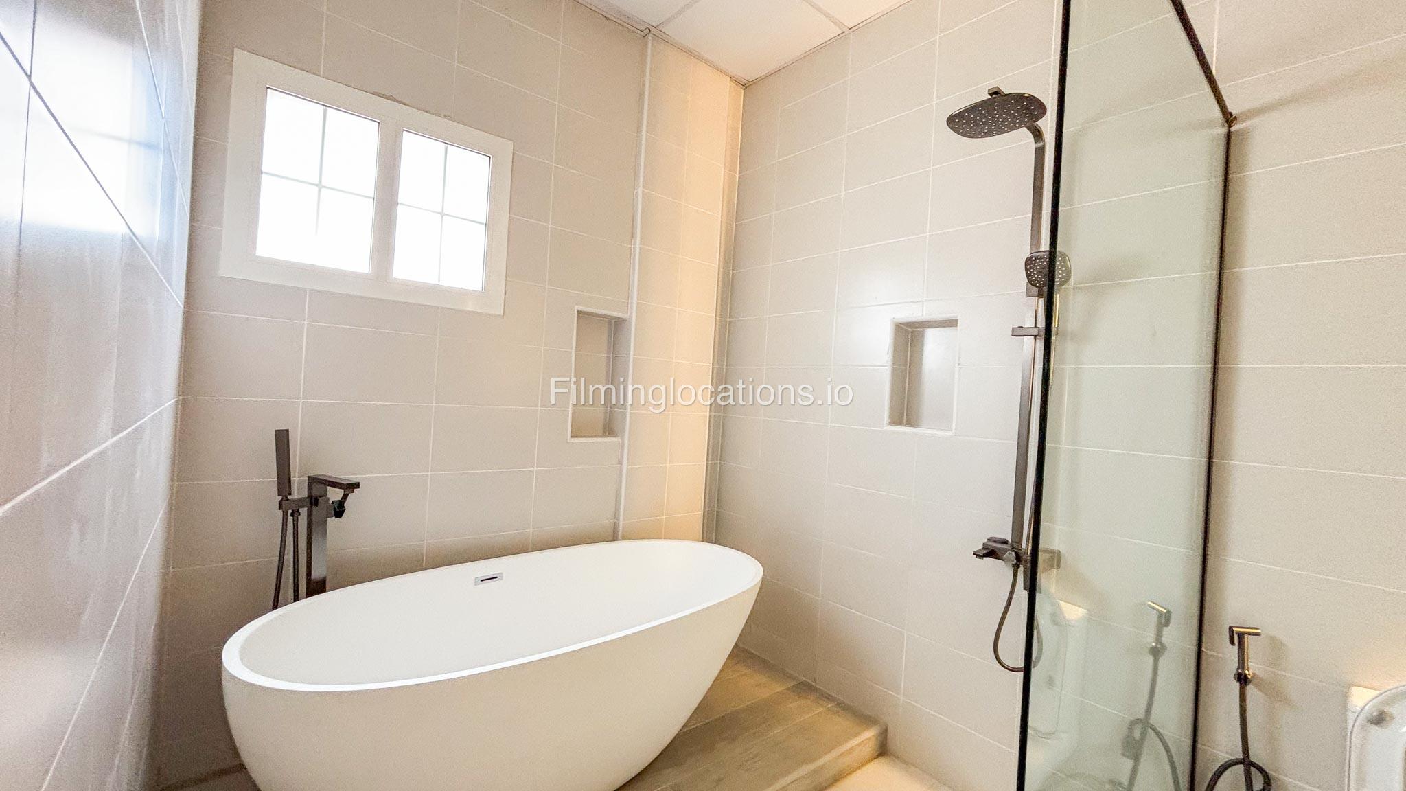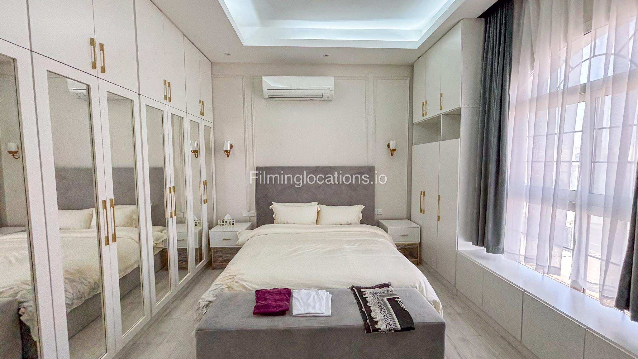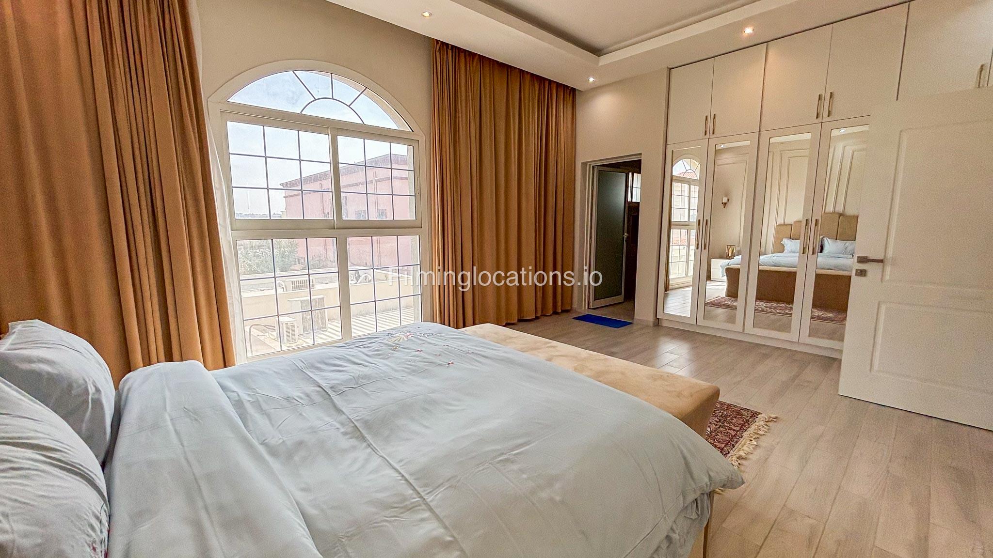 Our villa has 4 bedrooms—2 of them are empty on the 1st floor, offering flexibility for set design. This floor also features a small white open kitchen. The house is designed with French walls, adding a distinctive and elegant aesthetic.