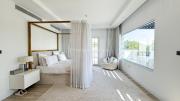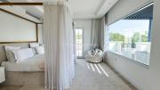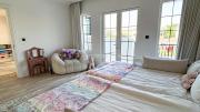On the first floor, there are 4 master bedrooms. The main bedroom has a walk-in closet, a luxurious bathtub, and a large terrace with a beautiful view.