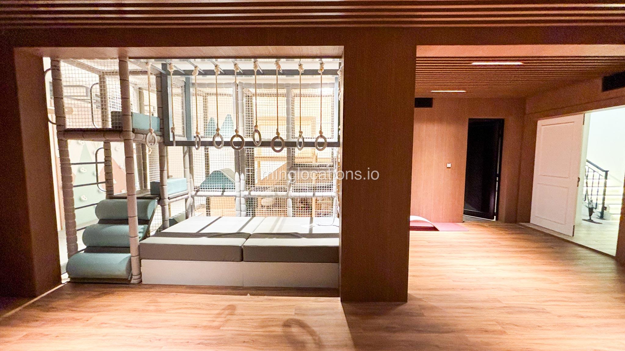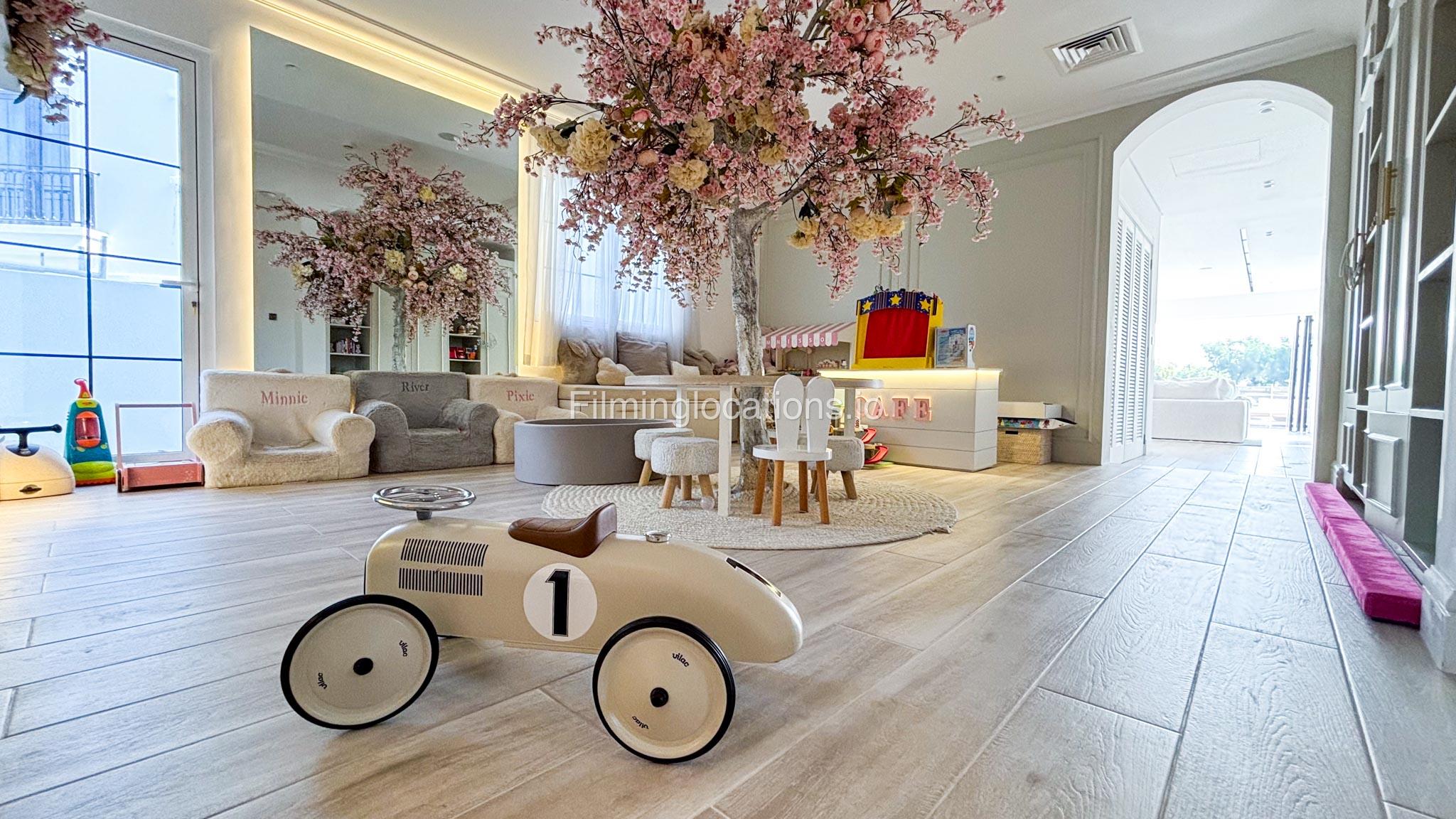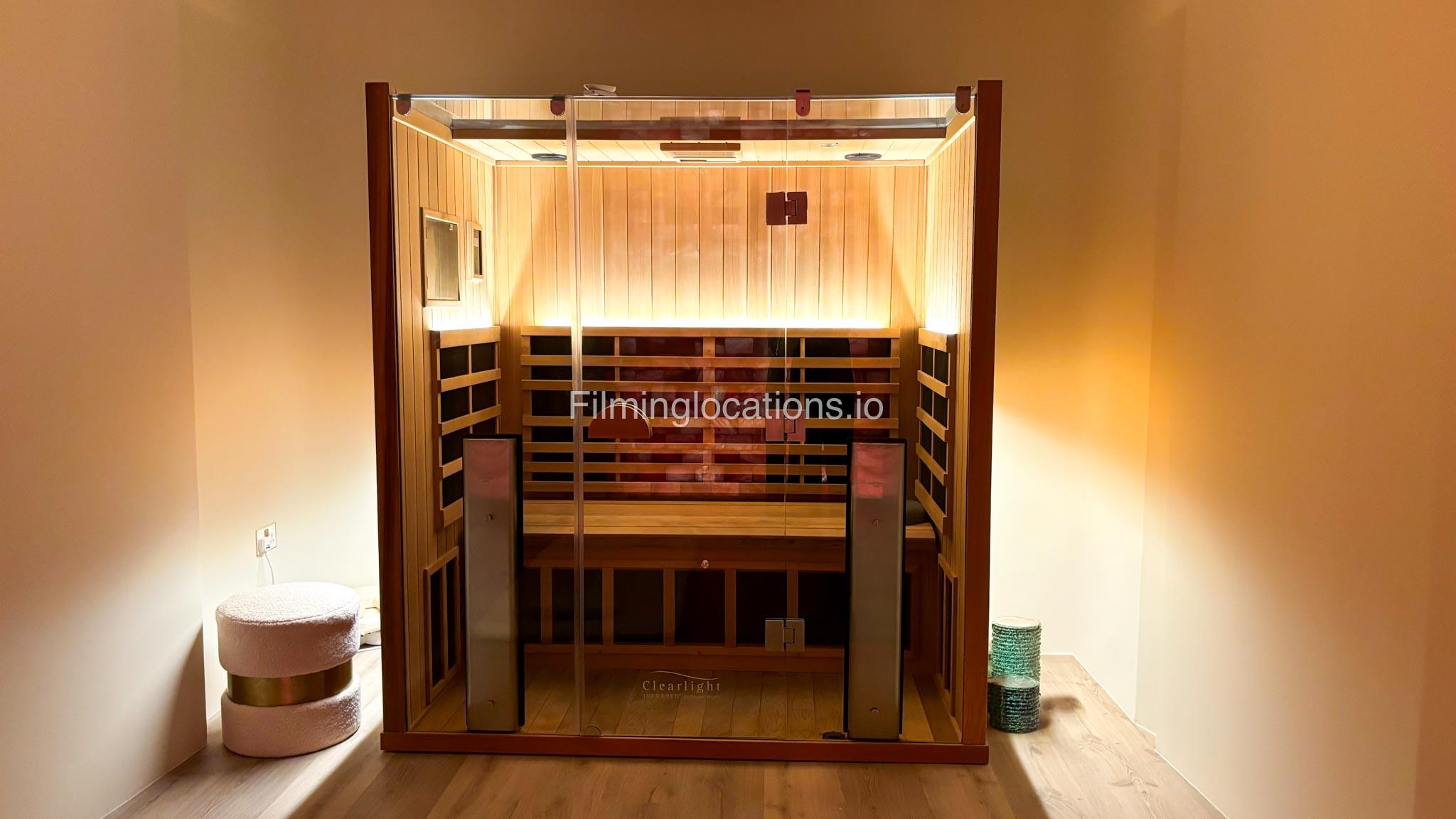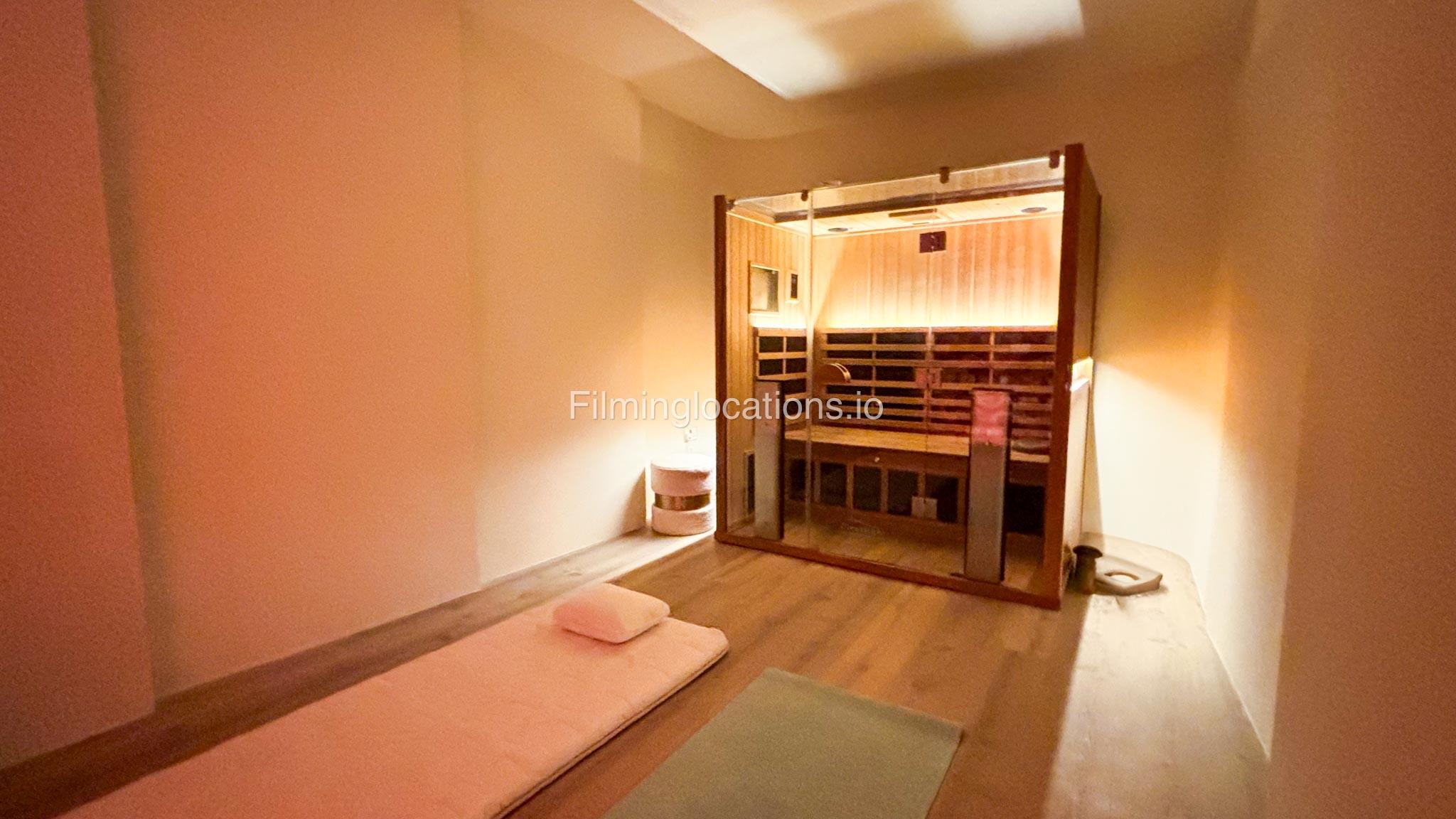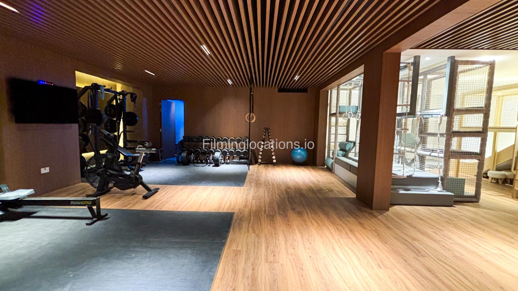 The basement includes a private gym, a cinema room, a kids’ soft play area, and a sauna, providing a variety of unique backdrops.