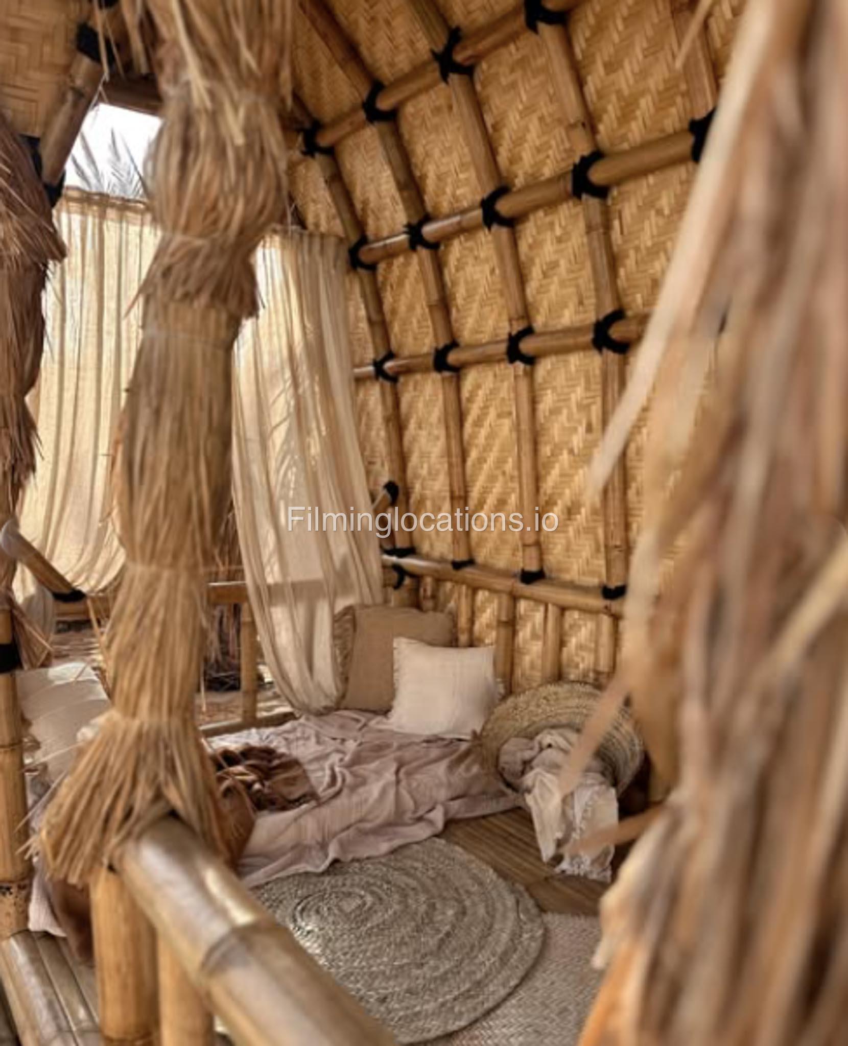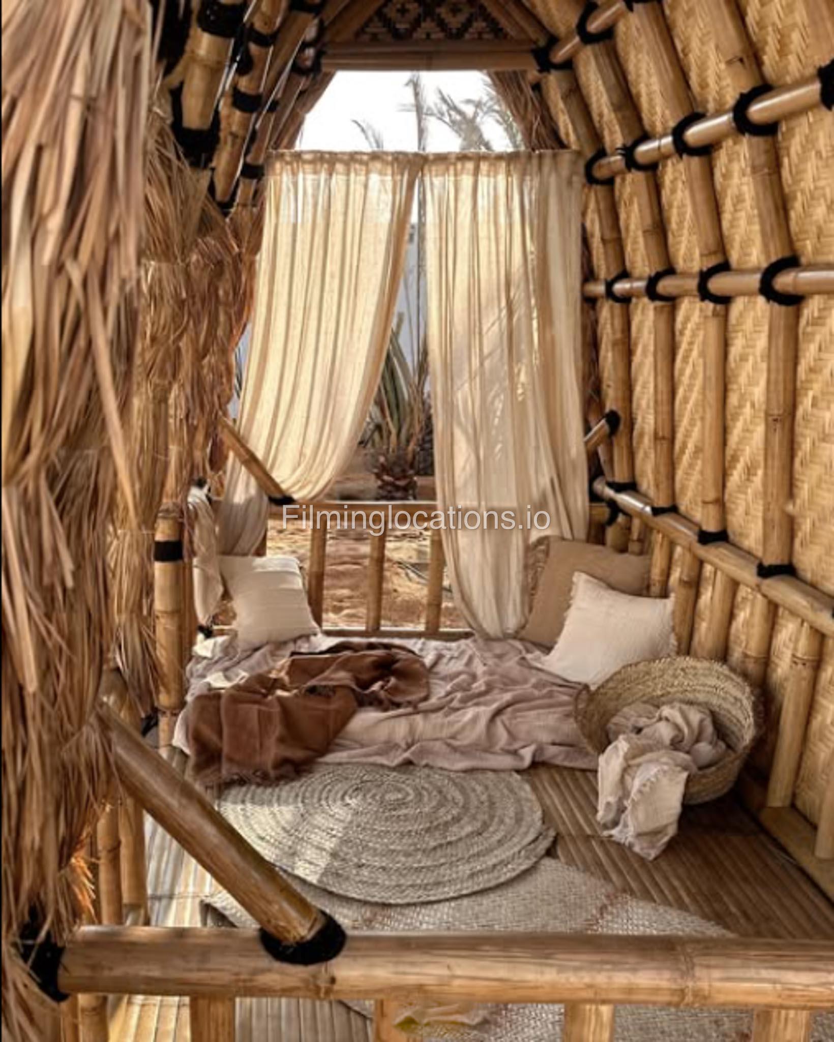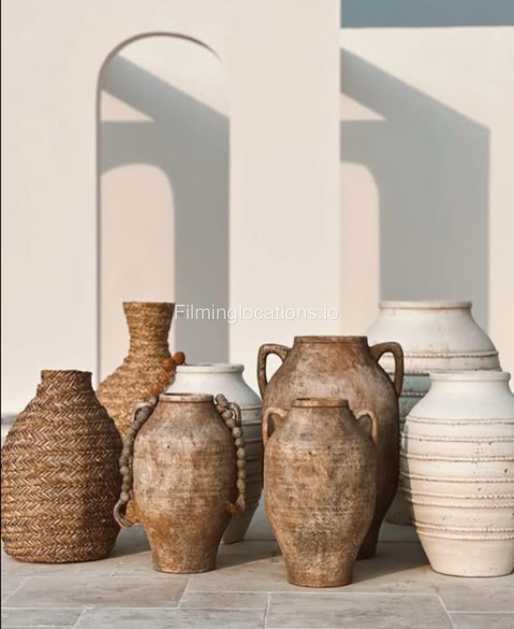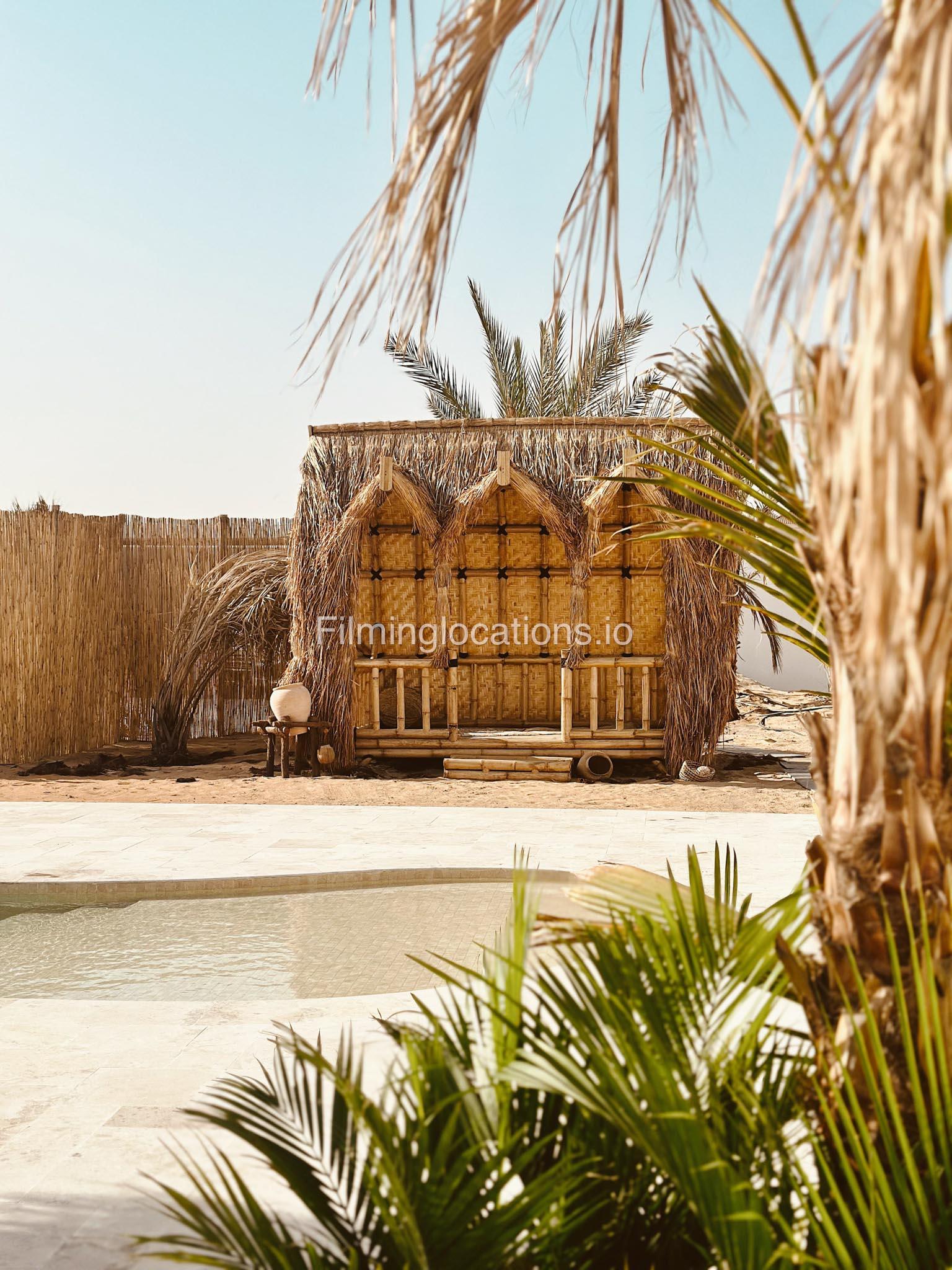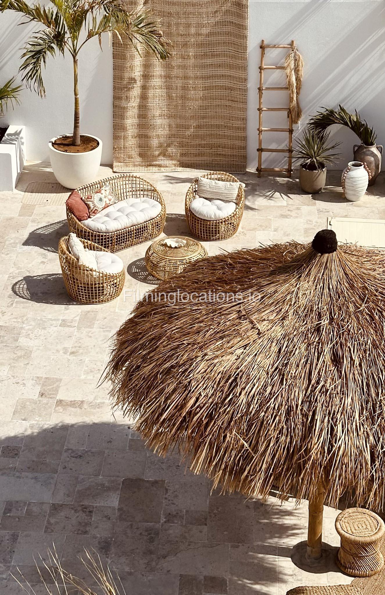 Our space features stunning white arched architecture, a vibrant turquoise pool, and Bohemian-style sun-beds, Bali-Inspired Lounge creating a dreamy outdoor setting. Multiple seating areas with colorful cushions and lush potted plants enhance the aesthetic, blending modern minimalism with a tropical touch. It also includes 1 room with a makeup table, a grand mirror, a private toilet with a sink, and 2 additional sinks outside, ensuring convenience for productions. This visually striking space is designed for seamless filming and breathtaking shots.