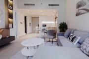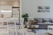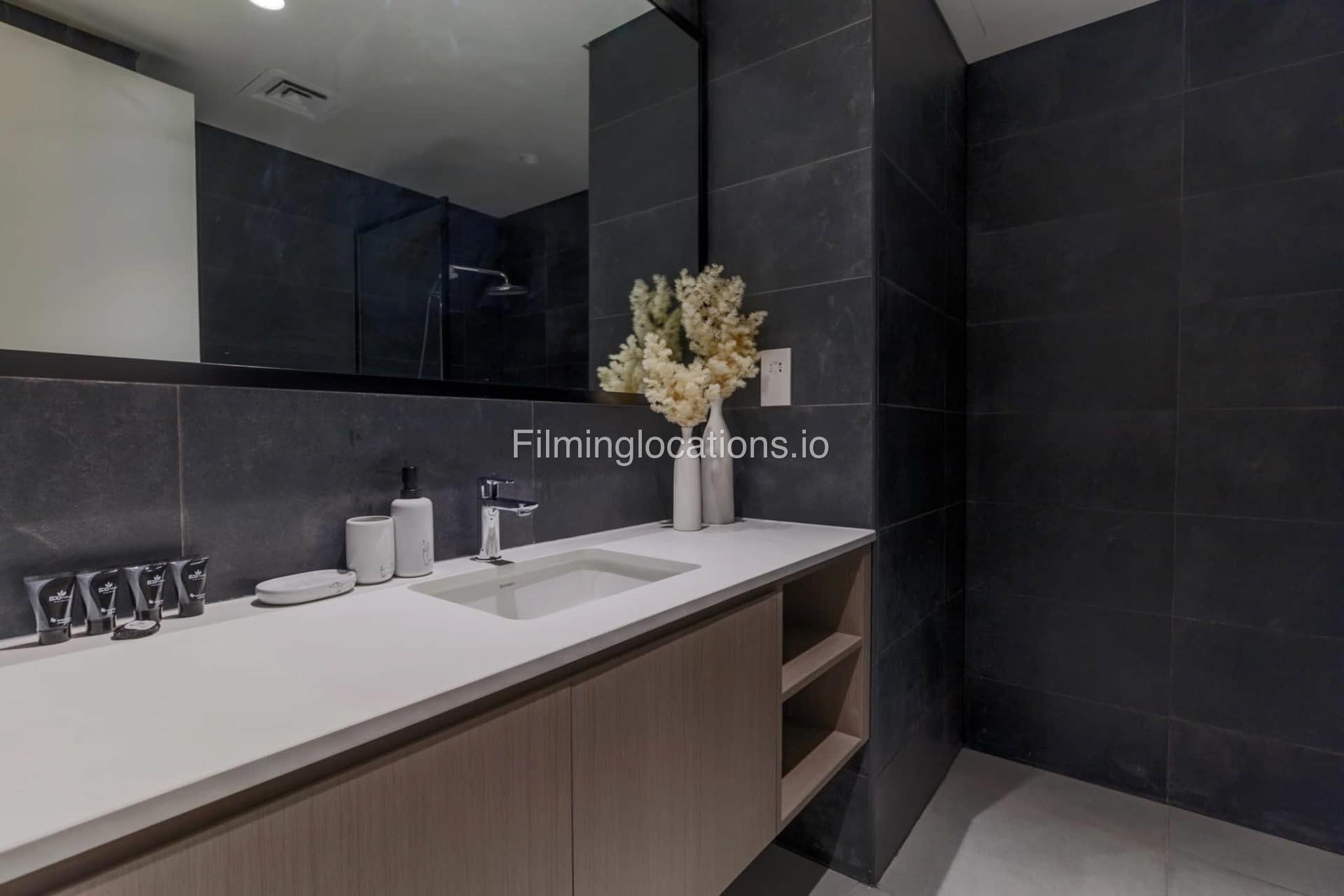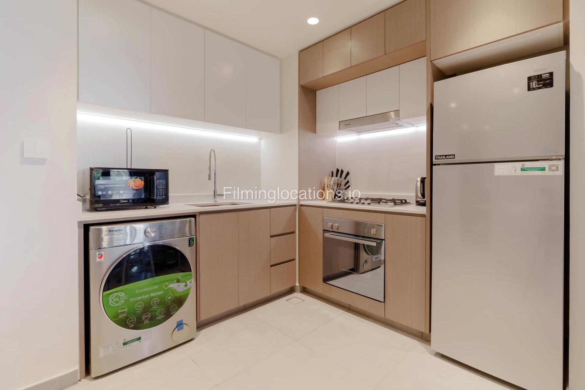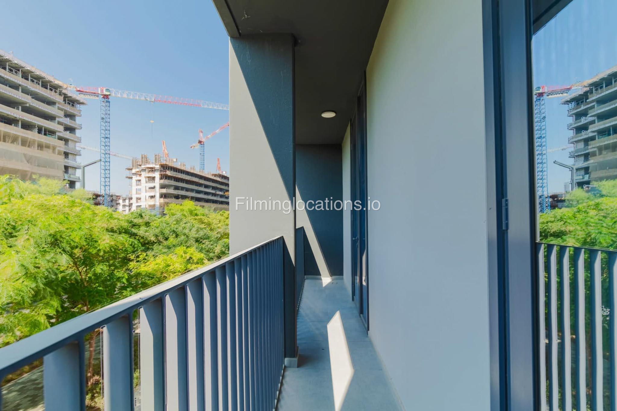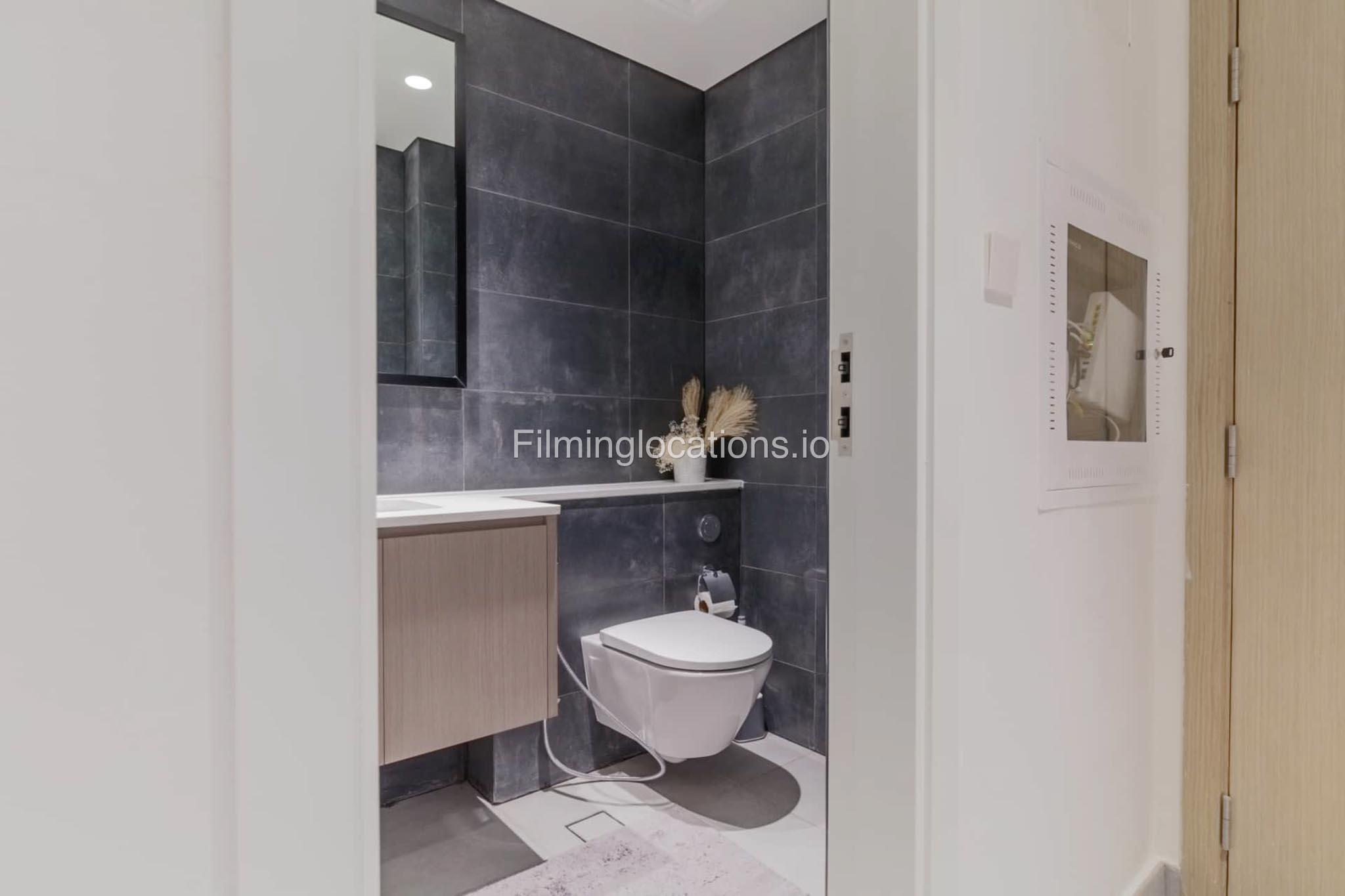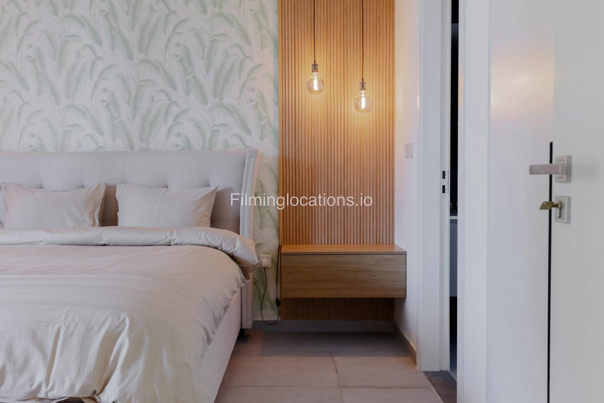 Our stunning luxury apartment offers a sleek living room with a stylish TV setup, elegant wooden interiors, and contemporary décor. The chic seating area seamlessly connects to an attached balcony, providing a bright and inviting atmosphere. A modern, fully equipped open kitchen complements the space. The apartment features a beautifully designed bedroom, 2 sophisticated bathrooms, and an additional private balcony, making it an ideal setting for filming with a touch of elegance and modern charm.