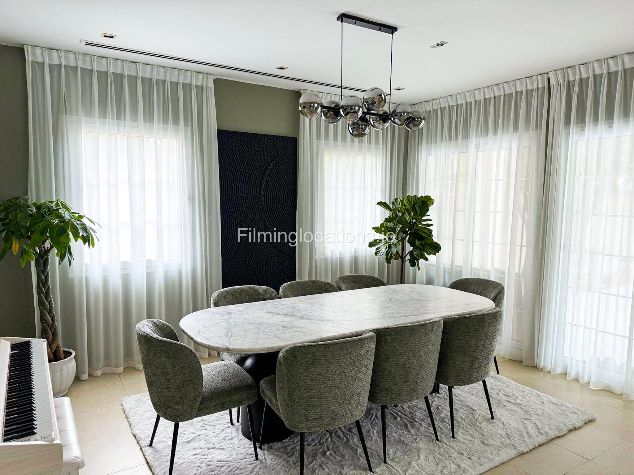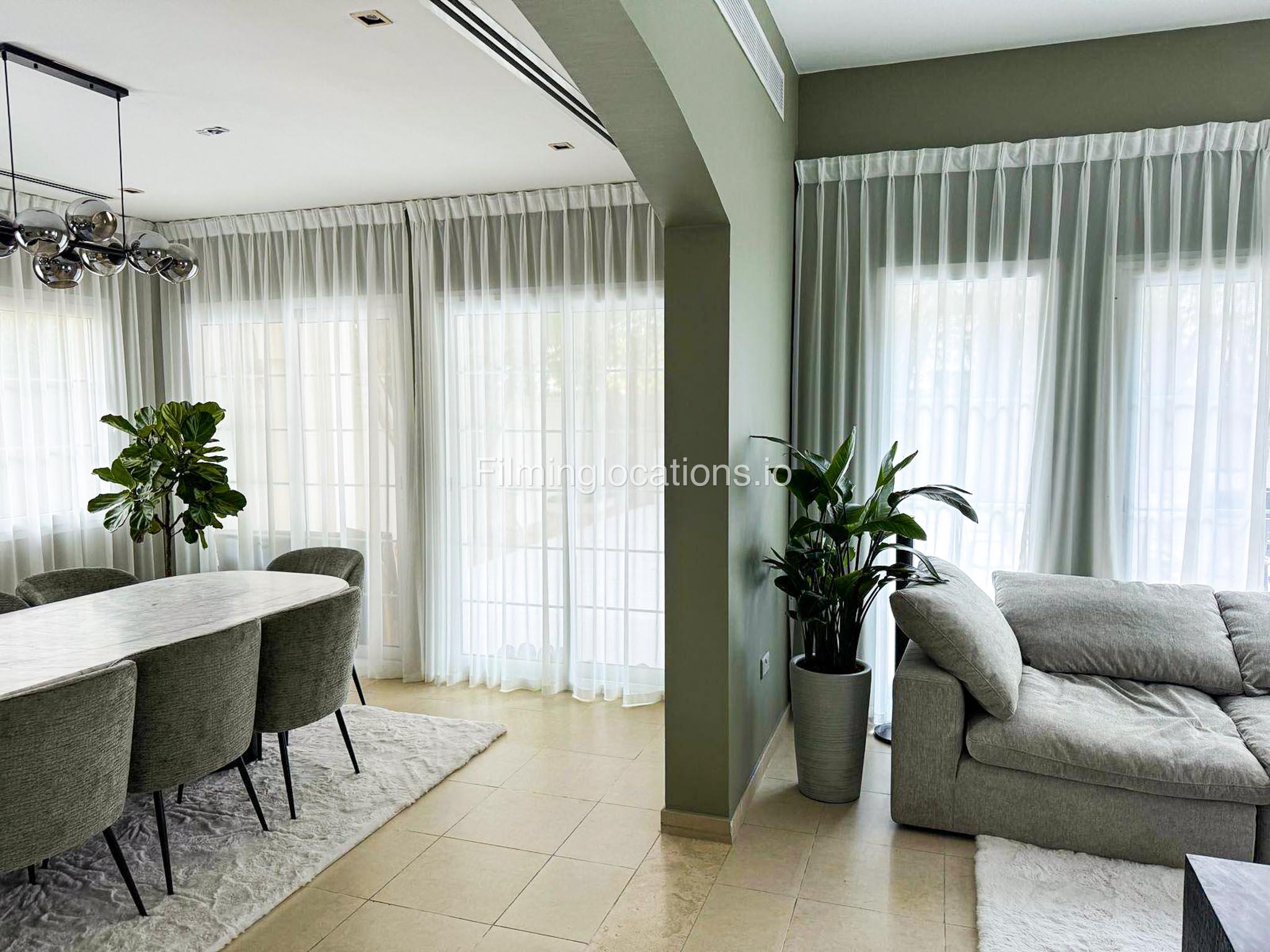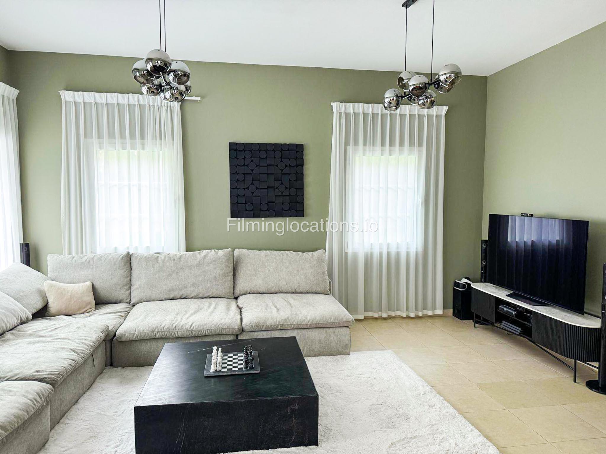 The villa is situated in a quiet, private area, minimizing external noise and ensuring a controlled shooting environment.