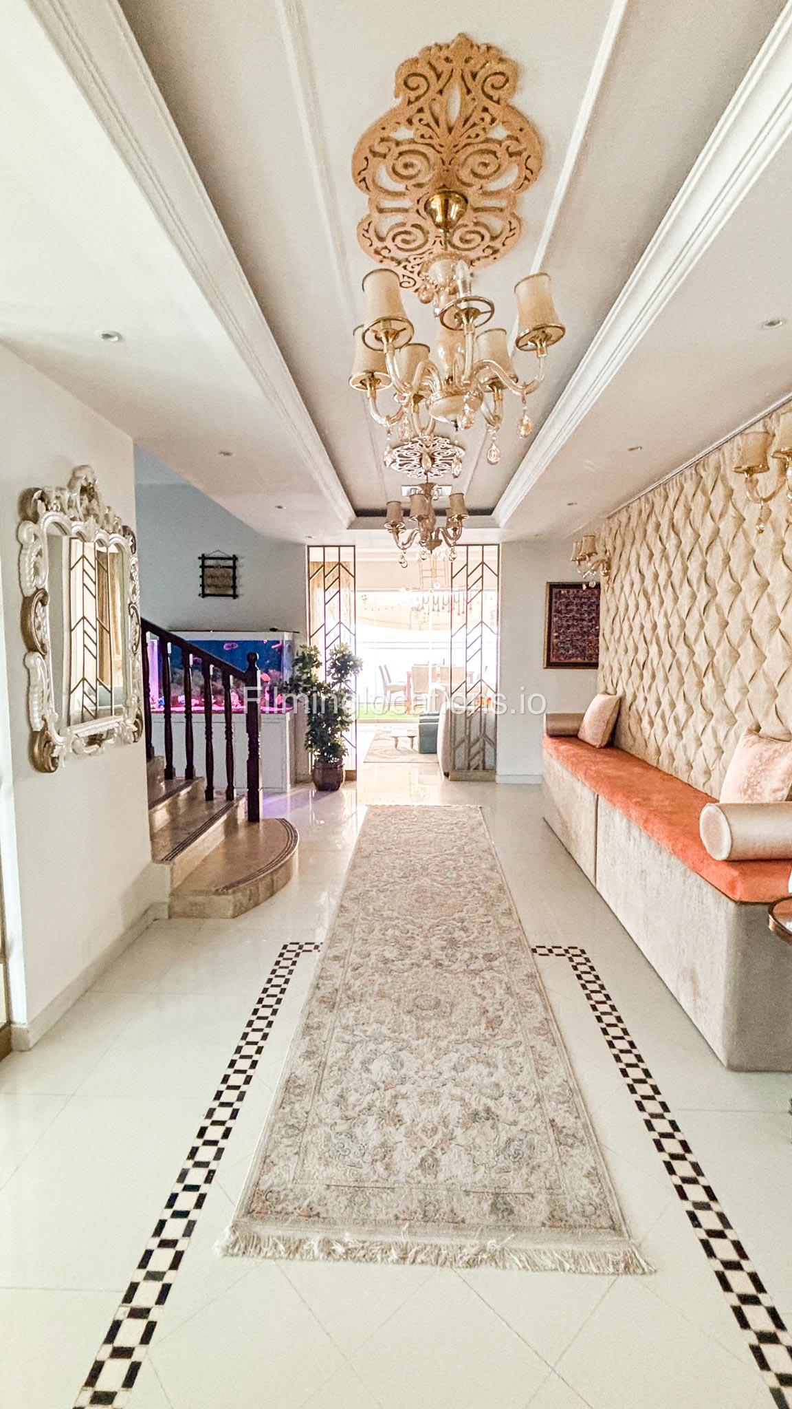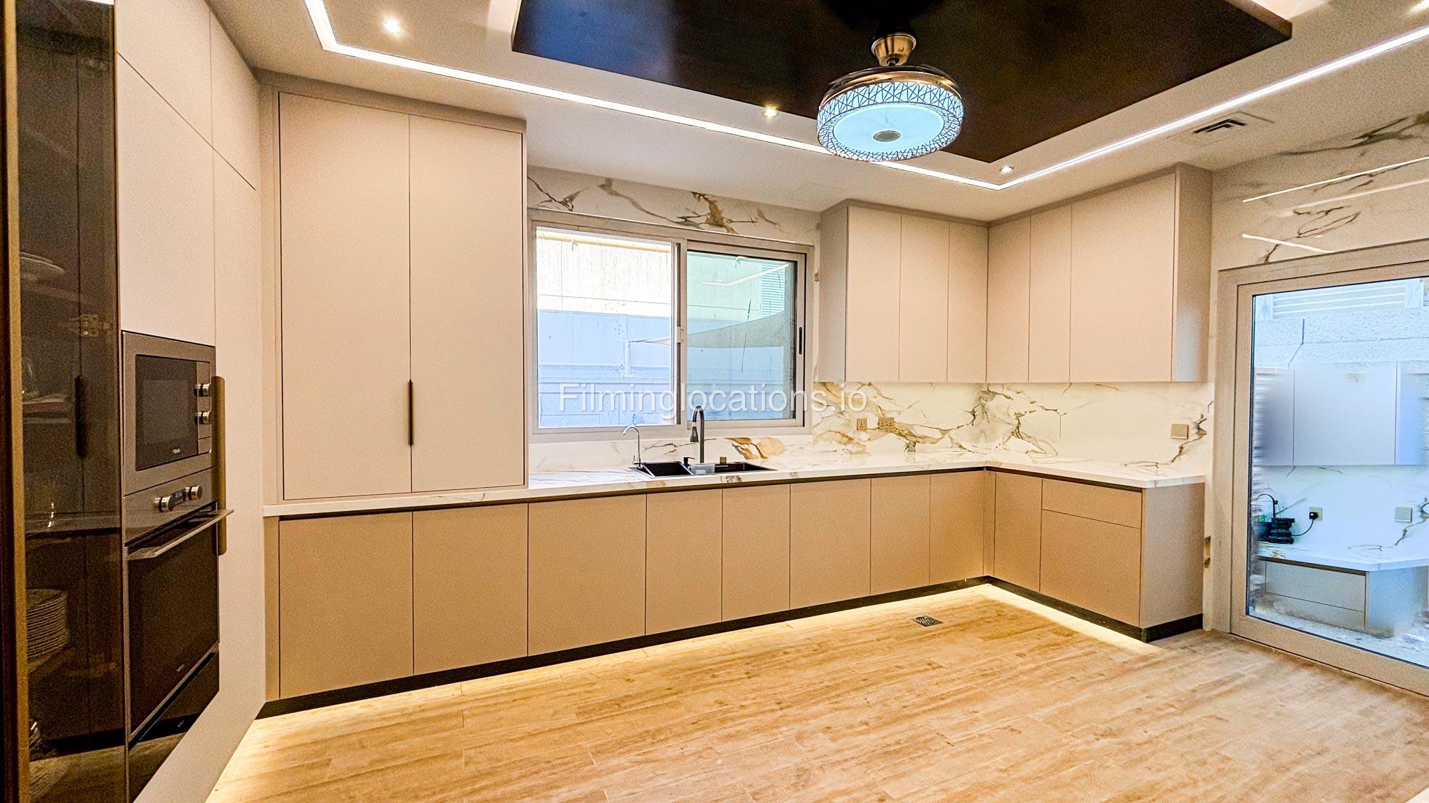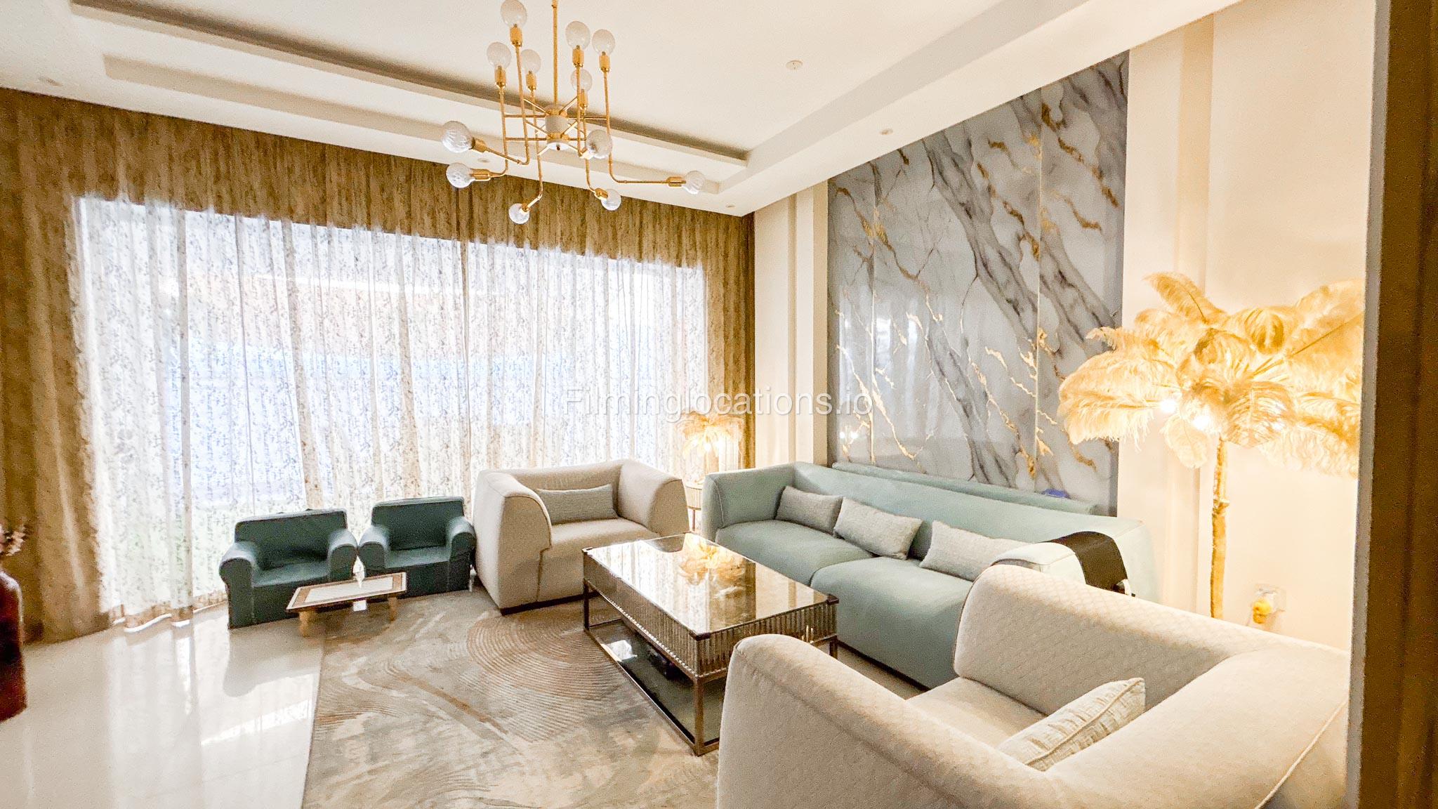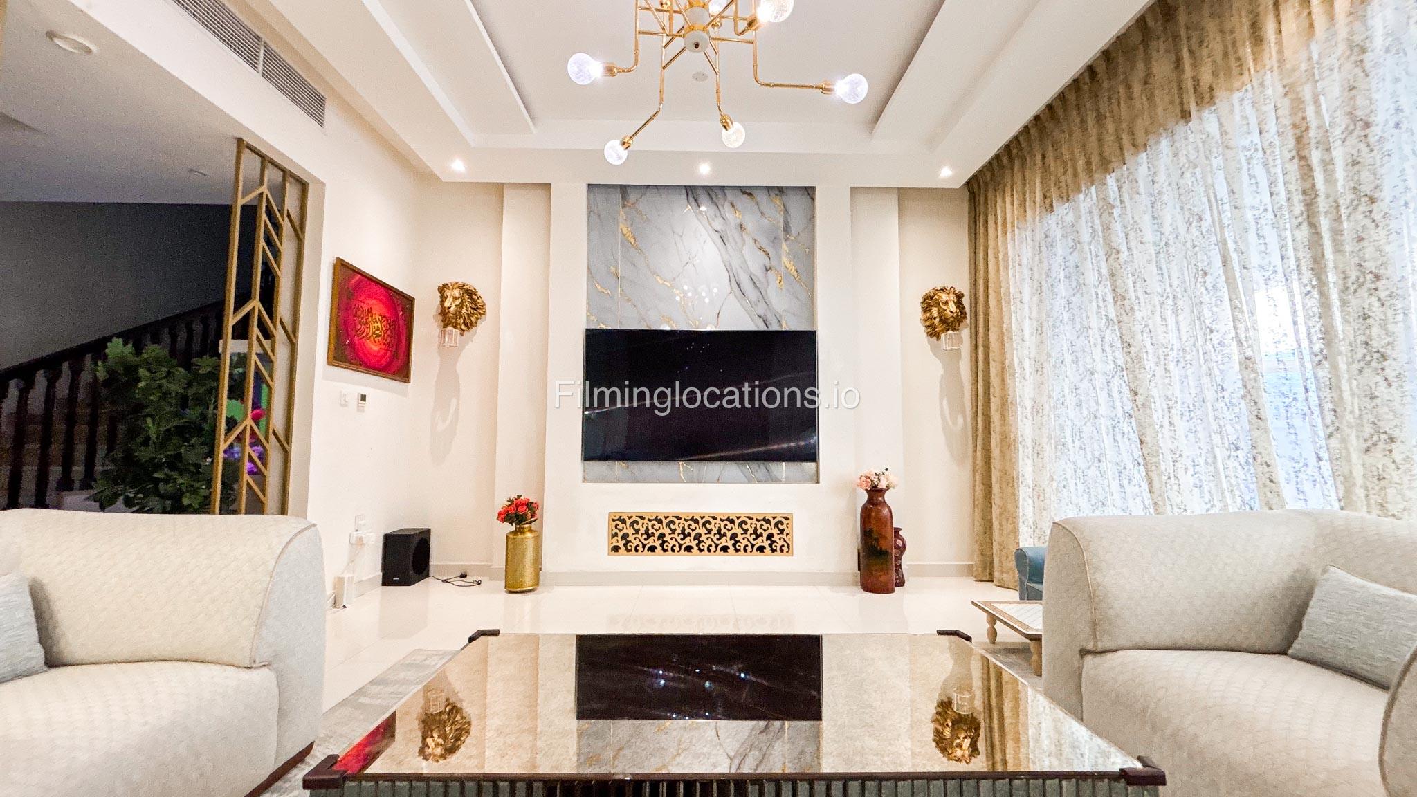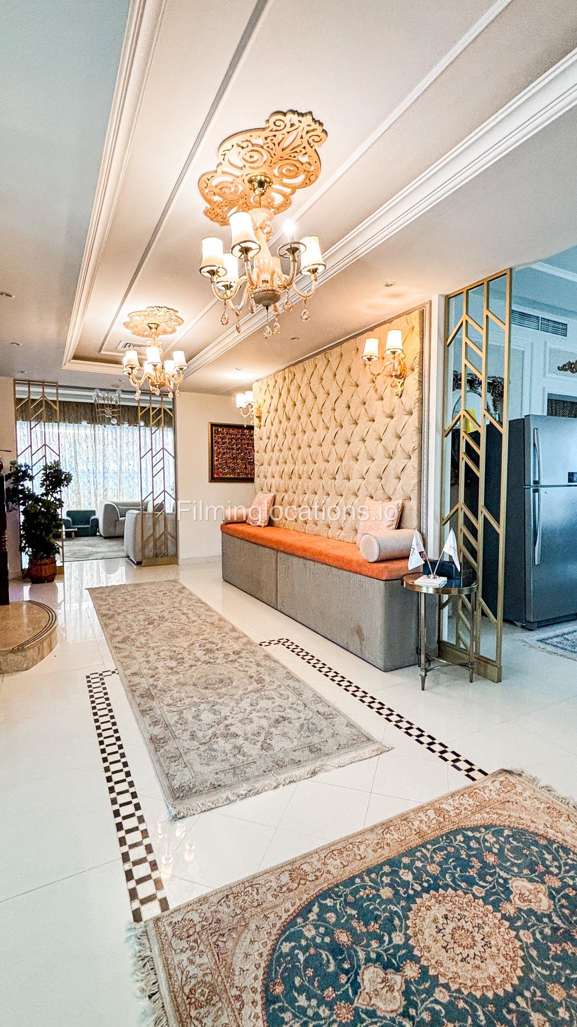 Our villa boasts a charming exterior with a white fence, a beautiful garden, a cozy seating area, and a small garage. Inside, the villa features 2 stunning living rooms with lavish royal interiors. The main living room is bright with large windows, elegant sofa seating, modern chandeliers, and sophisticated décor. The second living room offers a cozy yet stylish setup with a modern sofa facing the TV. The corridors are tastefully decorated with contemporary accents and include a small seating area. 1 bedroom with large windows is also available for filming. The villa also includes a closed, modern, fully equipped kitchen. The backyard has a shaded swimming pool area completing with a cozy table and chair seating for a refined outdoor setting. This villa offers a unique elegance, making it an ideal location for filming.