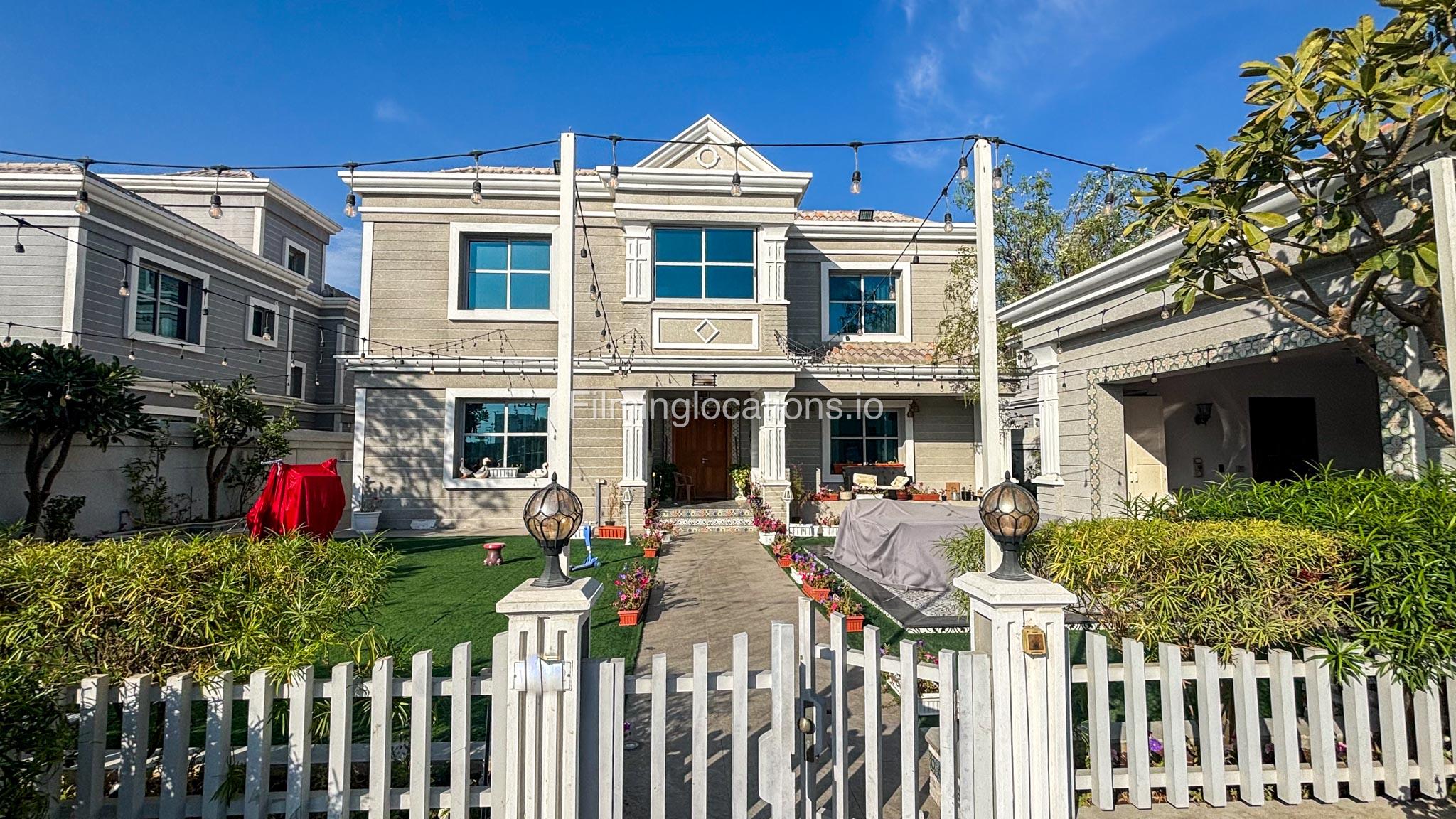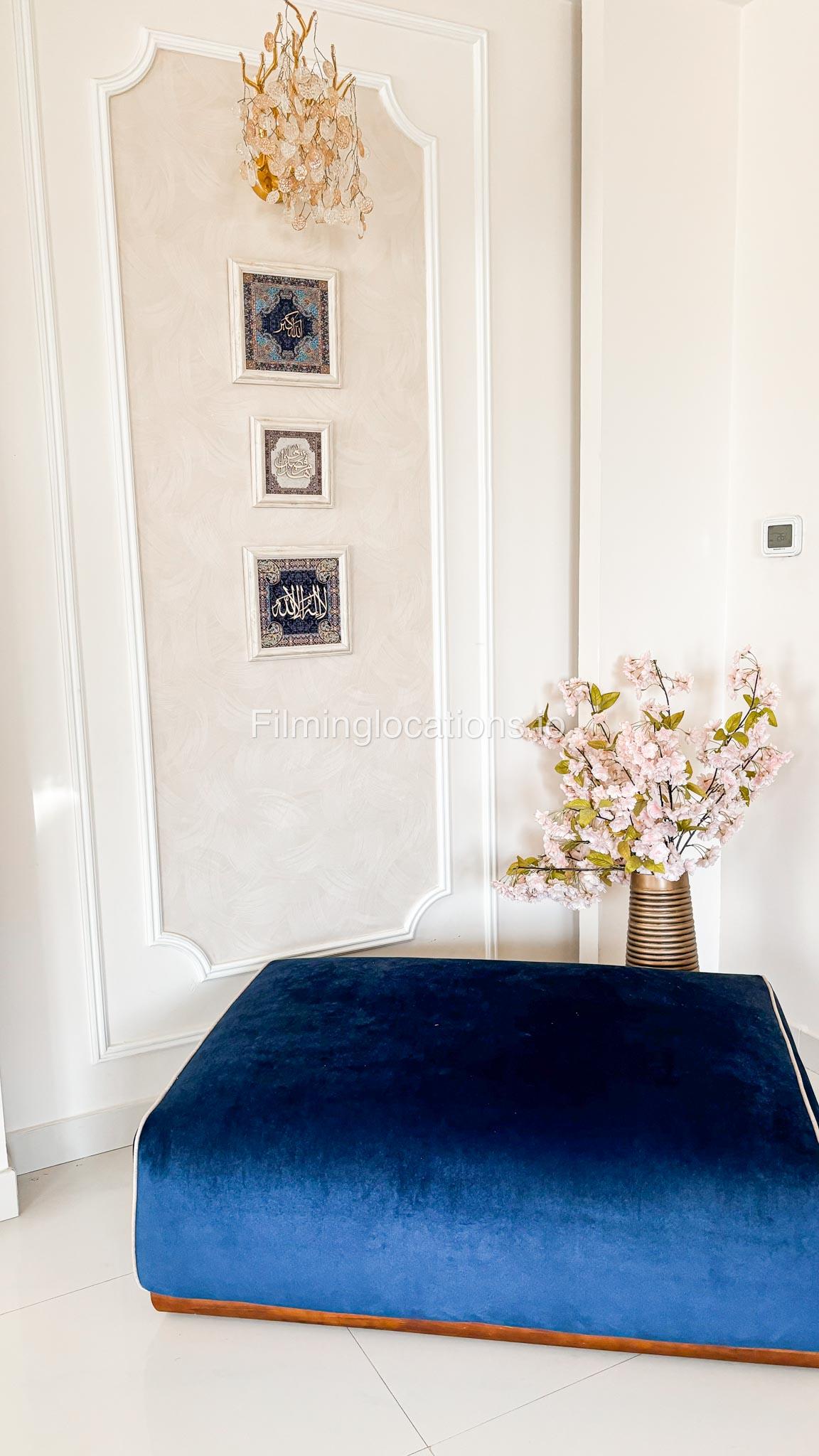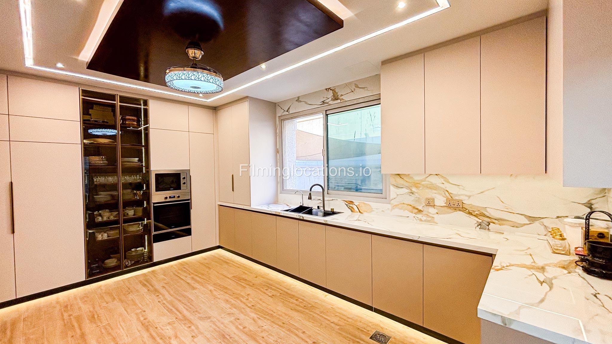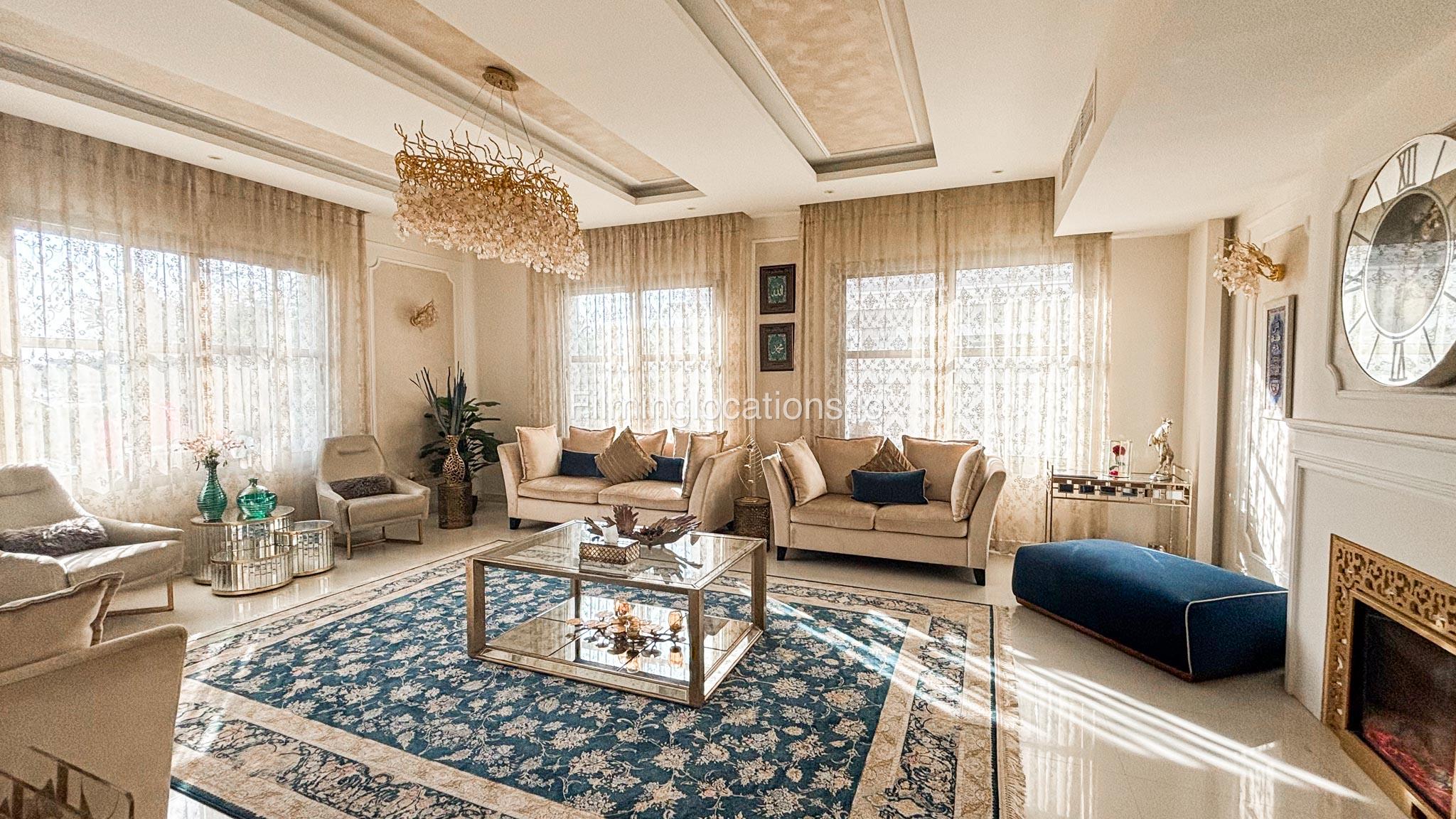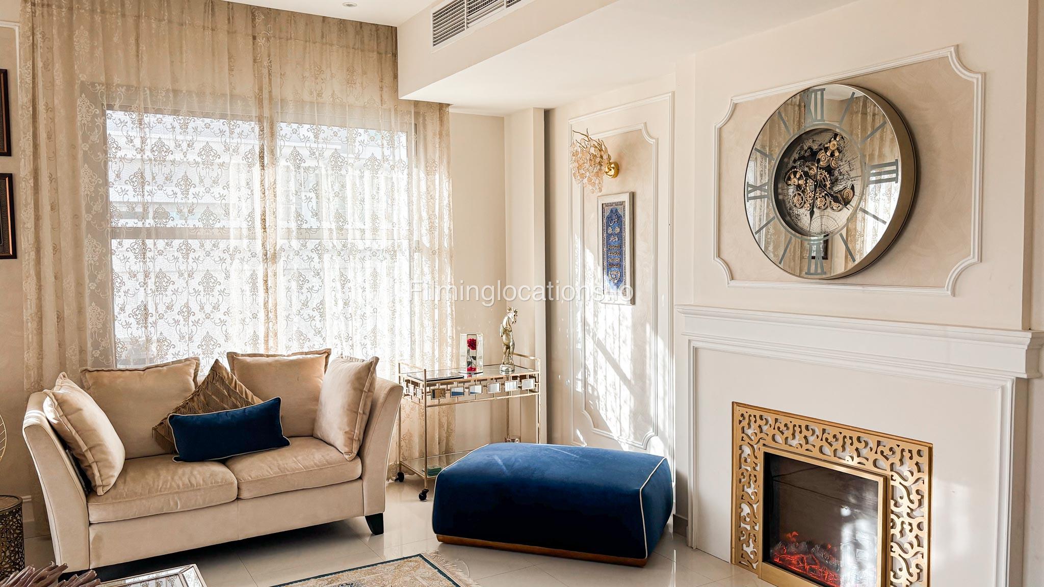 Our villa boasts a charming exterior with a white fence, a beautiful garden, a cozy seating area, and a small garage. Inside, the villa features 2 stunning living rooms with lavish royal interiors. The main living room is bright with large windows, elegant sofa seating, modern chandeliers, and sophisticated décor. The second living room offers a cozy yet stylish setup with a modern sofa facing the TV. The corridors are tastefully decorated with contemporary accents and include a small seating area. 1 bedroom with large windows is also available for filming. The villa also includes a closed, modern, fully equipped kitchen. The backyard has a shaded swimming pool area completing with a cozy table and chair seating for a refined outdoor setting. This villa offers a unique elegance, making it an ideal location for filming.