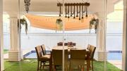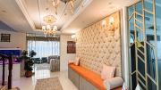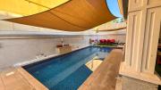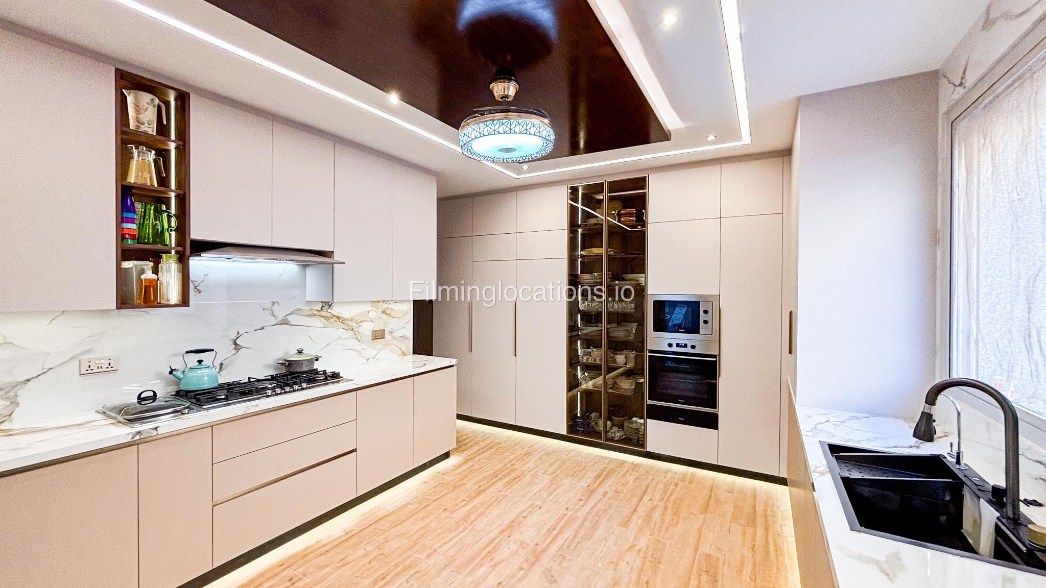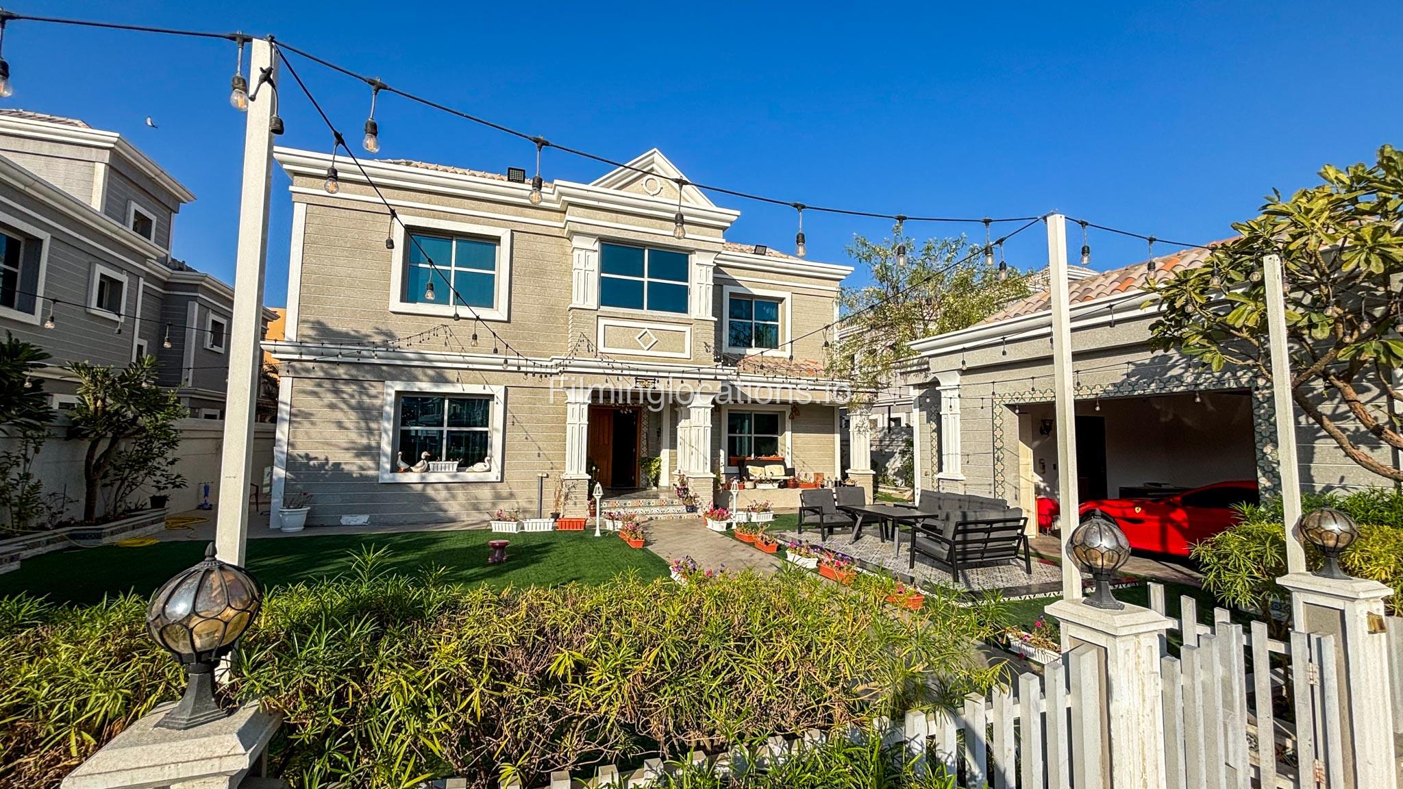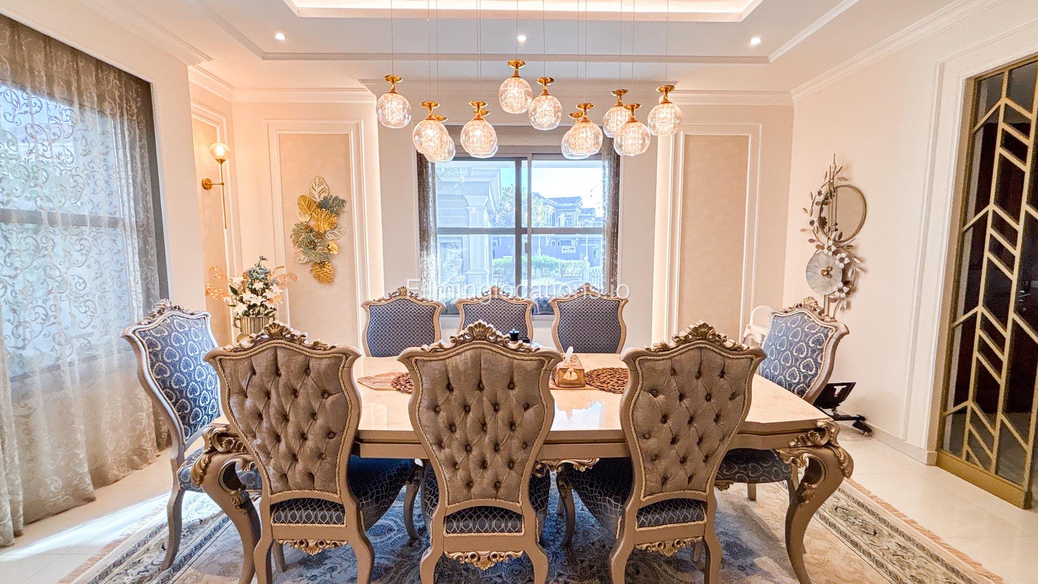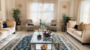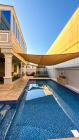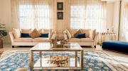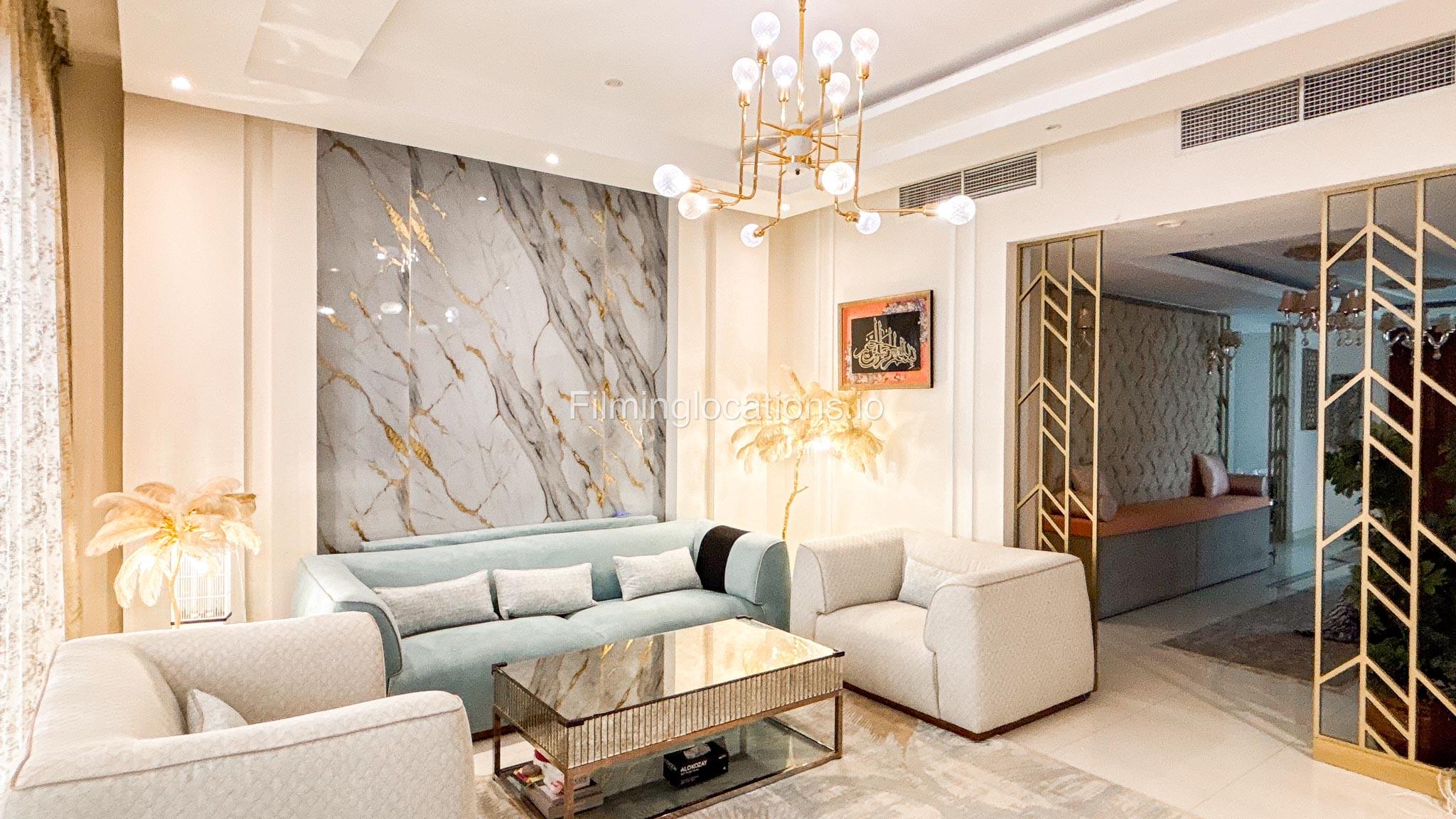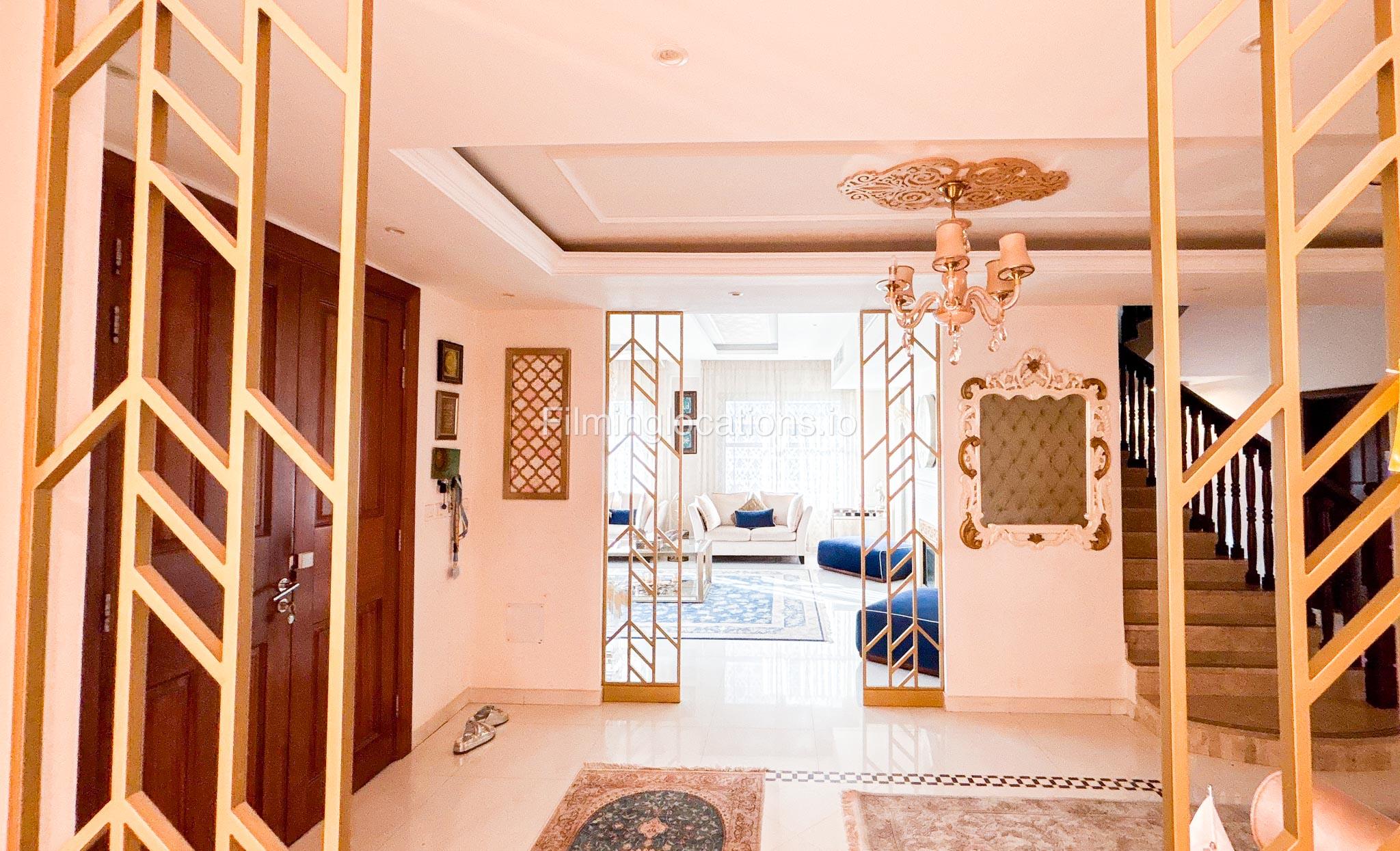 Our villa boasts a charming exterior with a white fence, a beautiful garden, a cozy seating area, and a small garage. Inside, the villa features 2 stunning living rooms with lavish royal interiors. The main living room is bright with large windows, elegant sofa seating, modern chandeliers, and sophisticated décor. The second living room offers a cozy yet stylish setup with a modern sofa facing the TV. The corridors are tastefully decorated with contemporary accents and include a small seating area. 1 bedroom with large windows is also available for filming. The villa also includes a closed, modern, fully equipped kitchen. The backyard has a shaded swimming pool area completing with a cozy table and chair seating for a refined outdoor setting. This villa offers a unique elegance, making it an ideal location for filming.