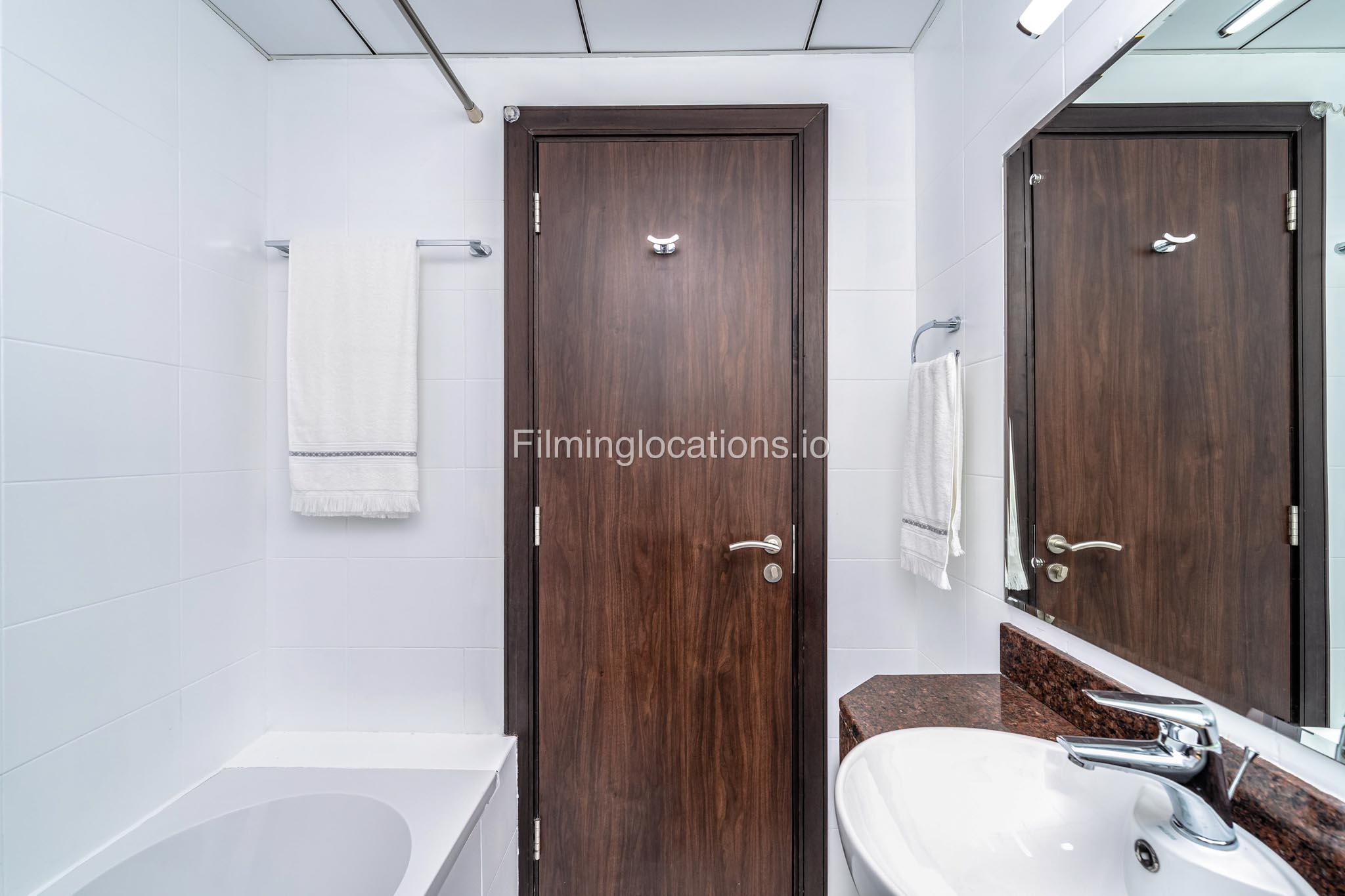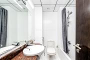 ✔ 1 full bathroom consisting of soaking bathtub, shower, toilet, sink, and mirror