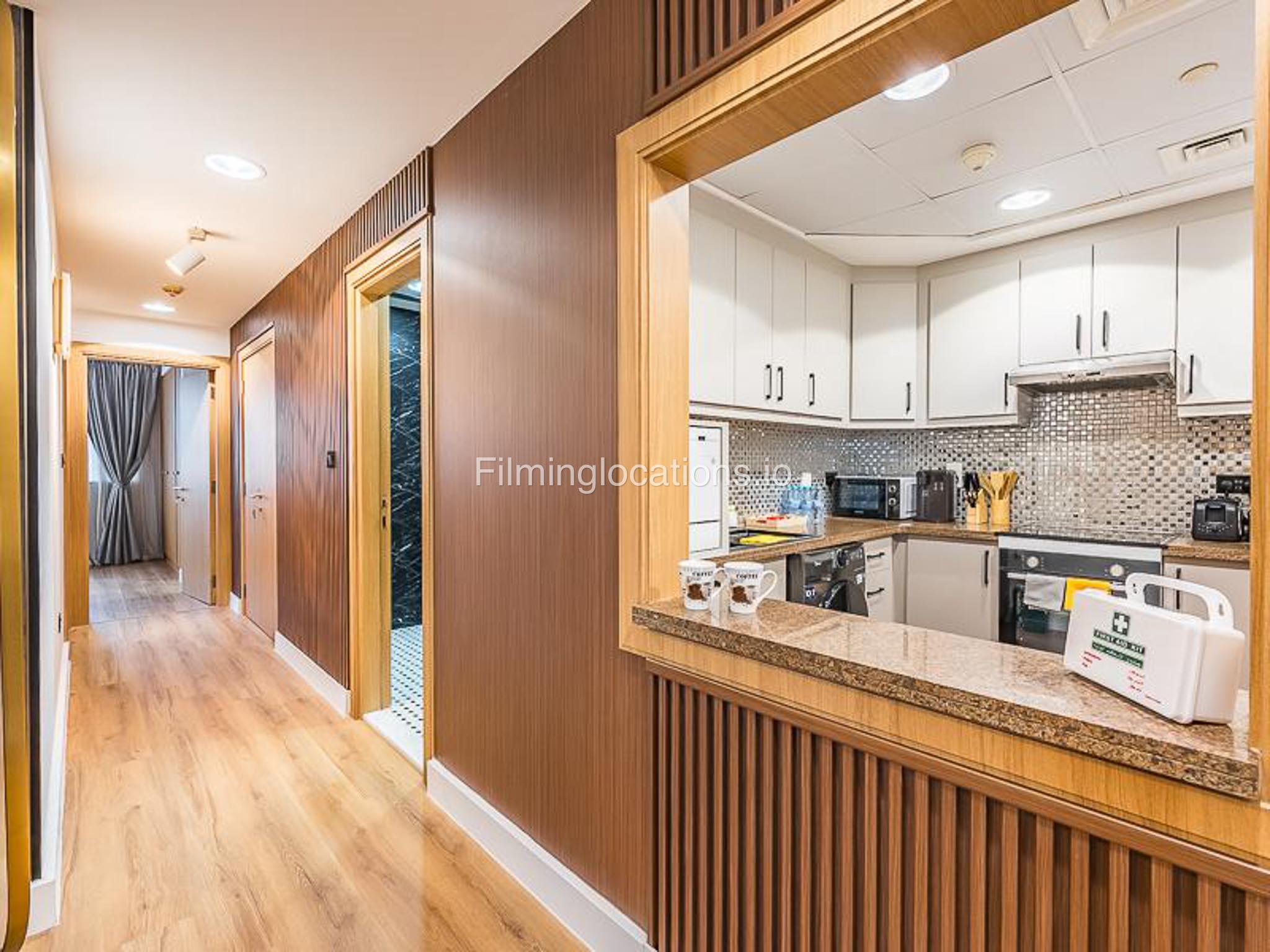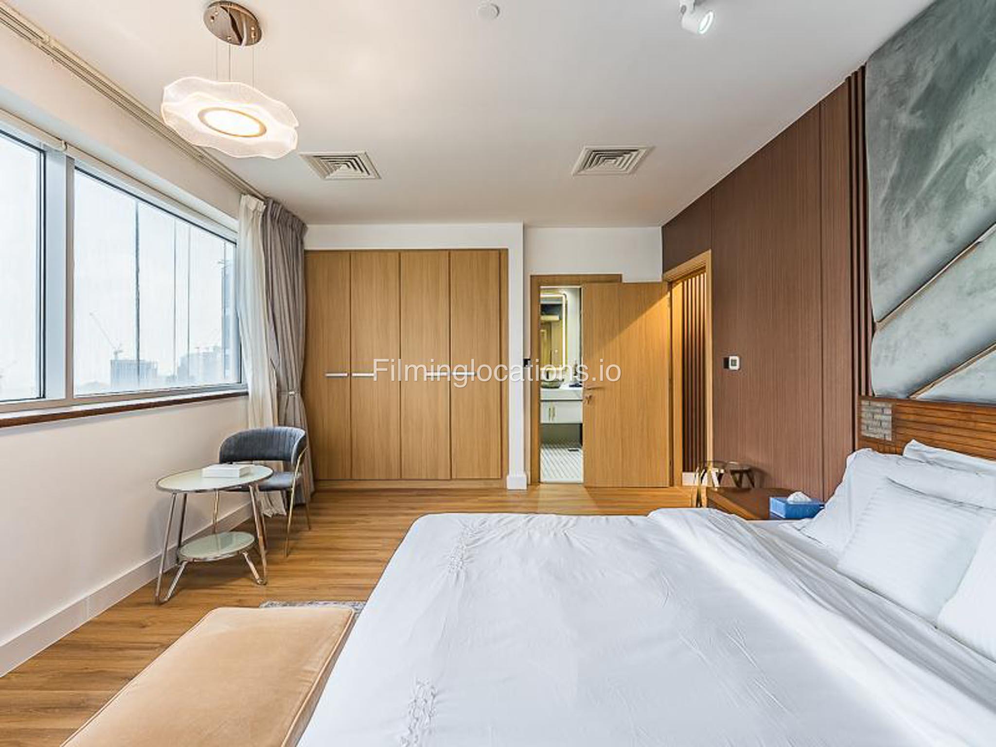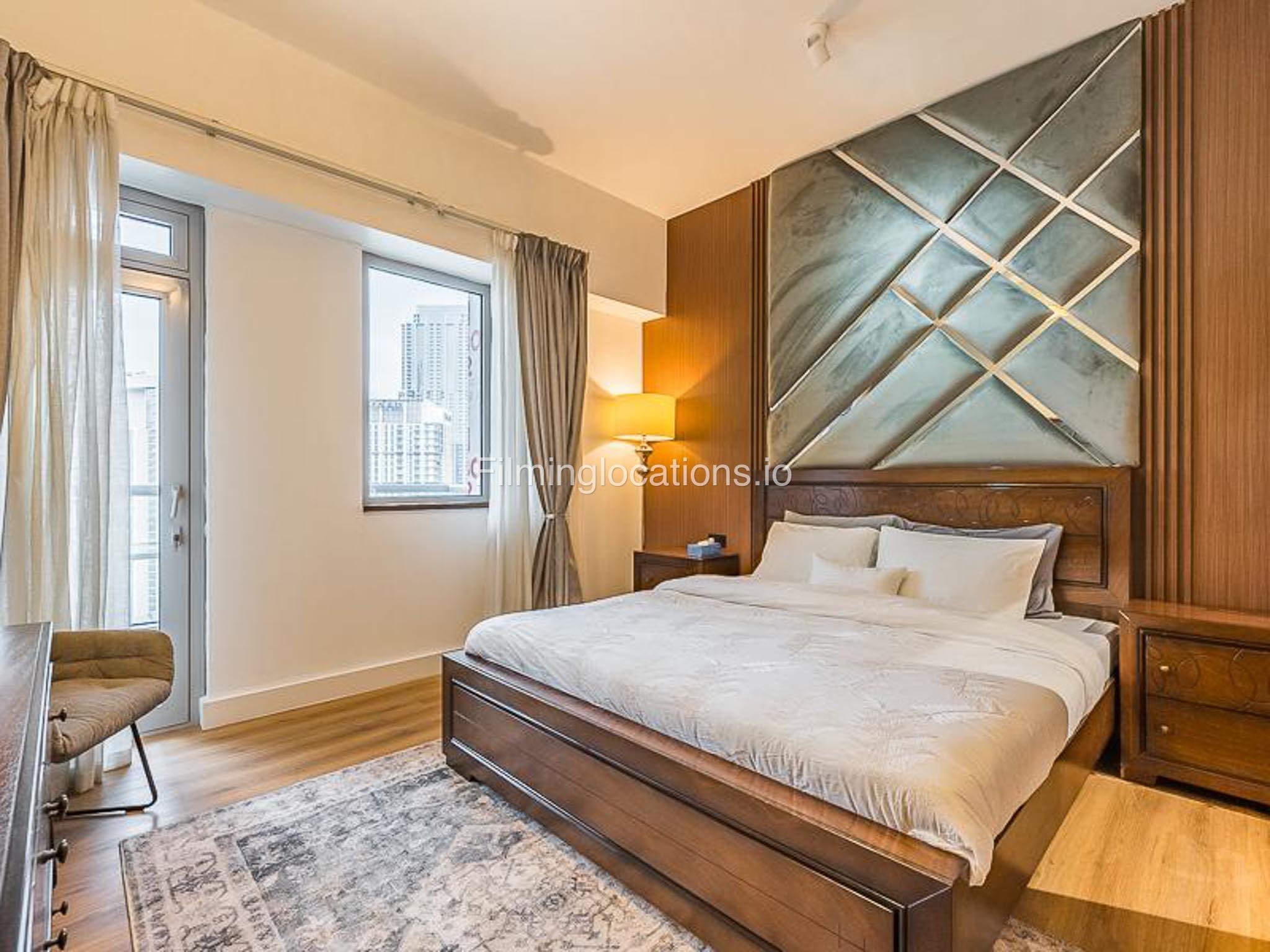 Our luxurious apartment features 2 gorgeous bedrooms with king-size beds. It also includes 2.5 bathrooms, with 2 full bathrooms featuring a shower, toilet, sink, and vanity mirror, plus 1 powder room with a toilet, sink, and vanity mirror. There’s a fully equipped kitchen and a cozy lounge with HD TV and a full set of speakers. The apartment is fully air-conditioned and boasts a balcony with a table and chairs. Our apartment also has a high-speed Wi-Fi and a dedicated workspace.