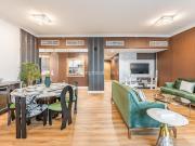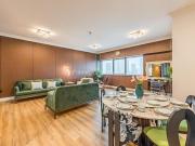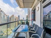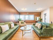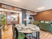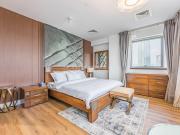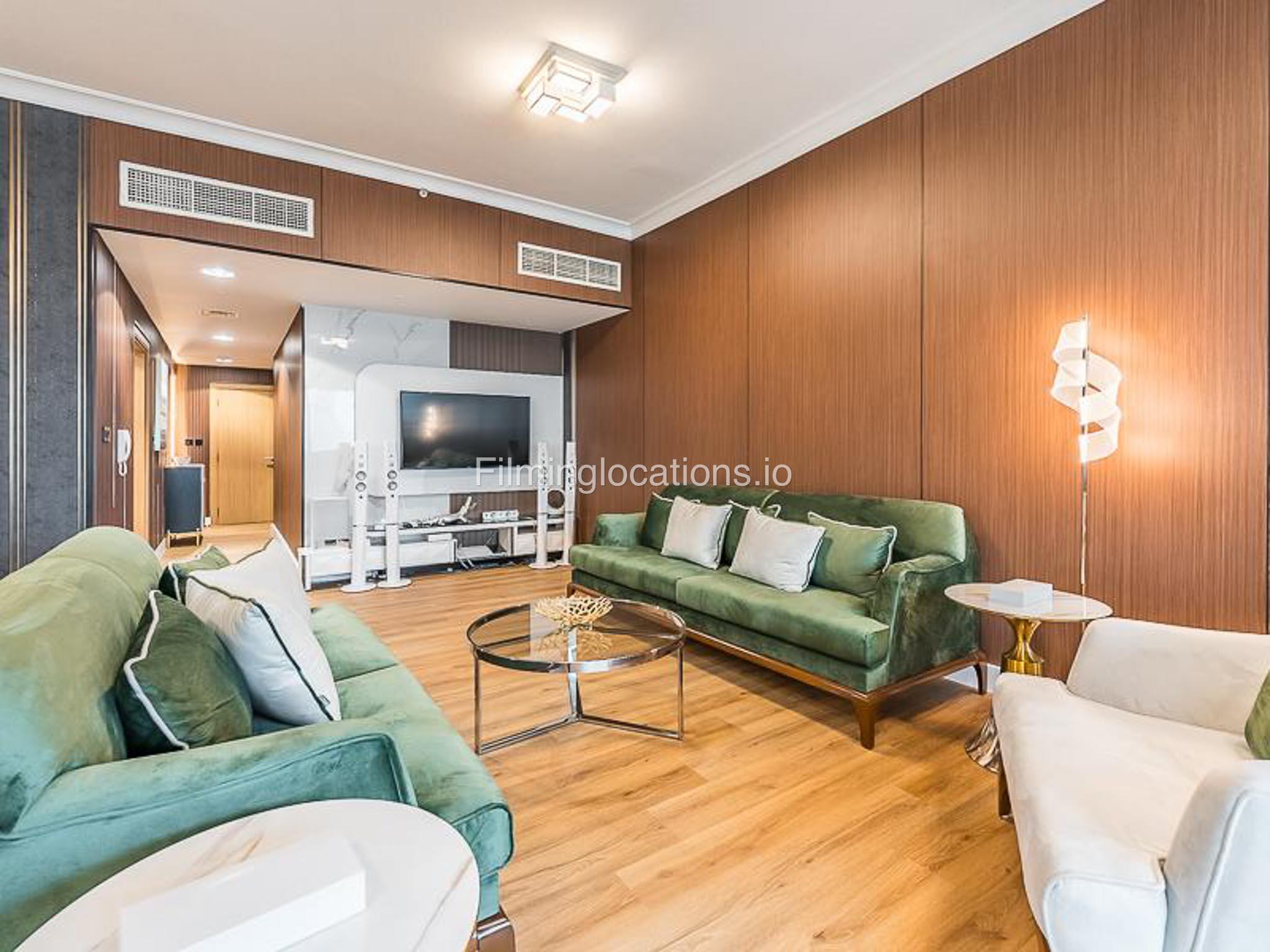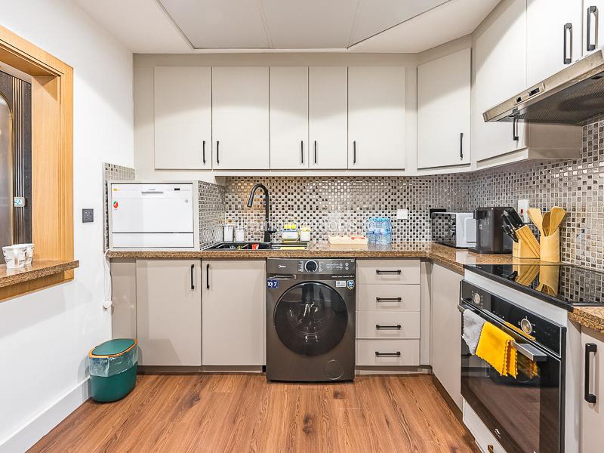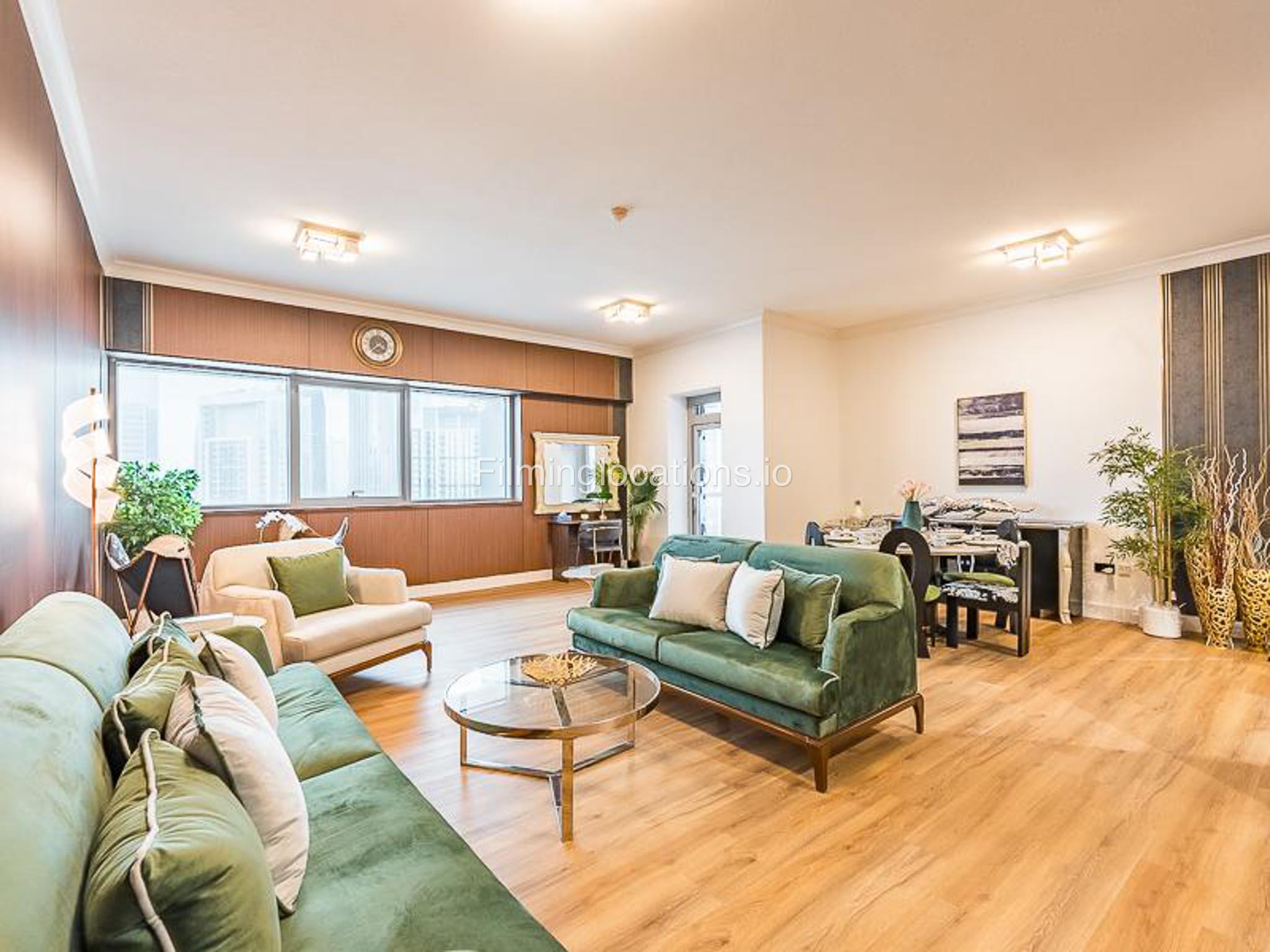 Our luxurious apartment features 2 gorgeous bedrooms with king-size beds. It also includes 2.5 bathrooms, with 2 full bathrooms featuring a shower, toilet, sink, and vanity mirror, plus 1 powder room with a toilet, sink, and vanity mirror. There’s a fully equipped kitchen and a cozy lounge with HD TV and a full set of speakers. The apartment is fully air-conditioned and boasts a balcony with a table and chairs. Our apartment also has a high-speed Wi-Fi and a dedicated workspace.