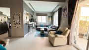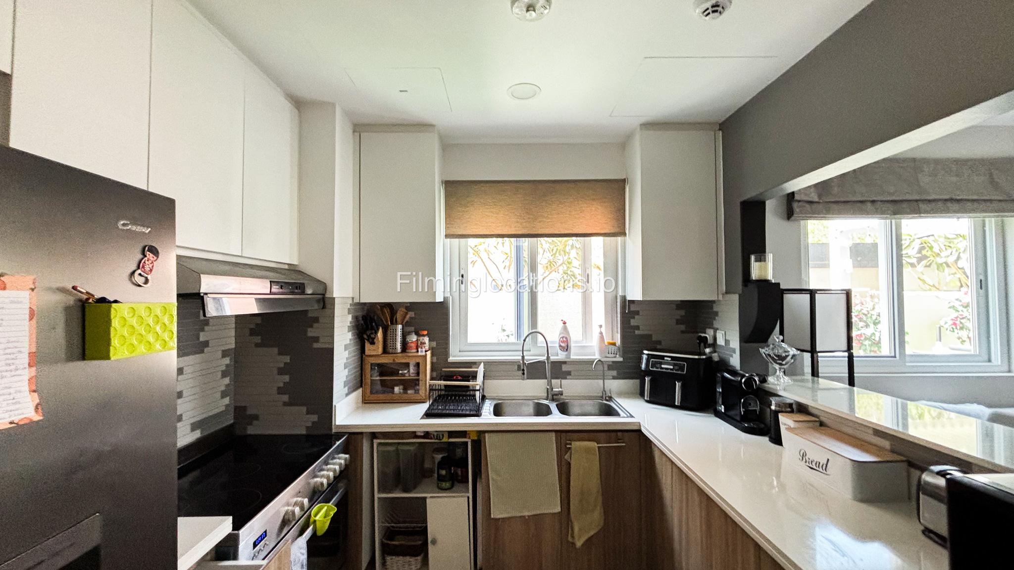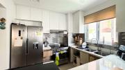 Our fully furnished 3-bedroom townhouse features a comfortable living area facing TV and semi-open kitchen with kitchen island equipped with modern appliances. The upper floor comprises a master bedroom and 2 kids bedrooms. There are 2 bathrooms - 1 with a bathtub.