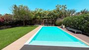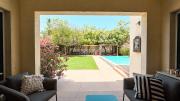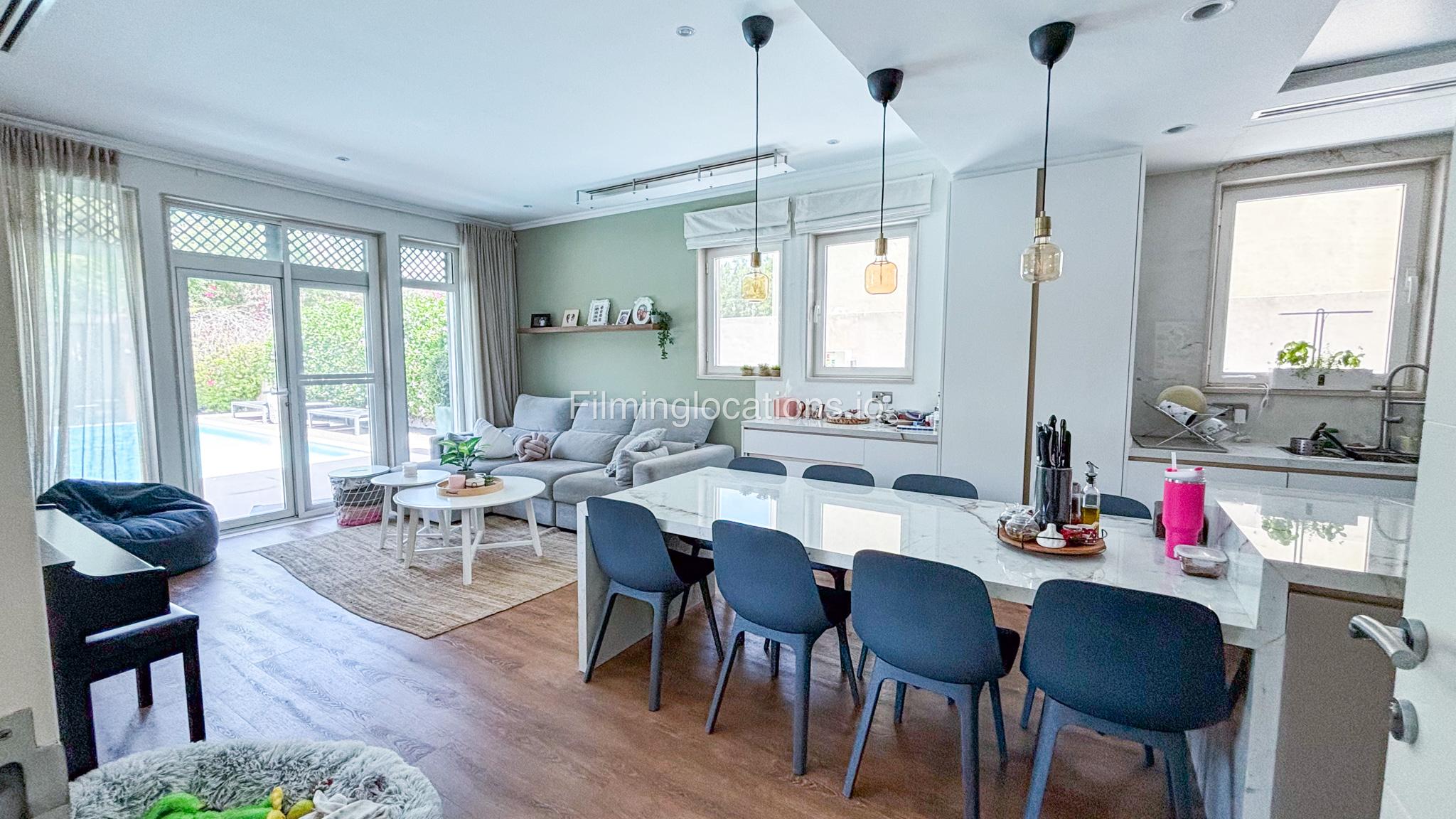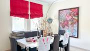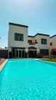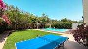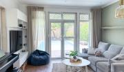 Our cozy 3 bedroom villa features 2 living room areas. On the ground floor, the main living area is centered around a large TV and flows into a cozy dining area. Adjacent to this is a stylish kitchen space complete with a stunning white kitchen island. This area opens to a secondary living space, furnished with a sofa, television, and a piano. Upstairs, there are 3 bedrooms - 2 bedrooms with private balcony overlooking the backyard with the swimming pool and garden and 1 kid's room. The outdoor includes a shaded patio with comfortable outdoor furniture. This opens onto a beautiful garden with a swimming pool and complemented by a built-in BBQ counter, large outdoor dining area and a dedicated table tennis zone.