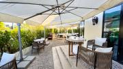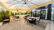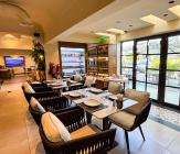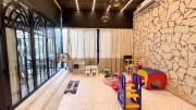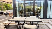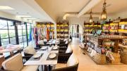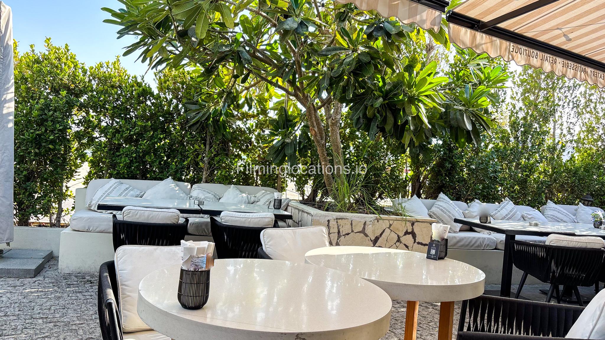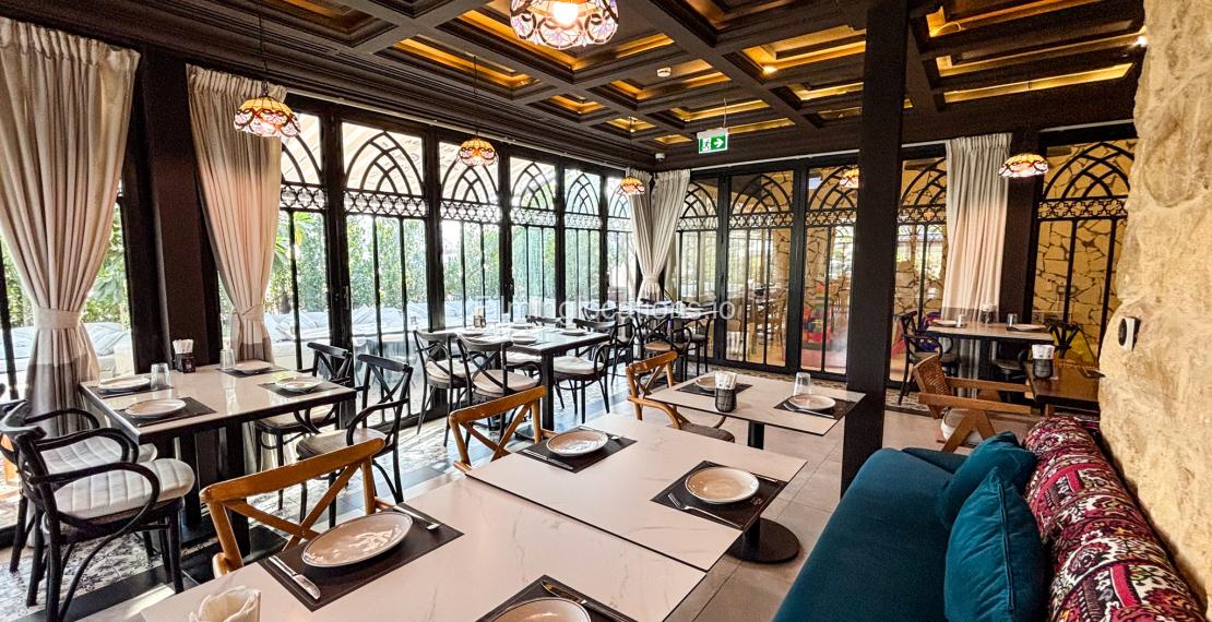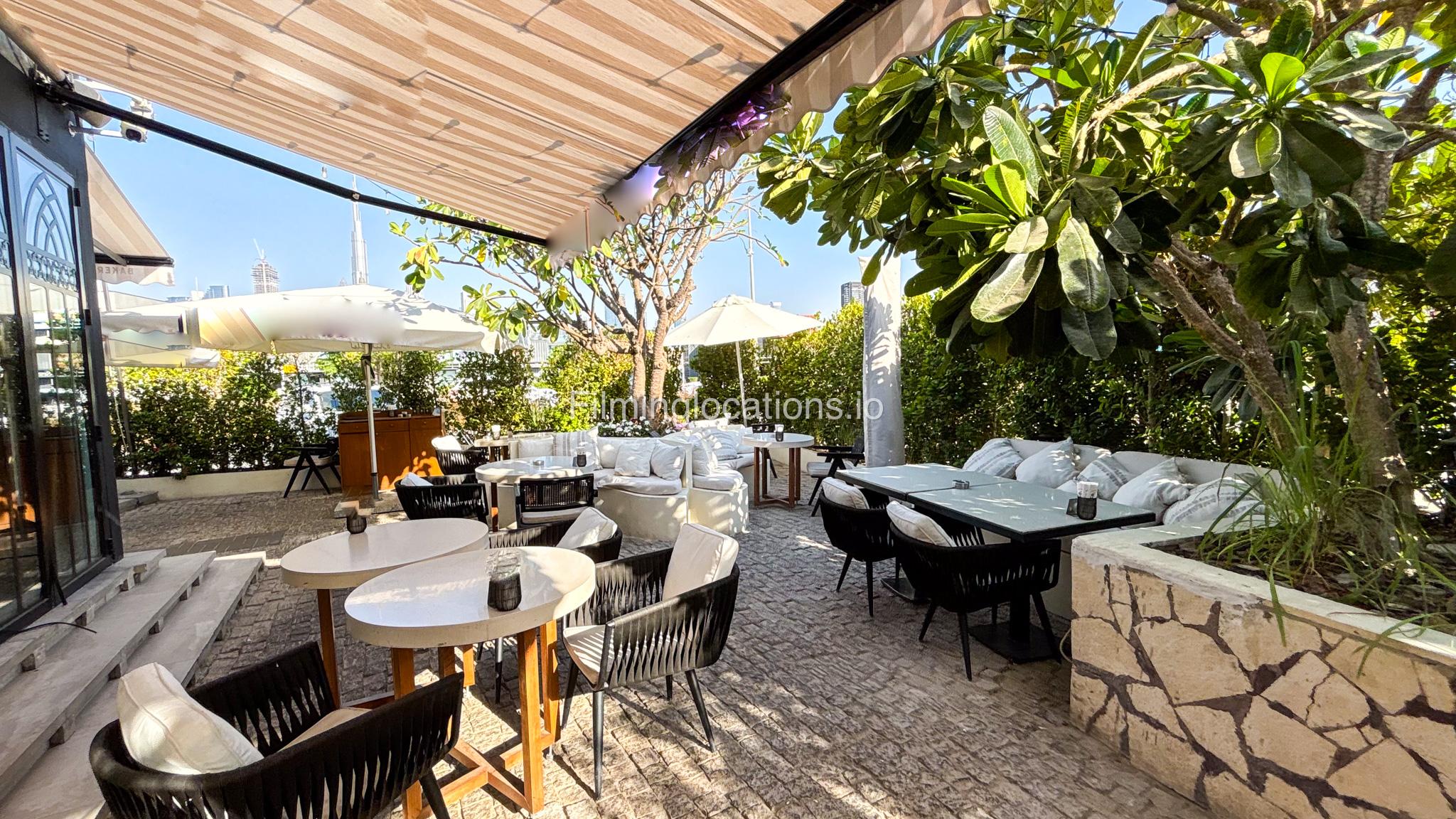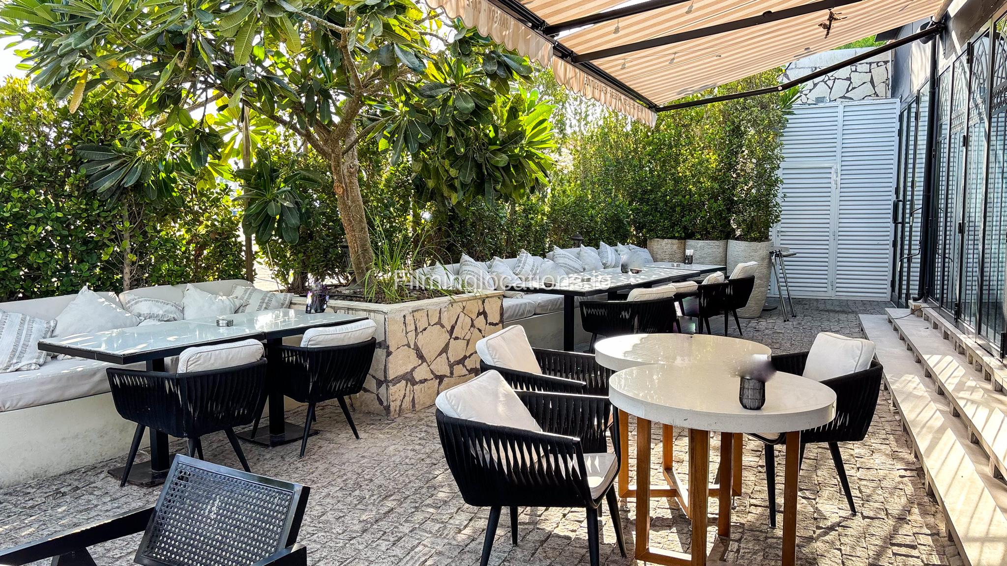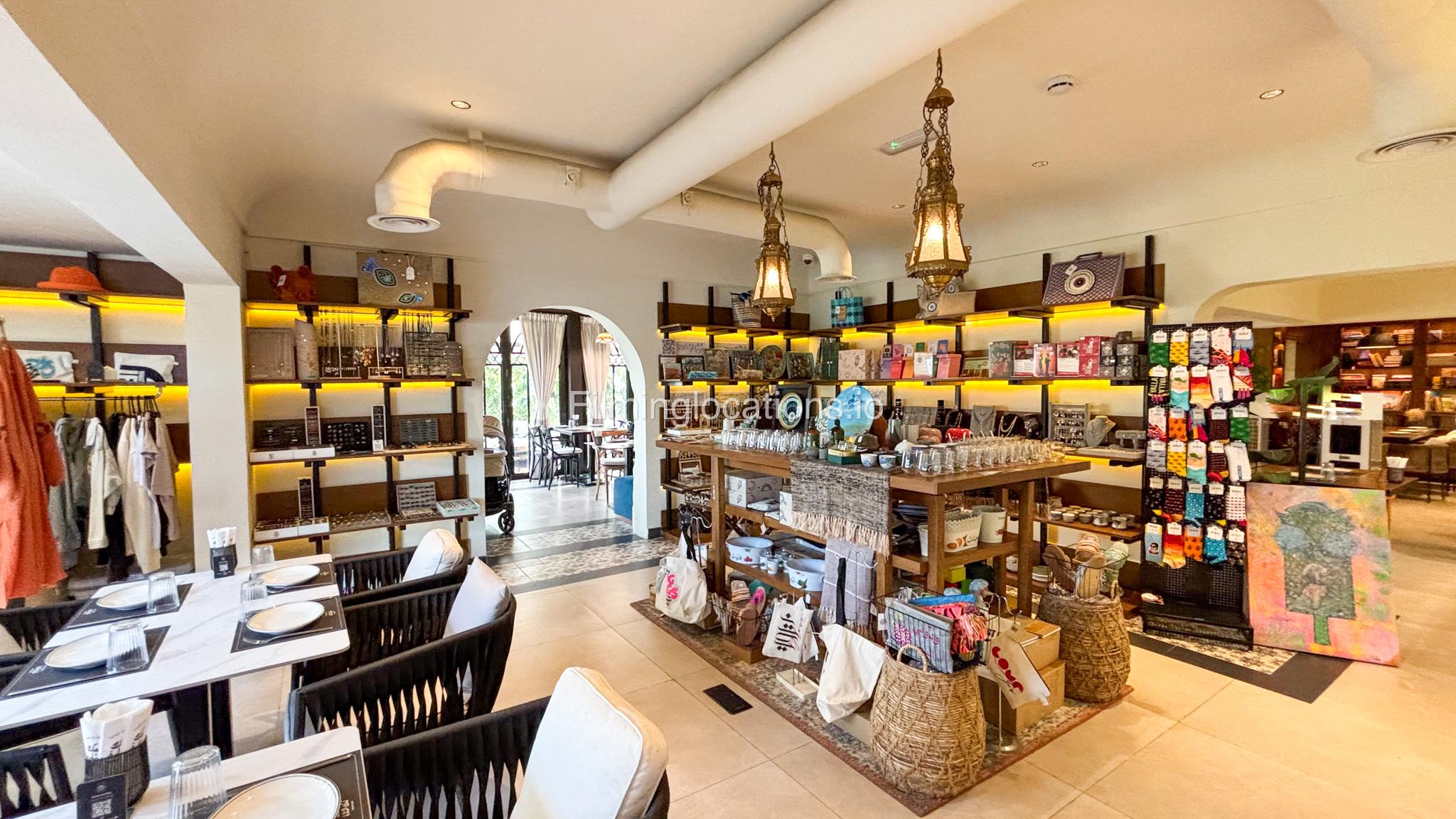 Our restaurant blends traditional charm with contemporary design featuring an expansive indoor seating area with window walls featuring intricate, artistic designs, allowing for an abundance of natural light. The interiors flow into a stylish glasshouse café section and a boutique-style retail space. It also has a small kid's play area. Outdoors, a lush garden terrace provides a serene setting ideal for exterior shots.