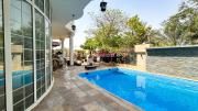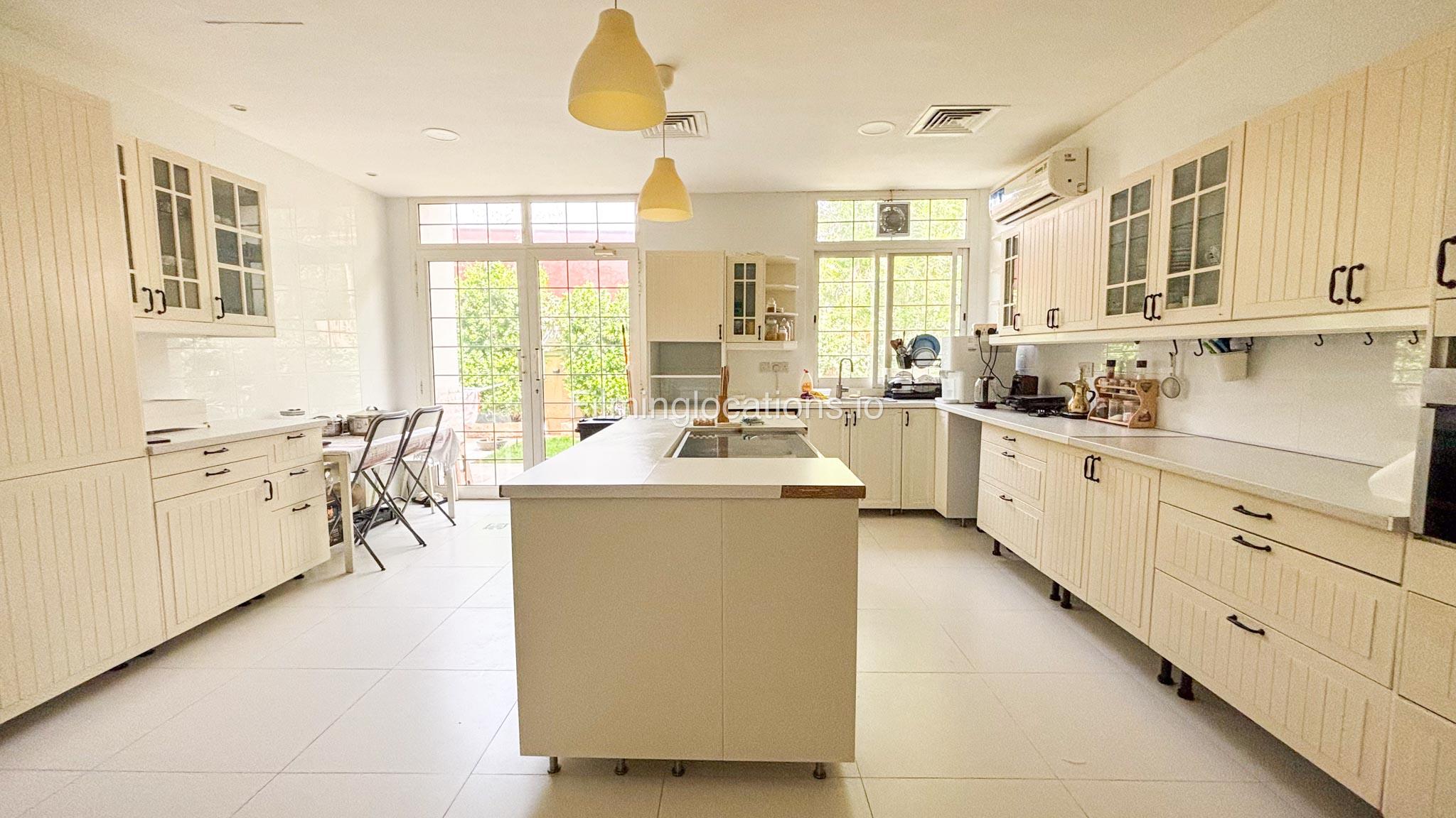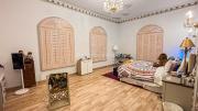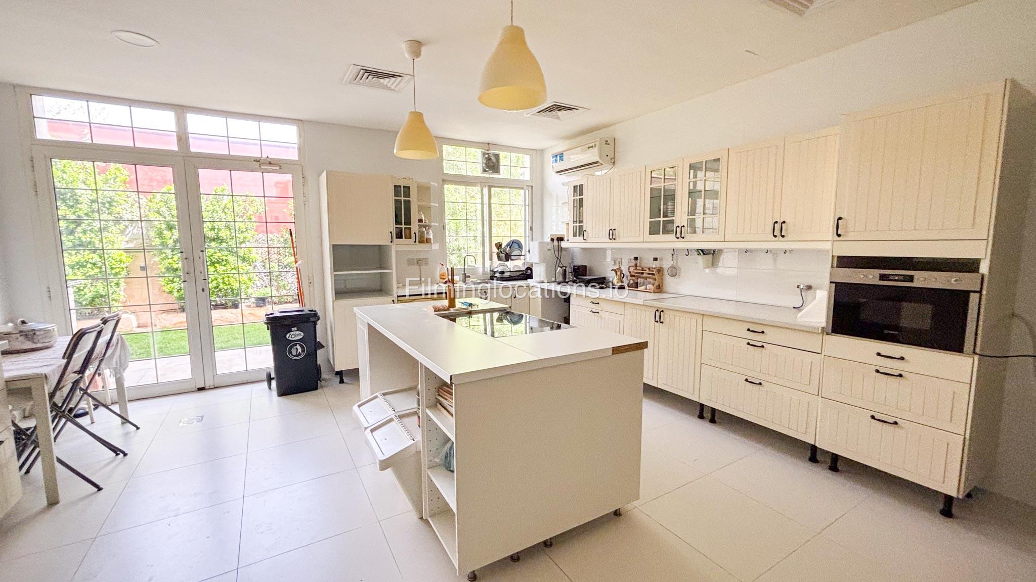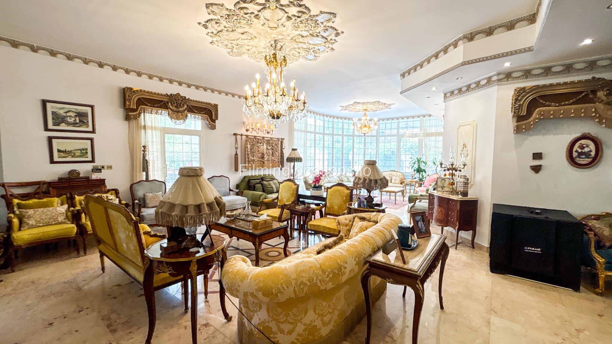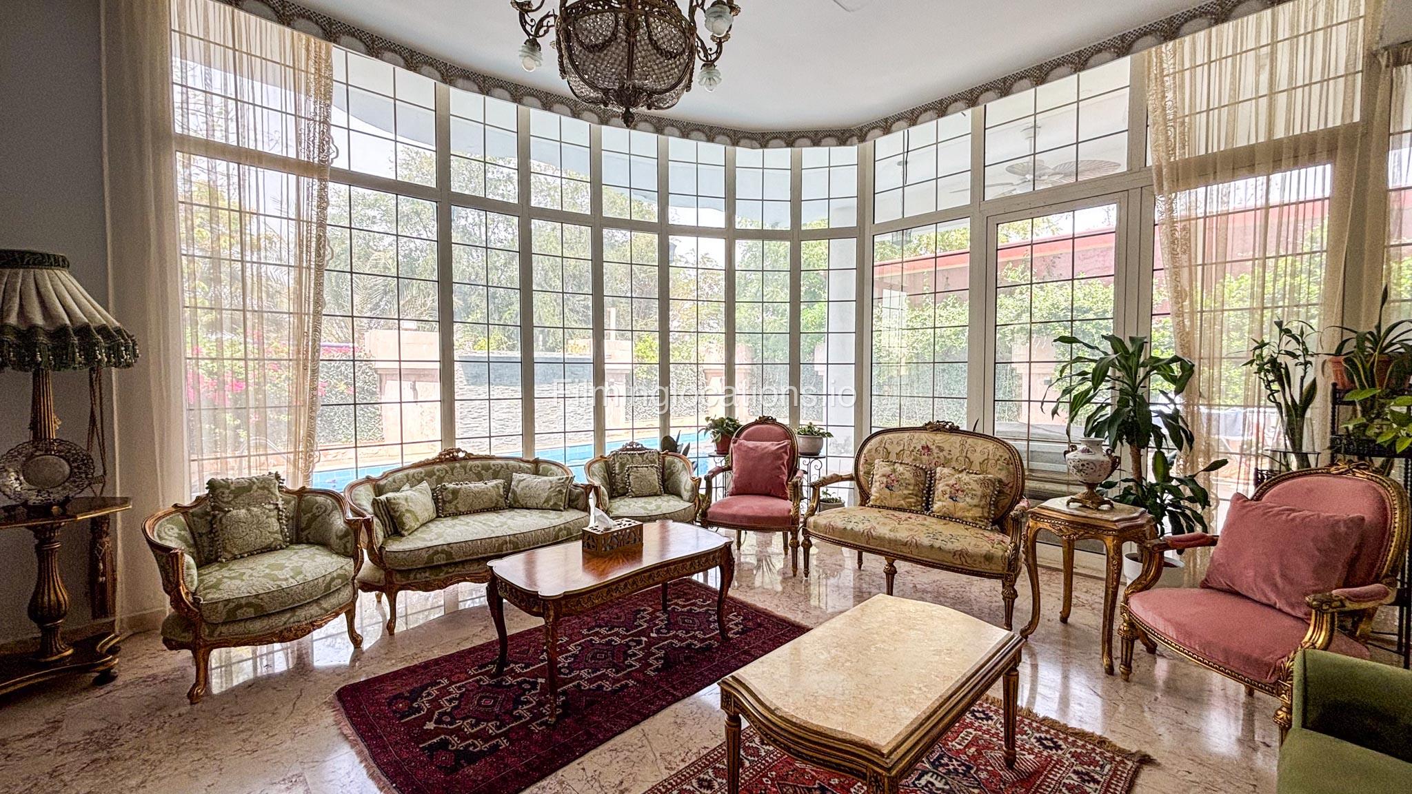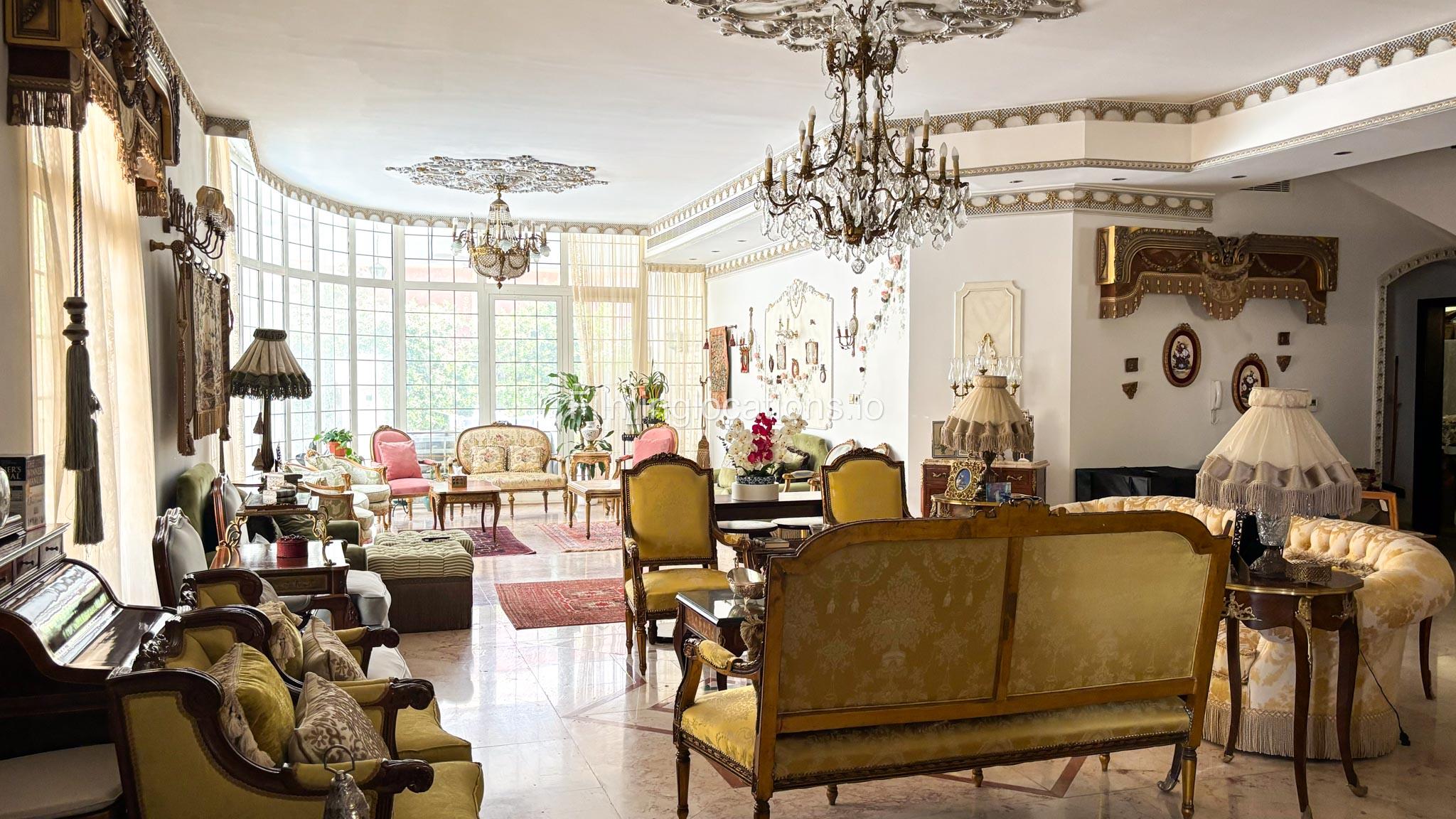 Our 3-bedroom Arabian villa offers a rich blend of traditional charm and versatile filming potential. It features 2 living rooms—the main one located on the ground floor, designed with panoramic window walls, Arabian-style chandeliers, and classic themed seating, all surrounded by carefully curated antique décor. A sliding wooden door connects this space to a dining room styled with matching chandeliers, rich curtains, and antique accents. The spacious kitchen includes a central kitchen island and opens to the garden through elegant glass doors, offering a bright backdrop. A spiral staircase leads to the 2nd living room upstairs, featuring slightly modern sofa seating facing a TV, large windows, a small dining area, and chandeliers that maintain the villa’s authentic touch. Continuing upstairs, the 3 bedrooms include a master bedroom with an attached bathroom, glass-door balcony, full-length mirror, and a small dressing area; a 2nd bedroom with windows and a dedicated dressing space; and a 3rd bedroom with minimal furnishings and a large window. The exterior offers a swimming pool with a cozy seating area, a garden with a children’s play zone, and a private garage—making this villa a well-rounded, atmospheric location ideal for a wide range of productions.