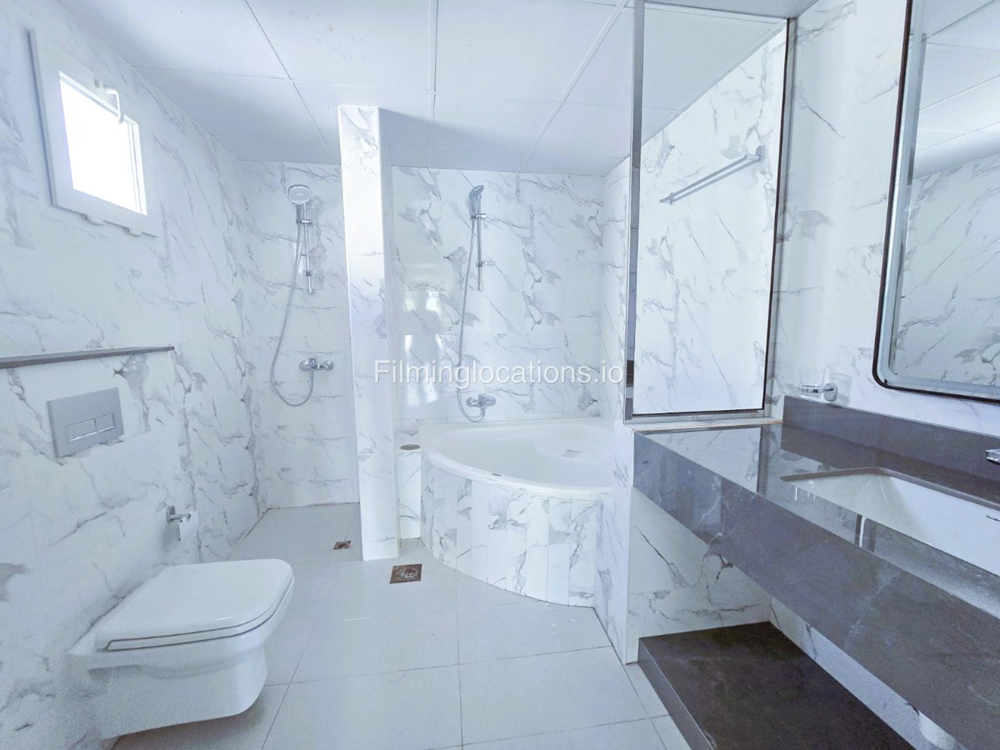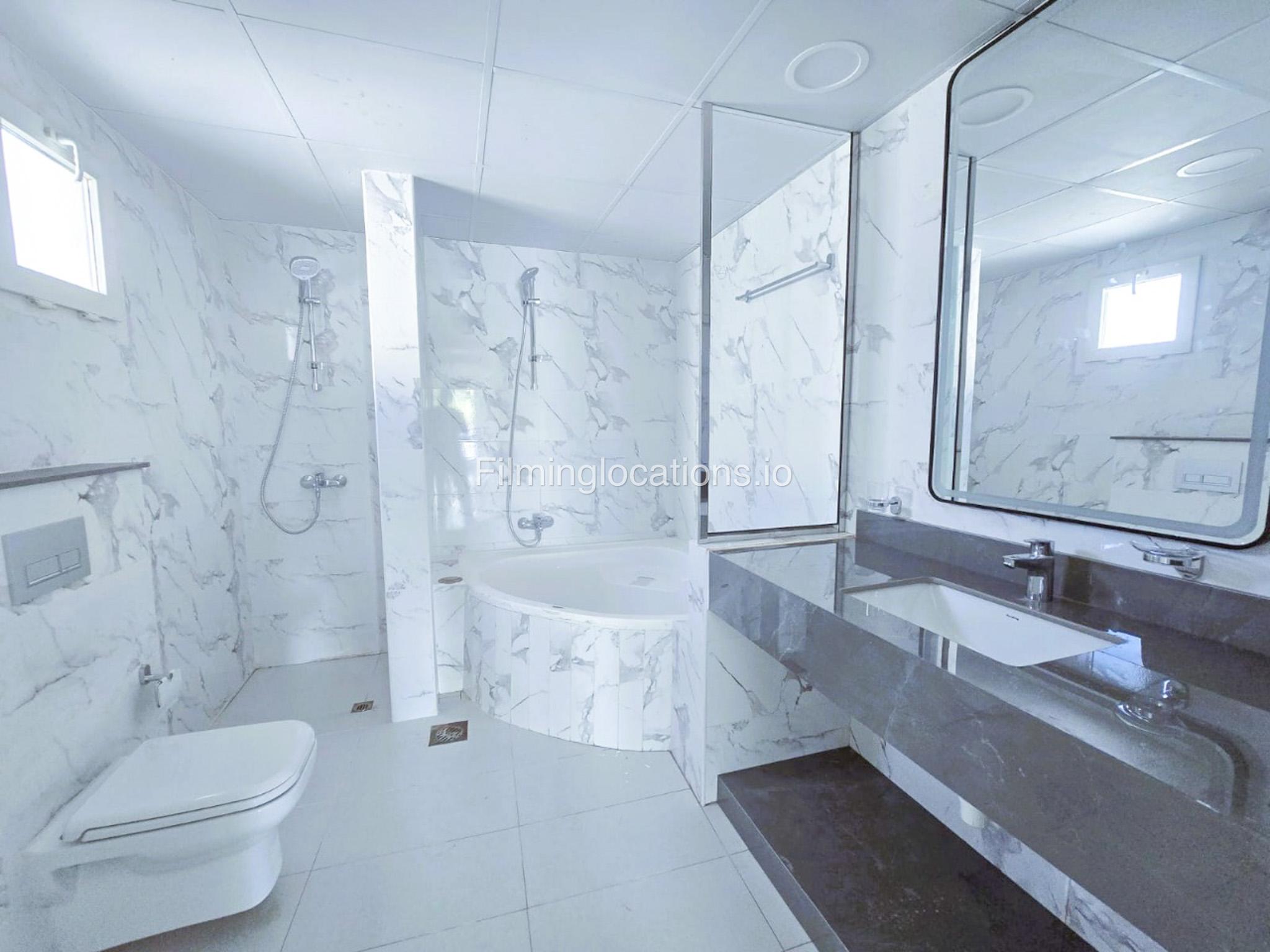 Our villa is a spacious and unfurnished. It features 5 generously sized bedrooms, including a spacious master bedroom, along with bathrooms with bathtubs. 2 balconies provide stunning skyline views. The semi open kitchen seamlessly connects to the living areas. Outdoors, a lush green garden creates a natural, vibrant setting.