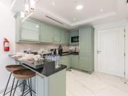 Our gorgeous apartment features 1 bedroom with Queen-size bed. It also includes 1 full bathroom featuring a shower, toilet, sink, and a vanity mirror. There’s a fully equipped kitchen and a cozy lounge with sofa bed and HD TV. The apartment is fully air-conditioned and boasts a balcony with a table and chairs. Our apartment also has a high-speed Wi-Fi.