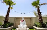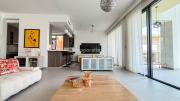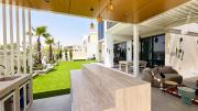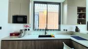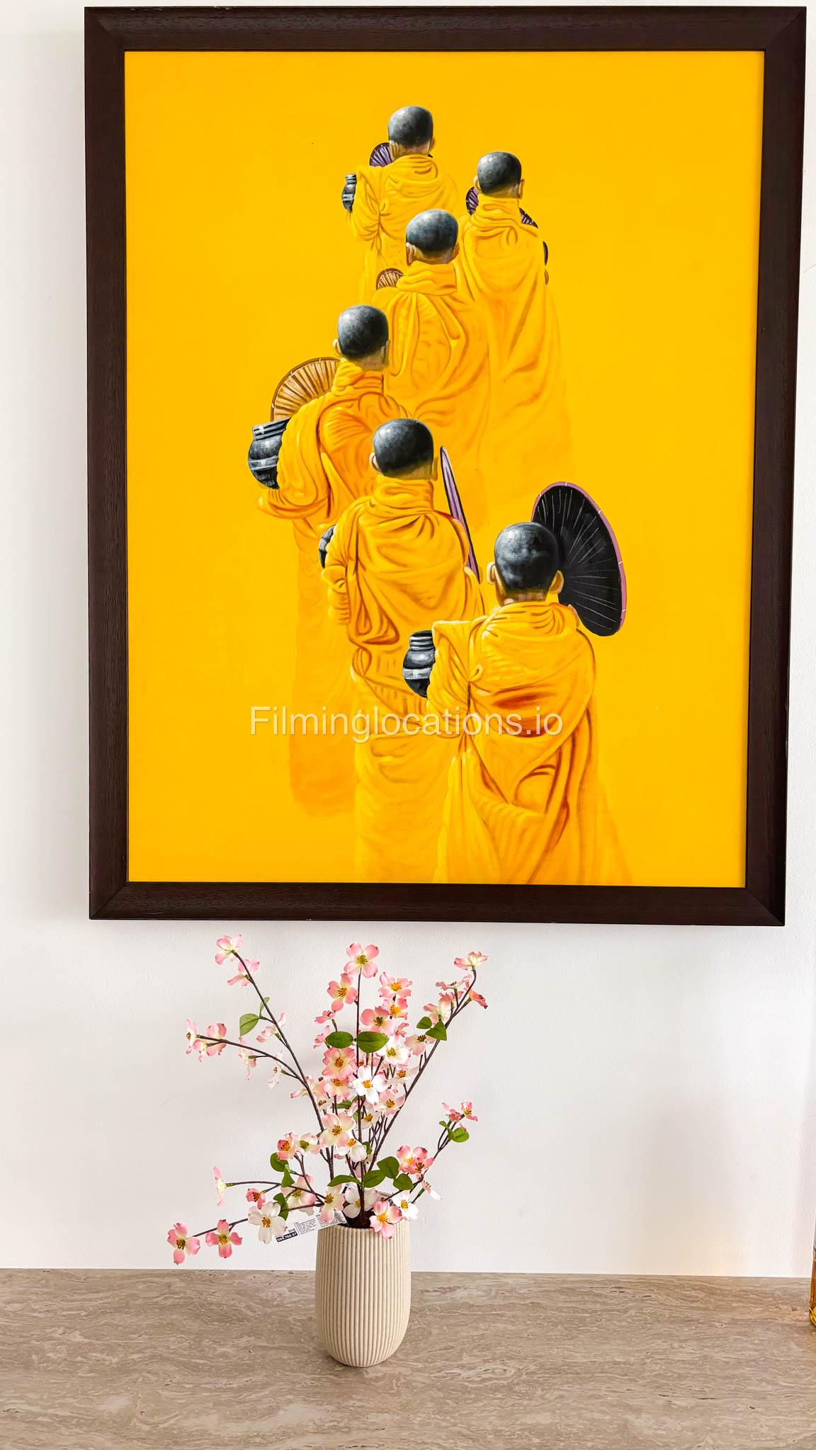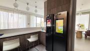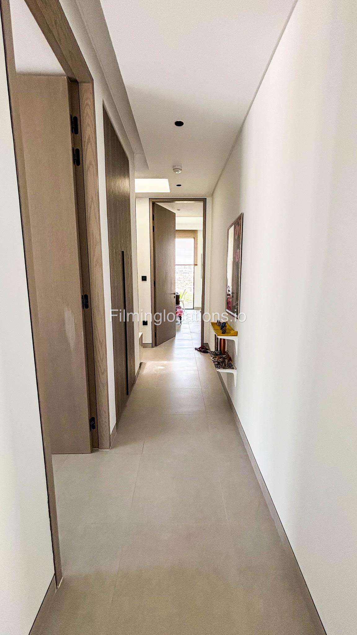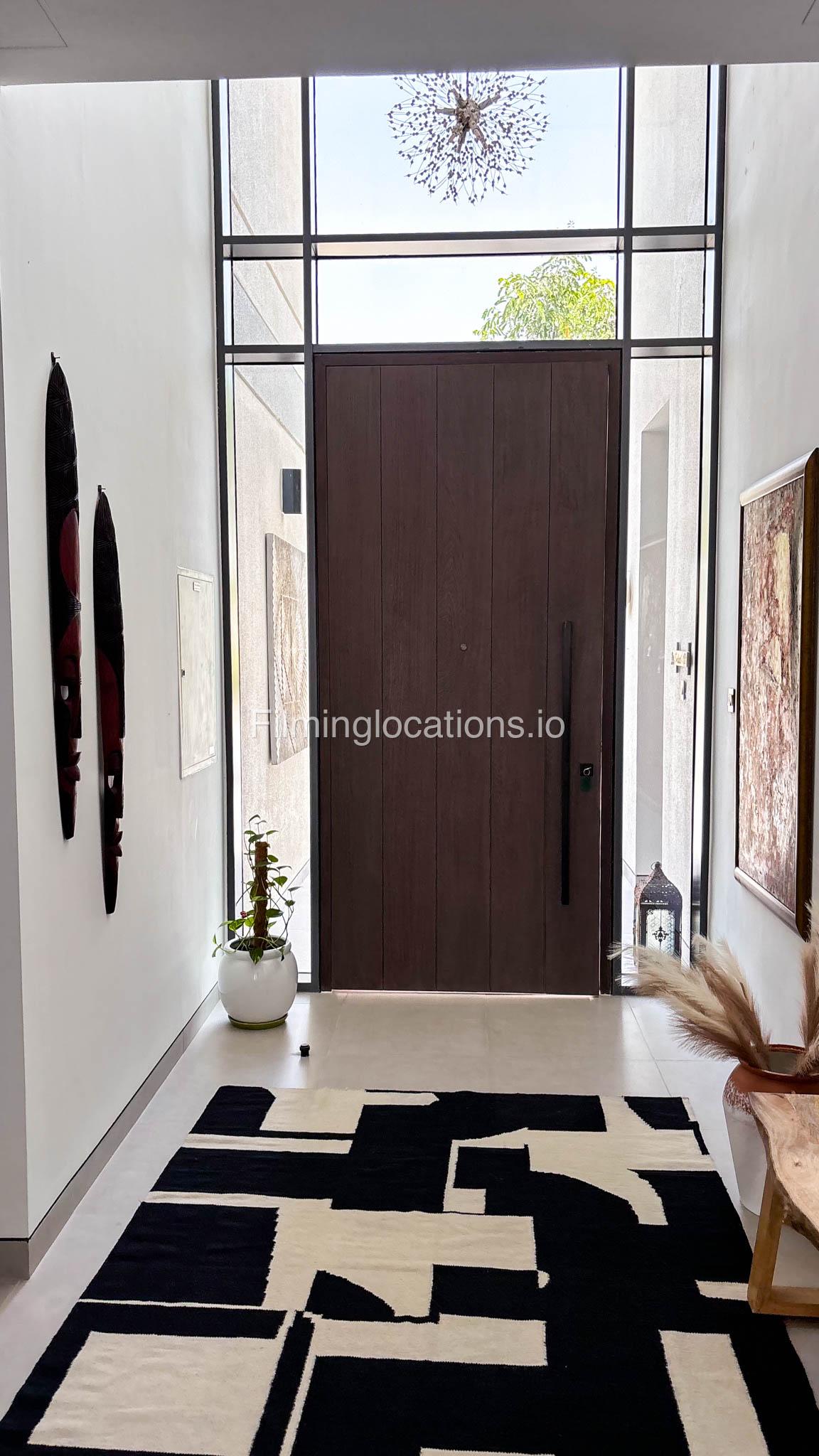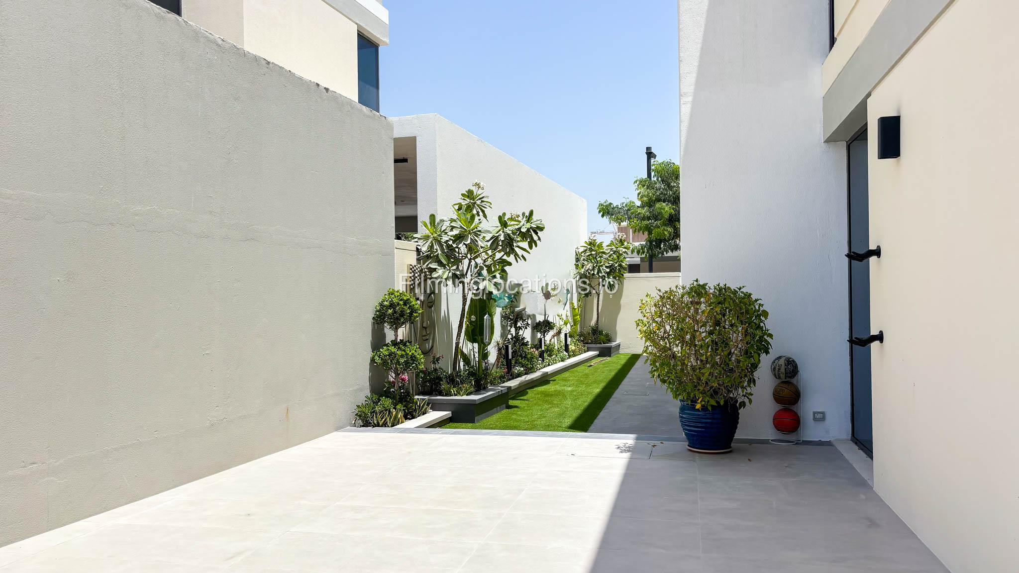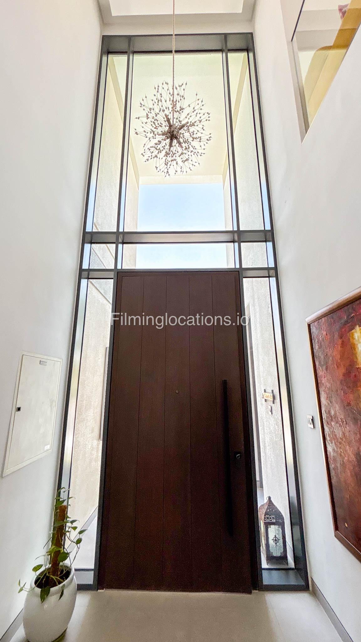 Our stylish 4-bedroom villa offers a versatile setting ideal for filming. The main living room is a spacious, well-lit area featuring modern ceiling lights, colorful seating arranged around a TV, striking wall paintings, and large window walls. A cozy dining area and an open kitchen are seamlessly integrated into the space. The hallway boasts tall ceilings and artistic wall décor, leading to the downstairs living room, bedroom, and kitchen. A staircase with expansive windows takes you to the upper floor, where a 2nd living room awaits with window walls, a cozy sofa setup, a TV, and a piano, along with a small pantry tucked to the side. The upper floor includes 3 bedrooms—1 with a balcony and another with large windows and a dedicated dressing room—while the 4th bedroom is located downstairs. Outdoors, the villa features a lush garden with a serene white Buddha statue as its centerpiece, complemented by a BBQ corner and cozy seating, offering a perfect backdrop for creative productions.