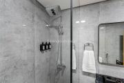Our beautiful apartment features a spacious bedroom with a king-size bed. . The bathroom is well-appointed with a shower, toilet, sink, and vanity mirror. The fully equipped kitchen is perfect for preparing meals, and the cozy lounge area includes an HD TV for your entertainment. The apartment is fully air-conditioned and boasts 2 balcony with a table and chairs. Our apartment also has a high-speed Wi-Fi and a dedicated workspace.