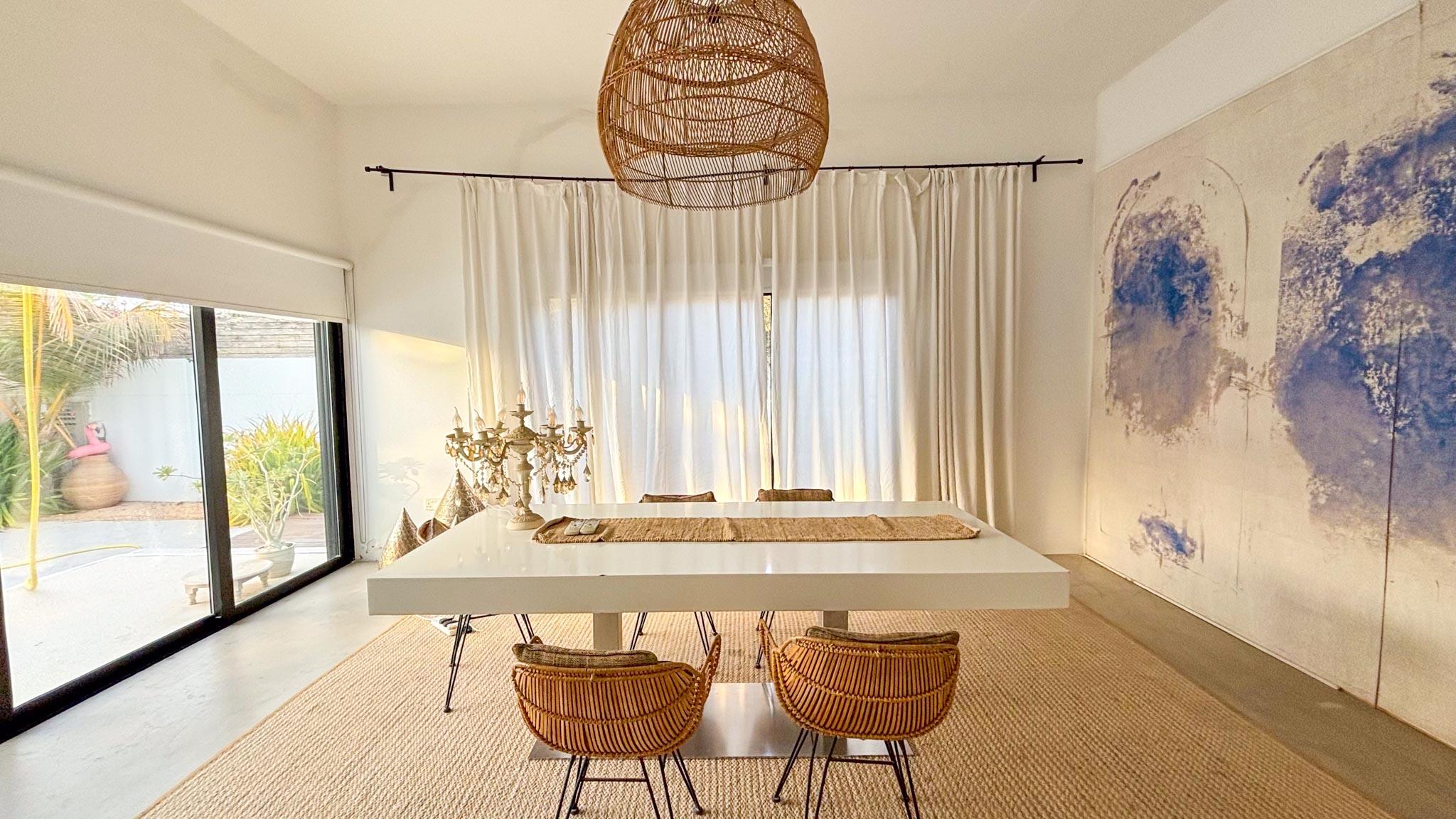 Use tennis balls or protective caps on light stand legs to prevent floor damage- No smoking in the villa possible to eat outside large table and bench are at the disposal of the crew