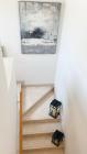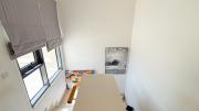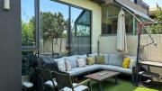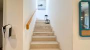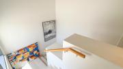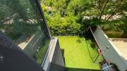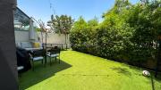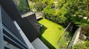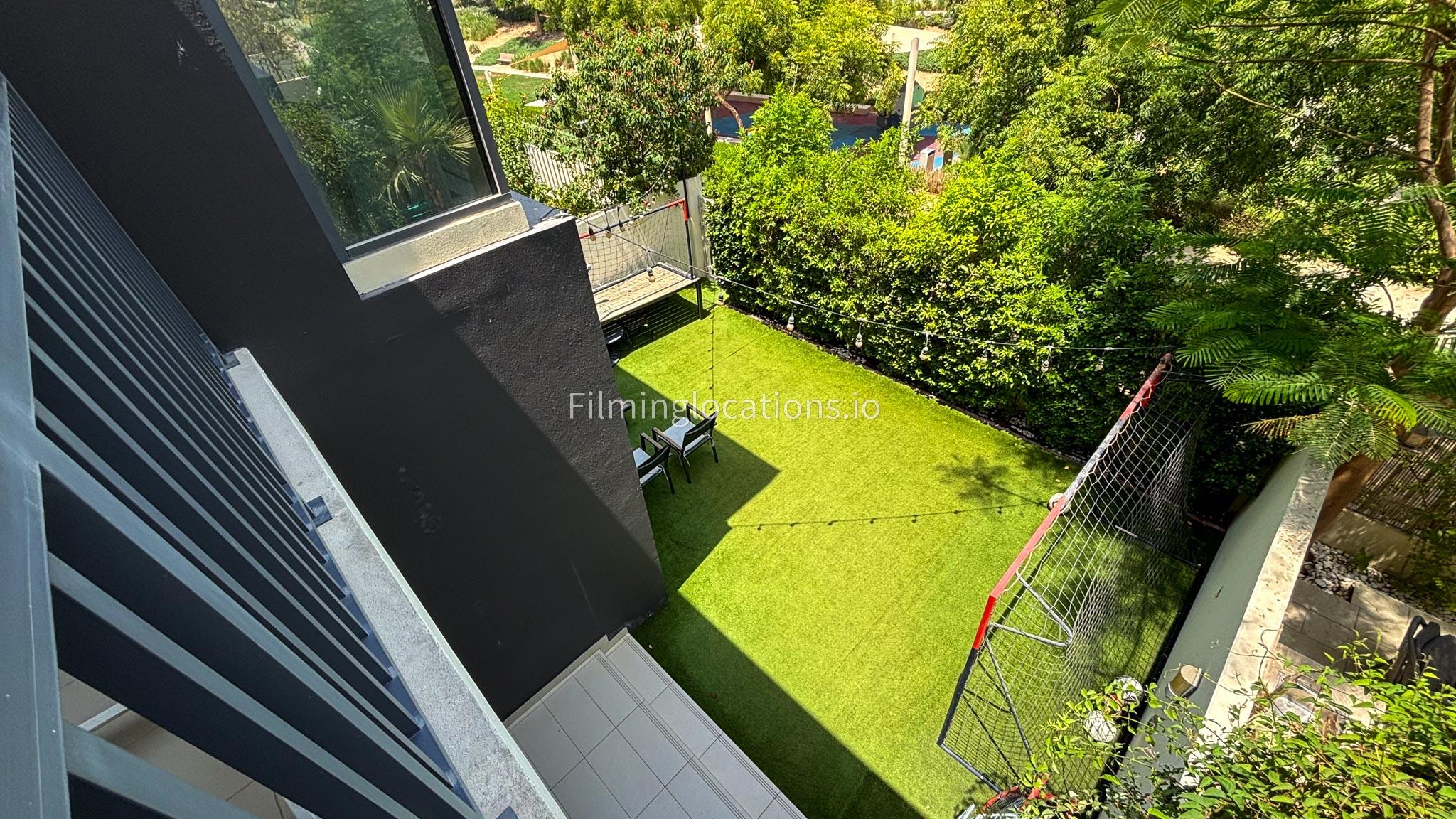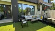 Our charming modern 3-bedroom villa features a lush green yard with ambient lighting and a cozy outdoor seating area. Inside, a stylish living room with contemporary decor flows into an open dining space and kitchen with a kitchen island. The ground floor also includes a vibrant, well-equipped office space. Upstairs include 3 naturally lit bedrooms with large windows and a bathroom.