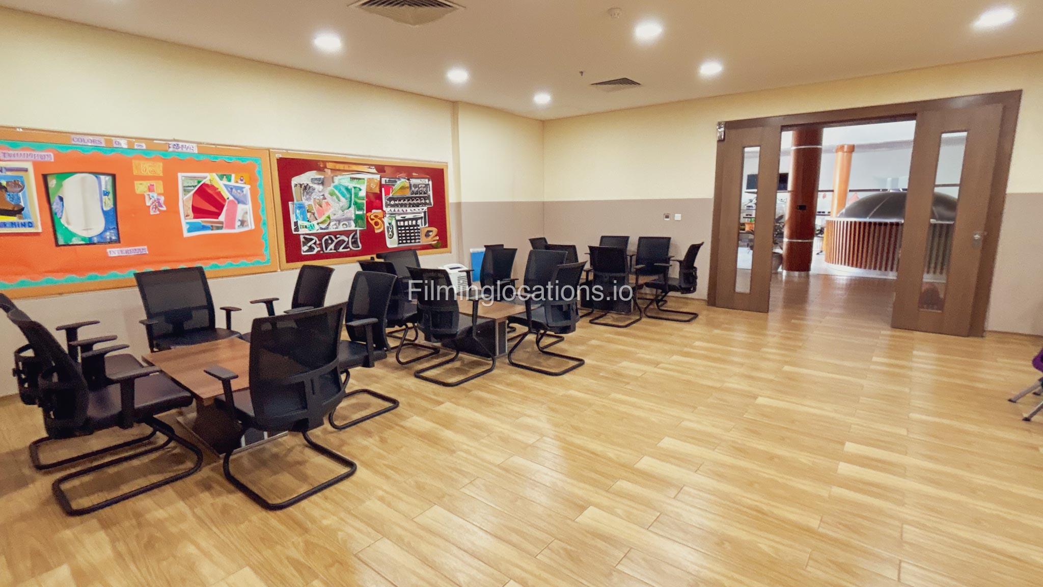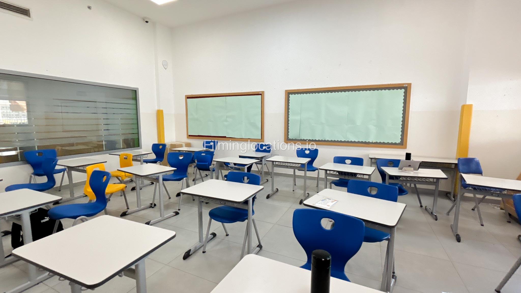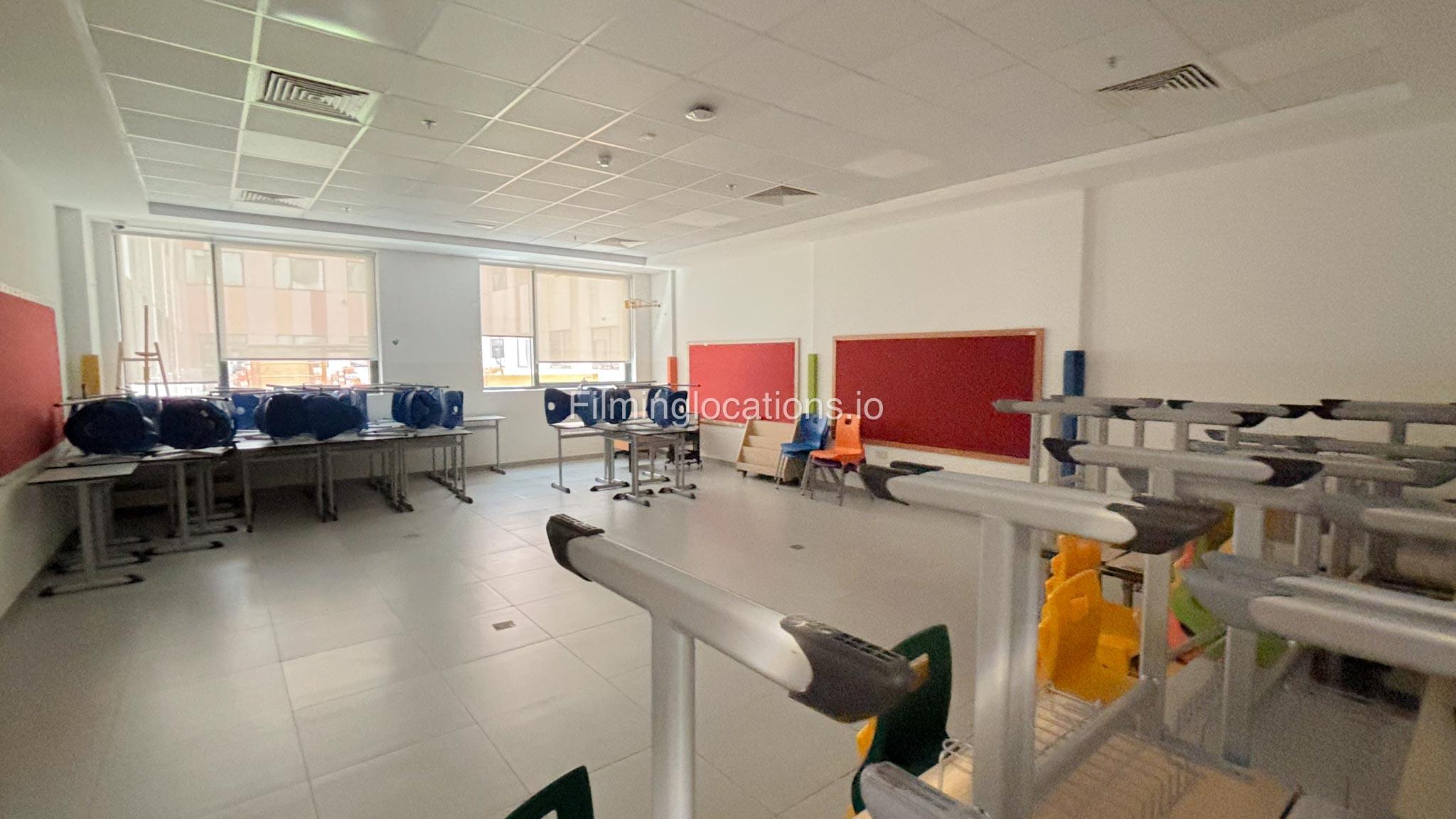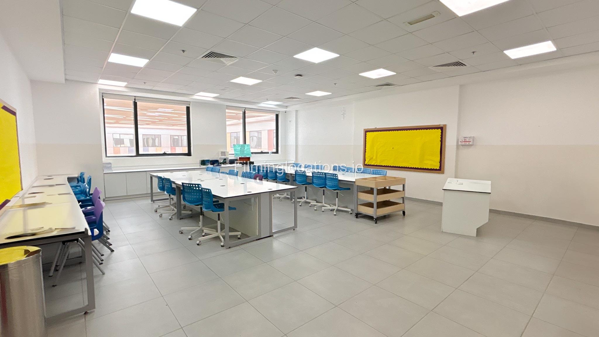 Our school offers a wide range of facilities ideal for diverse filming needs. Indoor spaces include a library, music room, chemistry lab, auditorium with 640 seats, and spacious classrooms designed for large groups.