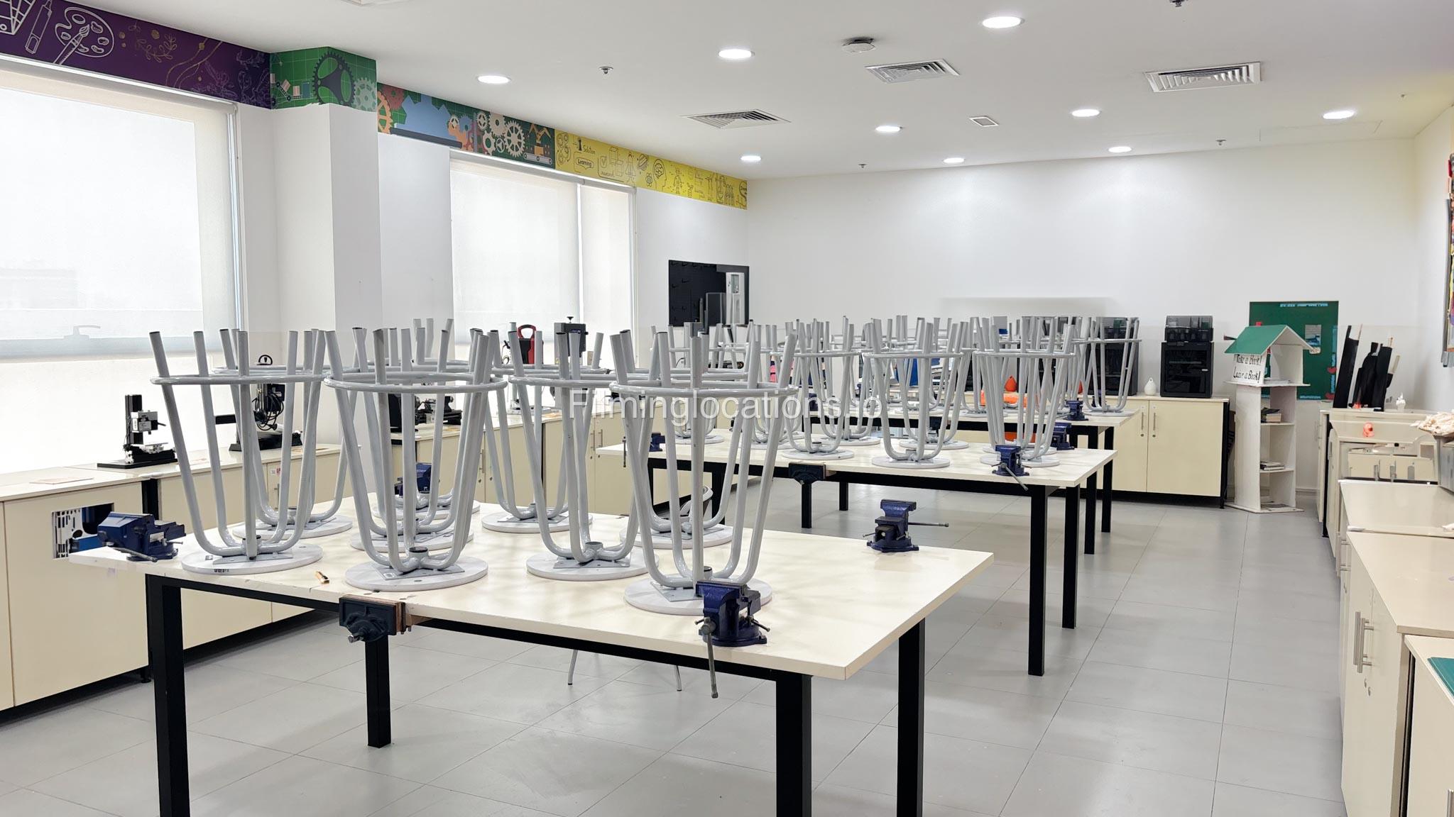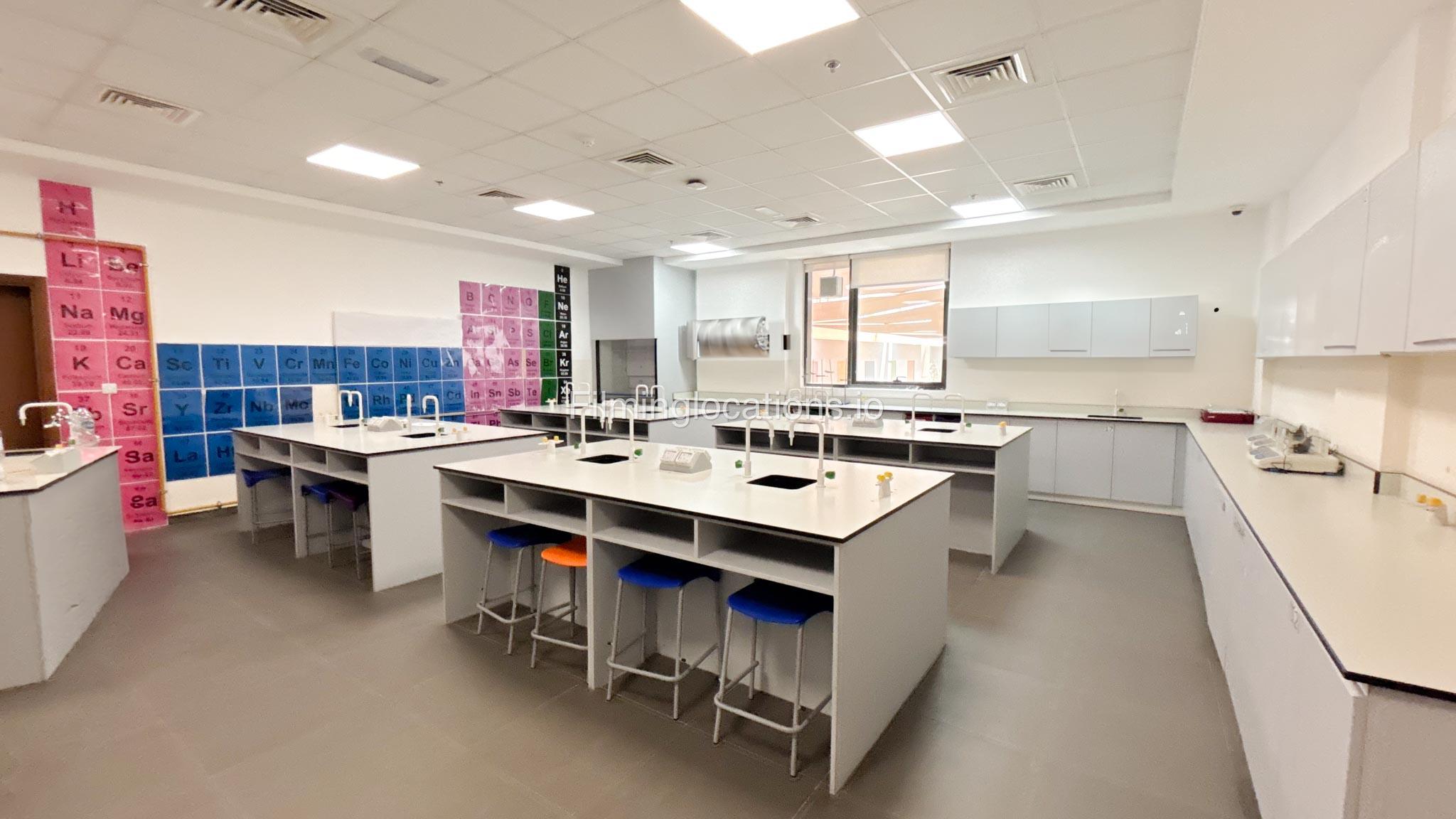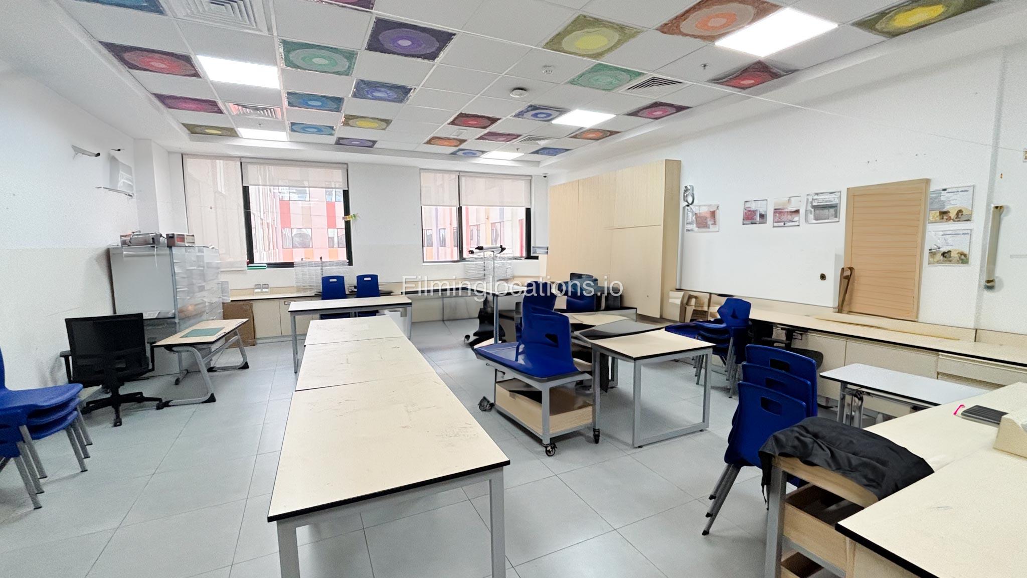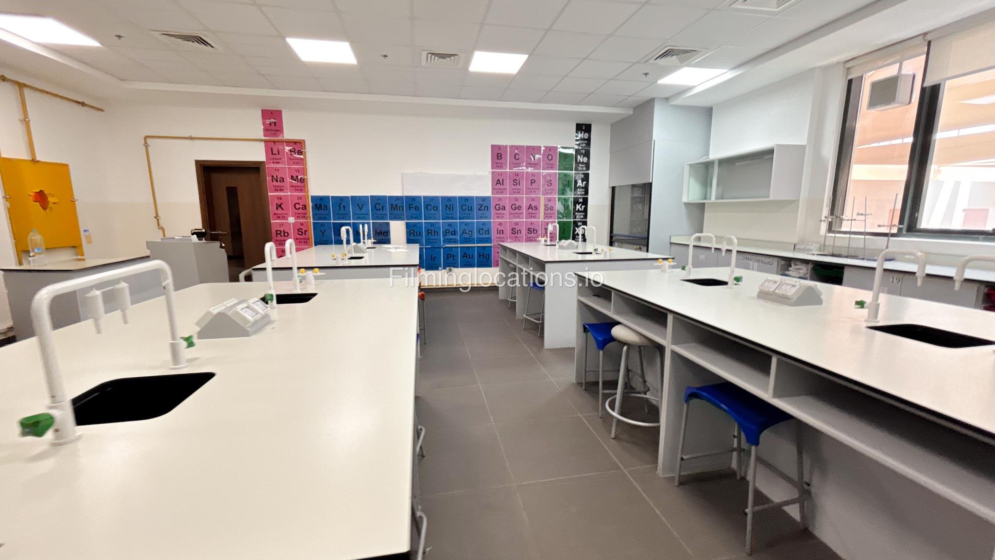 Our school offers a wide range of facilities ideal for diverse filming needs. Indoor spaces include a library, music room, chemistry lab, auditorium with 640 seats, and spacious classrooms designed for large groups.