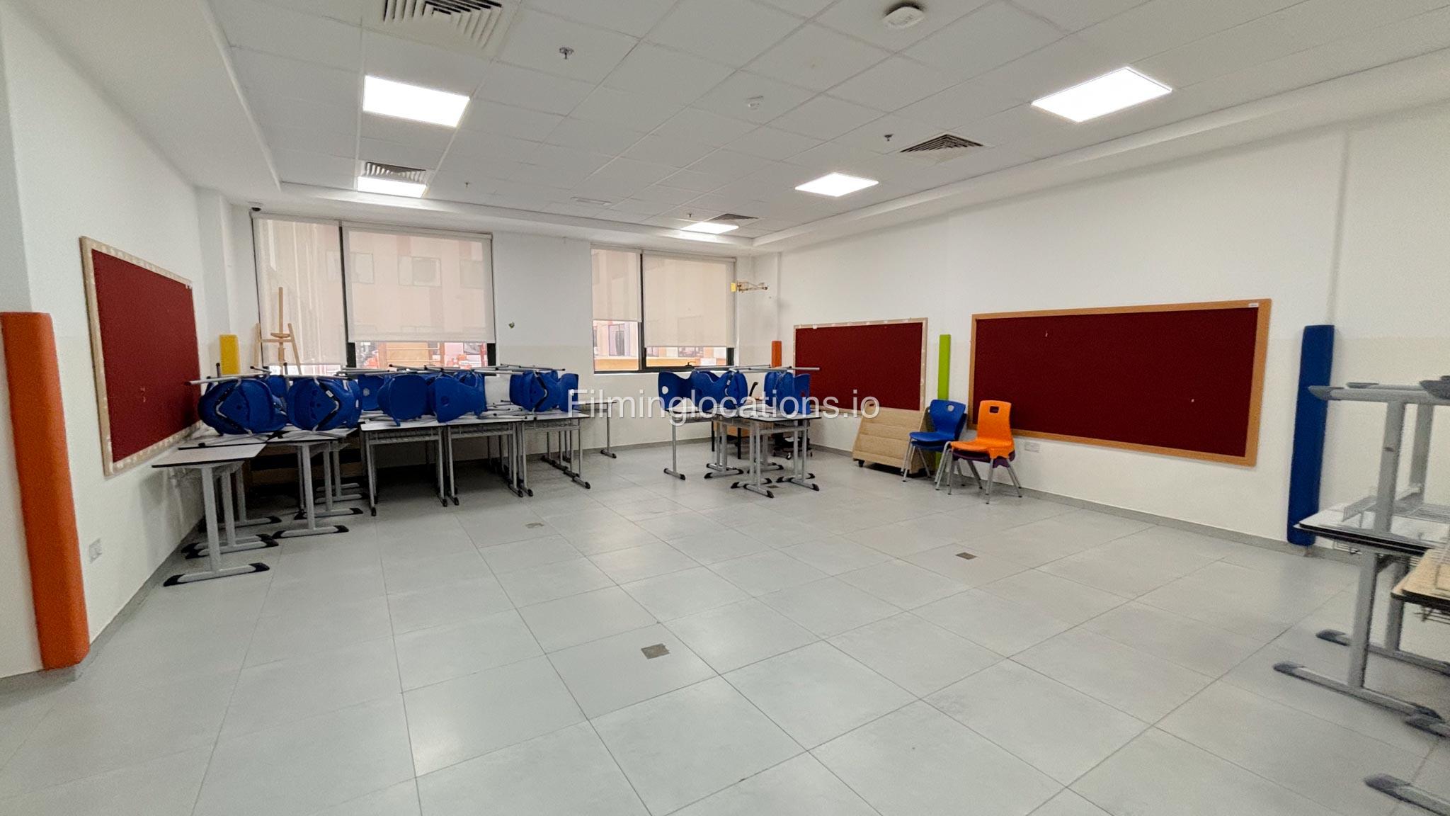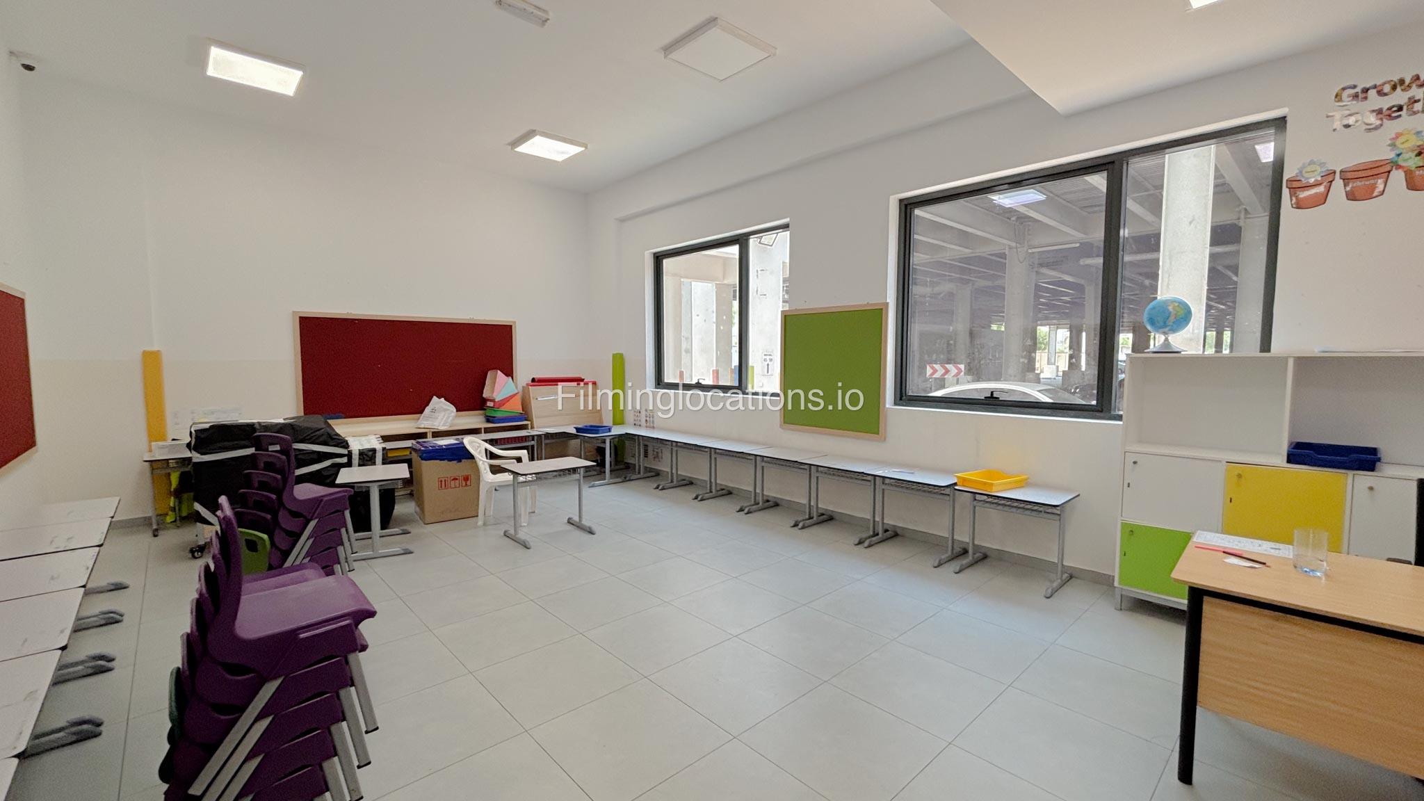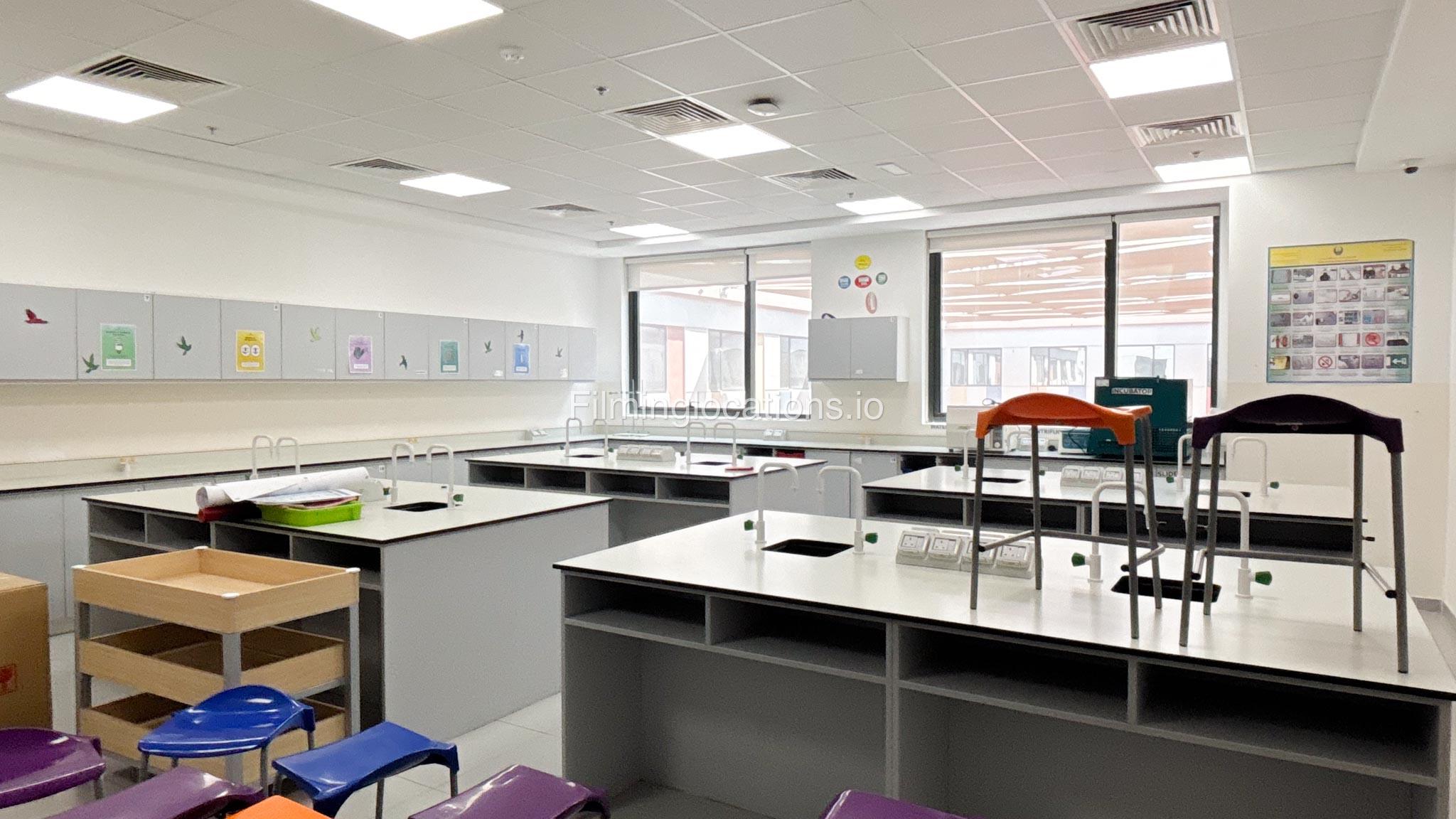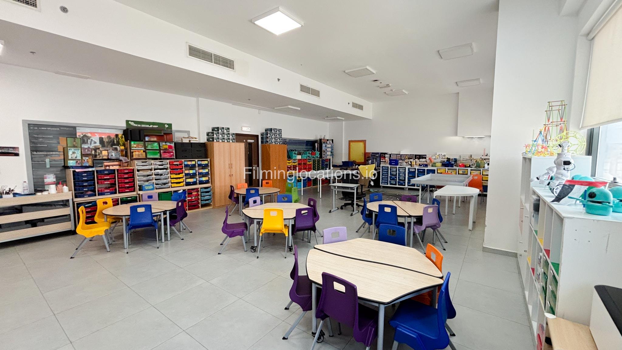 Our school offers a wide range of facilities ideal for diverse filming needs. Indoor spaces include a library, music room, chemistry lab, auditorium with 640 seats, and spacious classrooms designed for large groups.