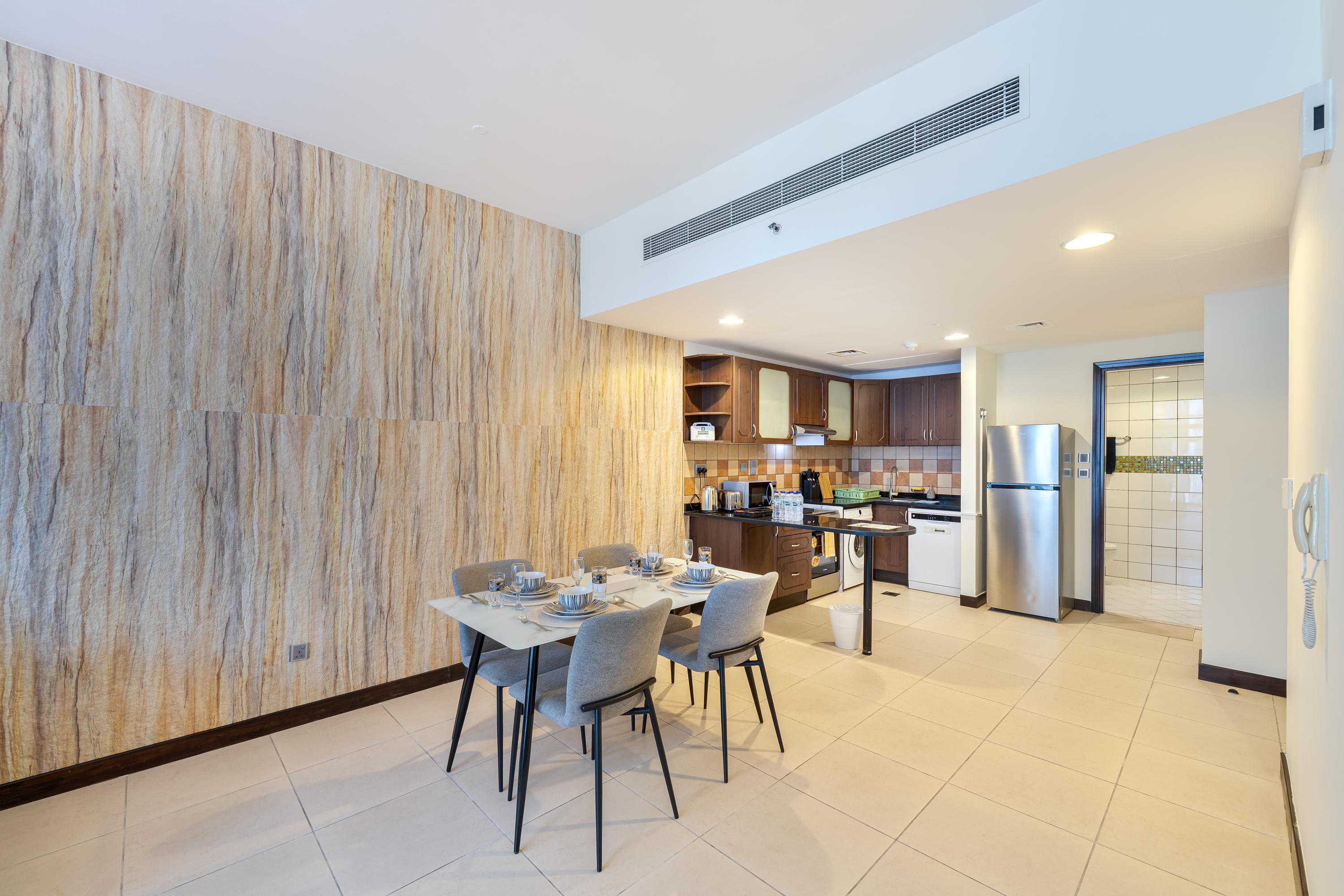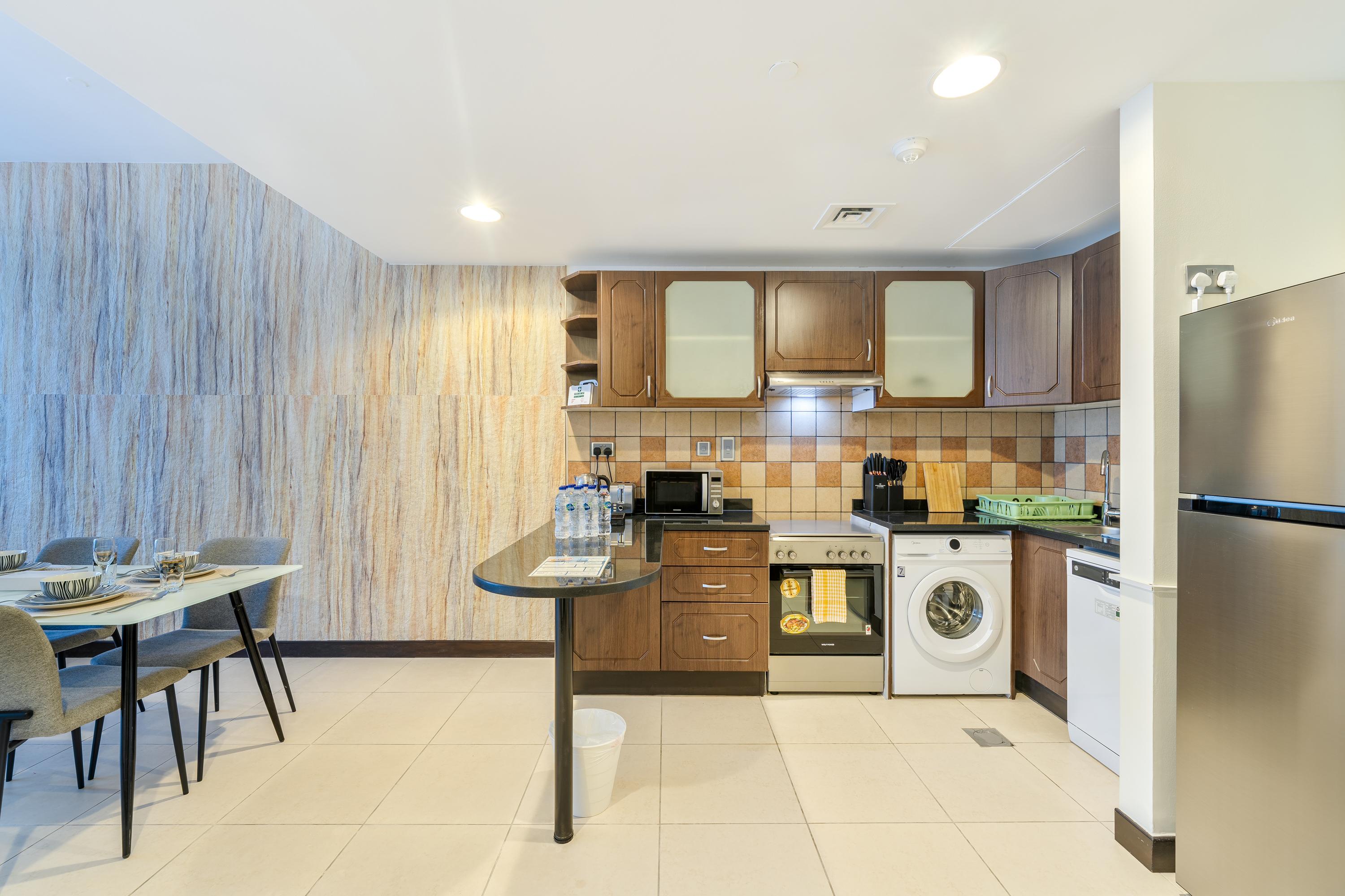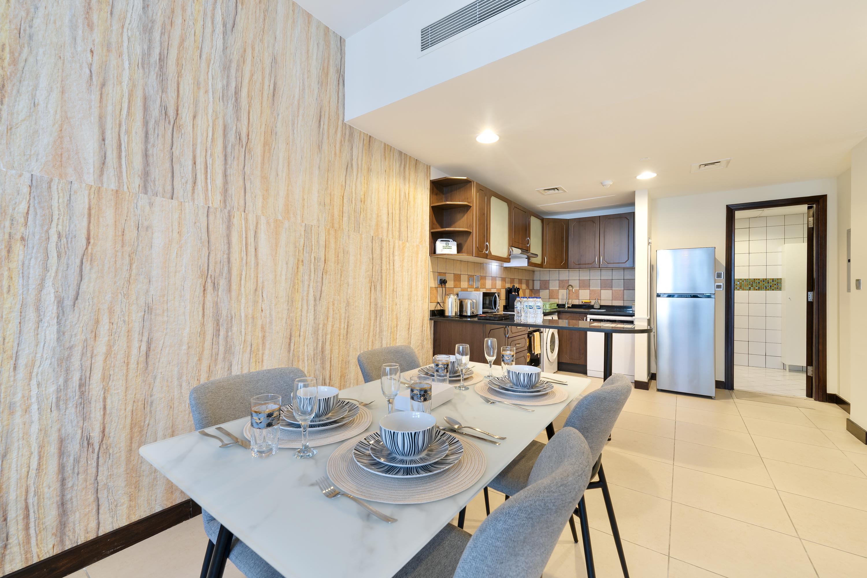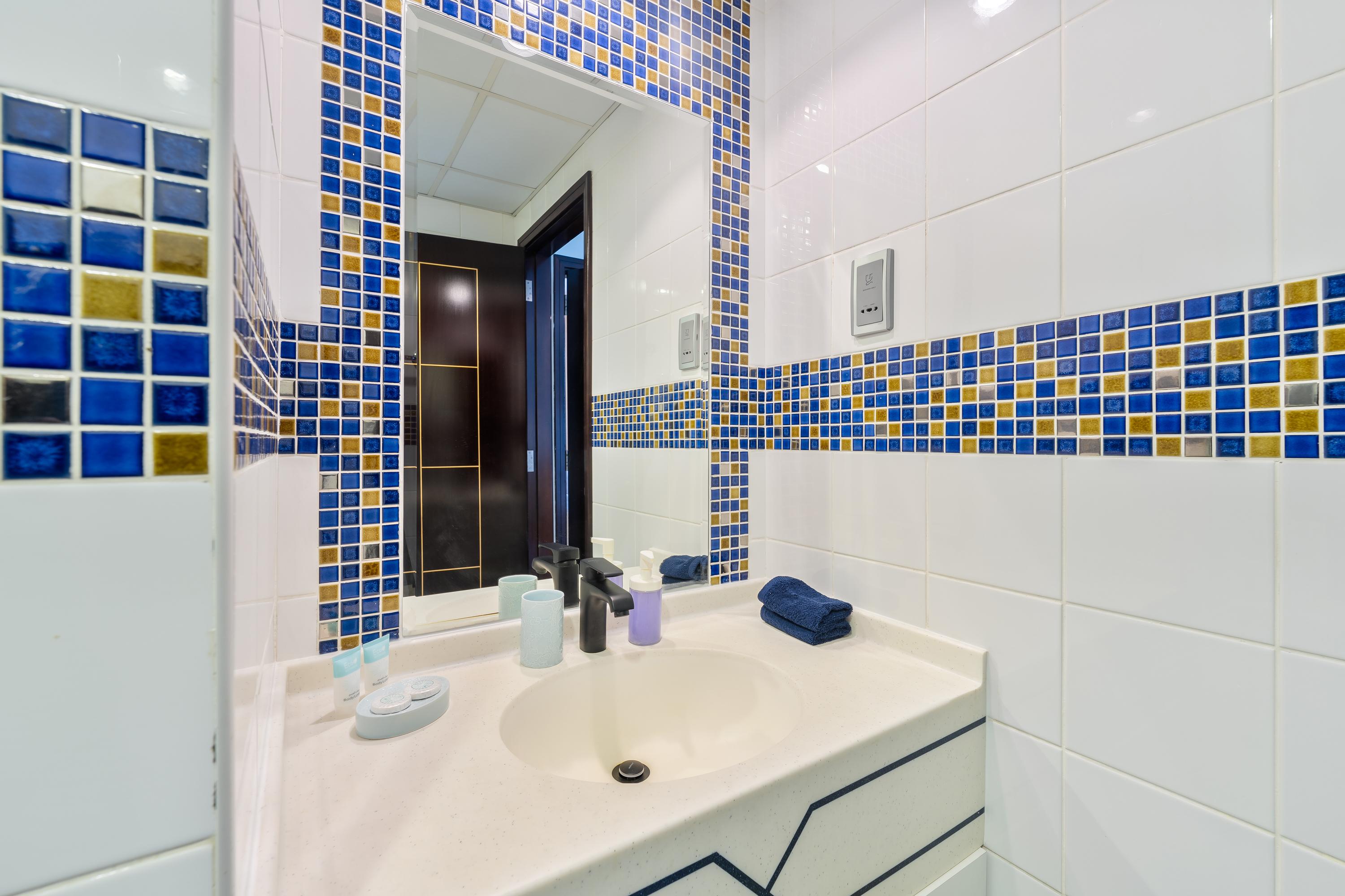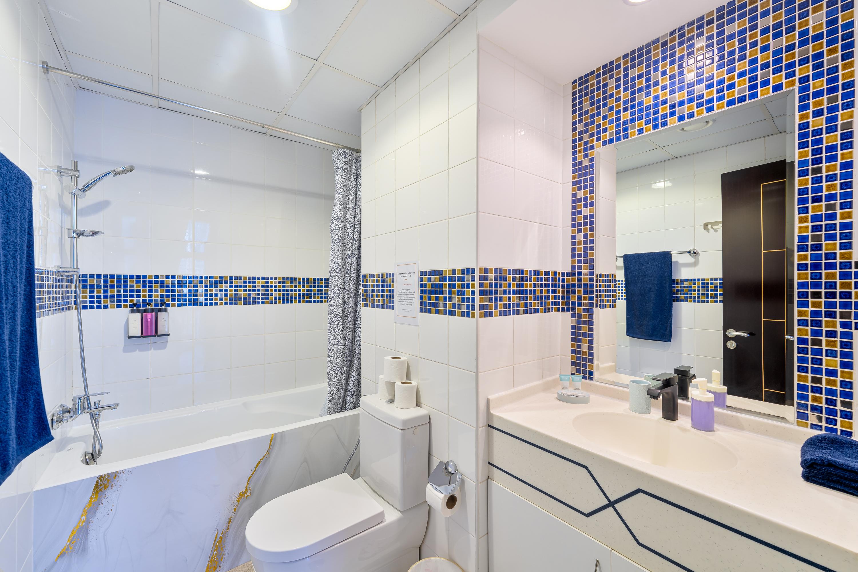 Our gorgeous apartment features 1 bedroom with Queen-size bed. It also includes 1 full bathroom featuring a shower, toilet, sink, and a vanity mirror. There’s a fully equipped kitchen and a cozy lounge with sofa bed and HD TV. The apartment is fully air-conditioned and boasts a balcony with a table and chairs. Our apartment also has a high-speed Wi-Fi.