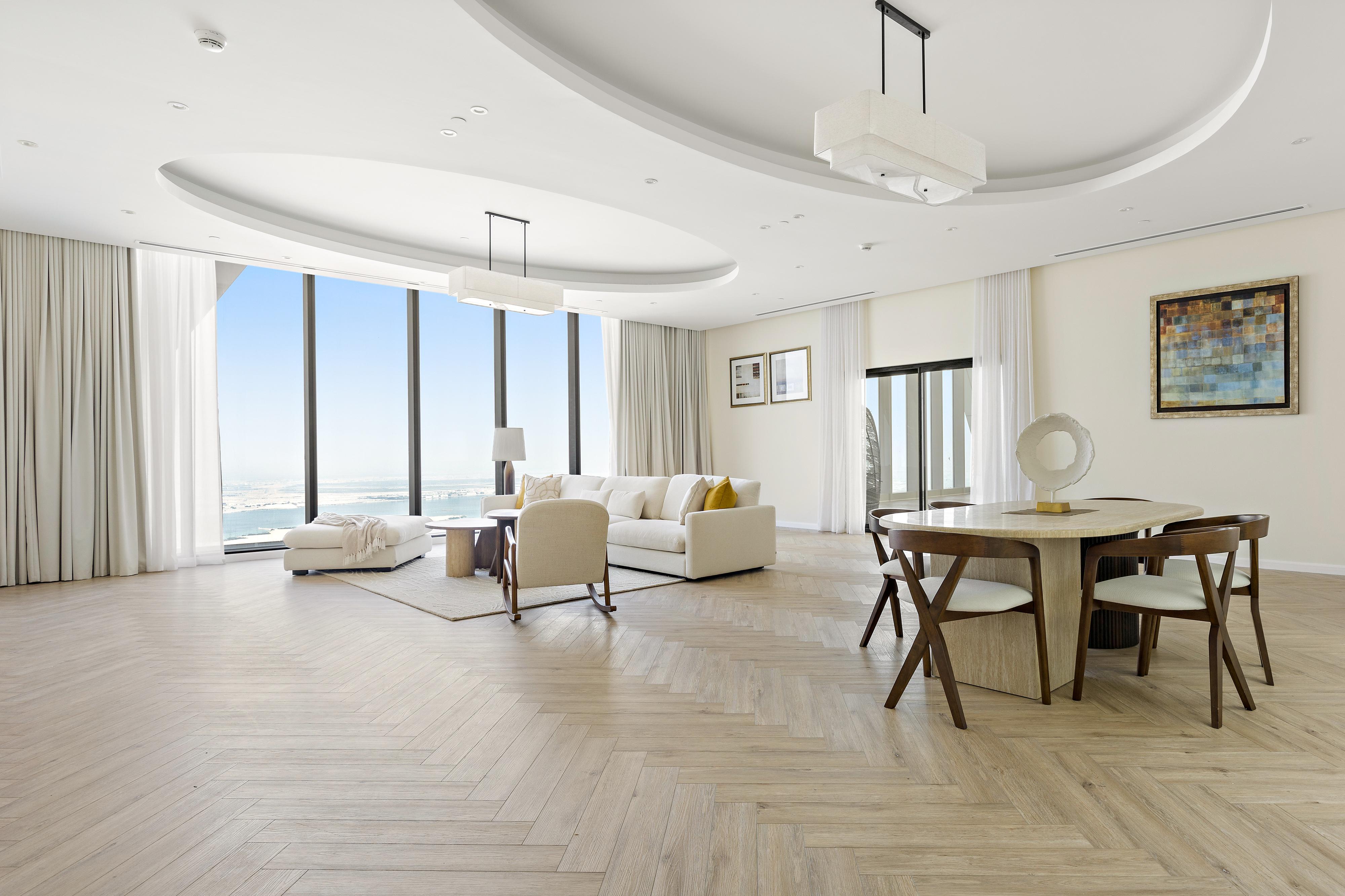 Welcome to our private sky retreat - offering one of the most spectacular almost 360° panoramic views of Abu Dhabi’s iconic skyline. This extraordinary penthouse is designed for clients who want space and style.