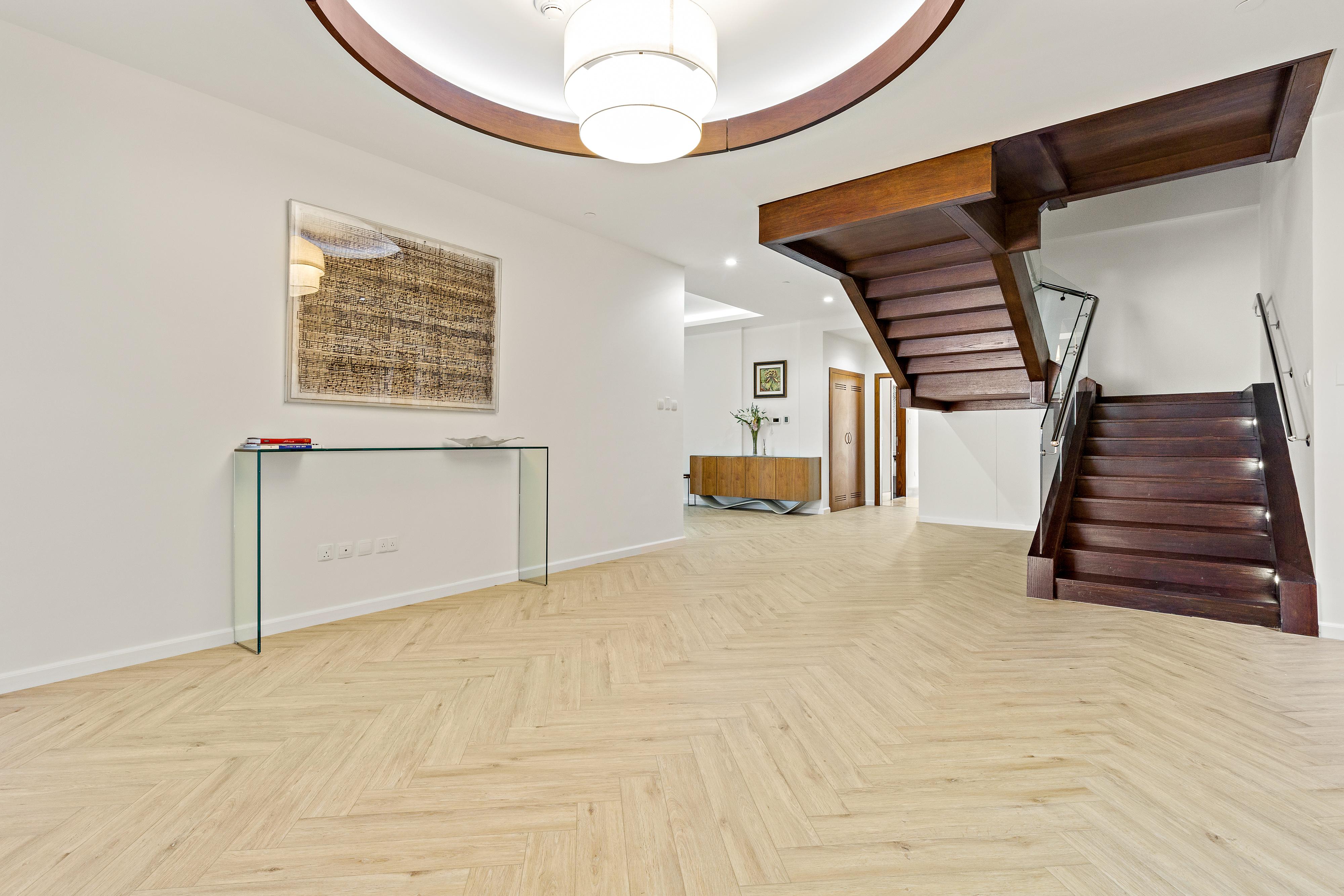 Step into a grand living room flooded with natural light and framed by floor-to-ceiling windows. Leads to a fully equipped, spacious kitchen and an elegant dining area. On the same level, you’ll find a luxurious master bedroom.
